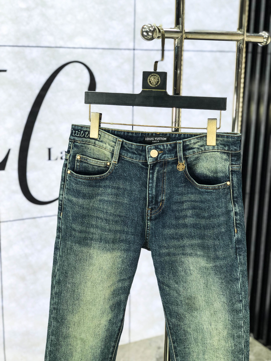 P205. LV-inspired 2025 autumn/winter high-fashion feel. Ultra-soft denim, light wash jeans. Special blended fabric, comfortable. Casual, relaxed, stylish. Sizes 29-38.