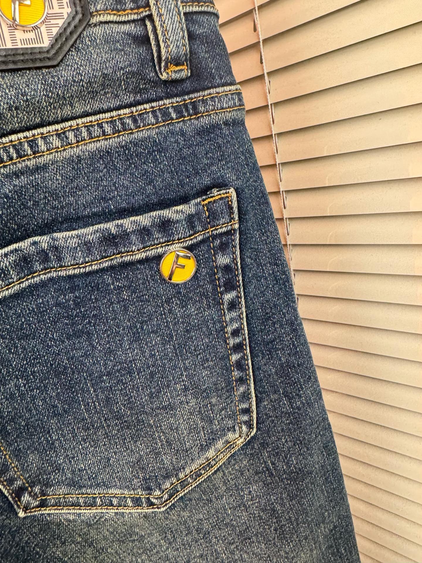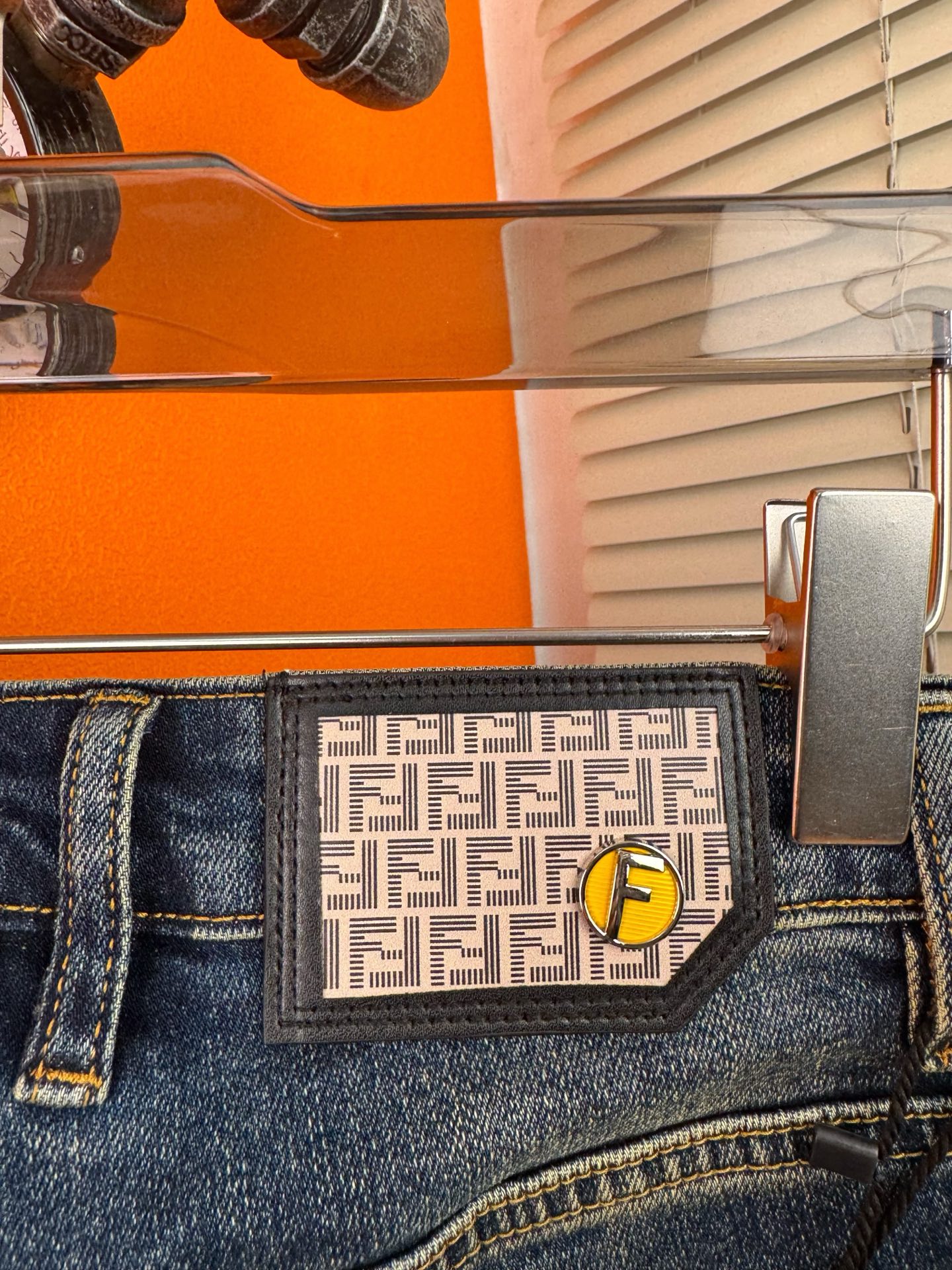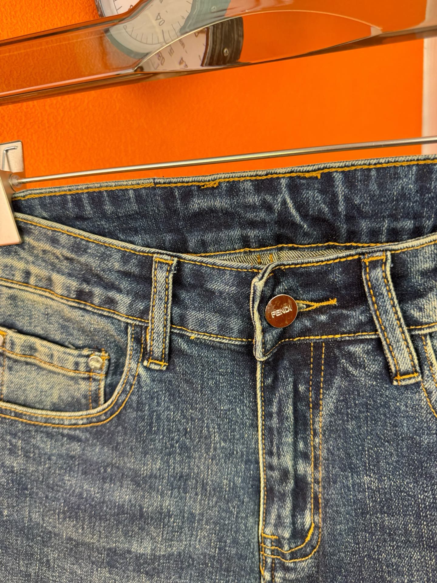Fendi classic blue cotton stretch jeans, slim fit, sizes 28-38.
