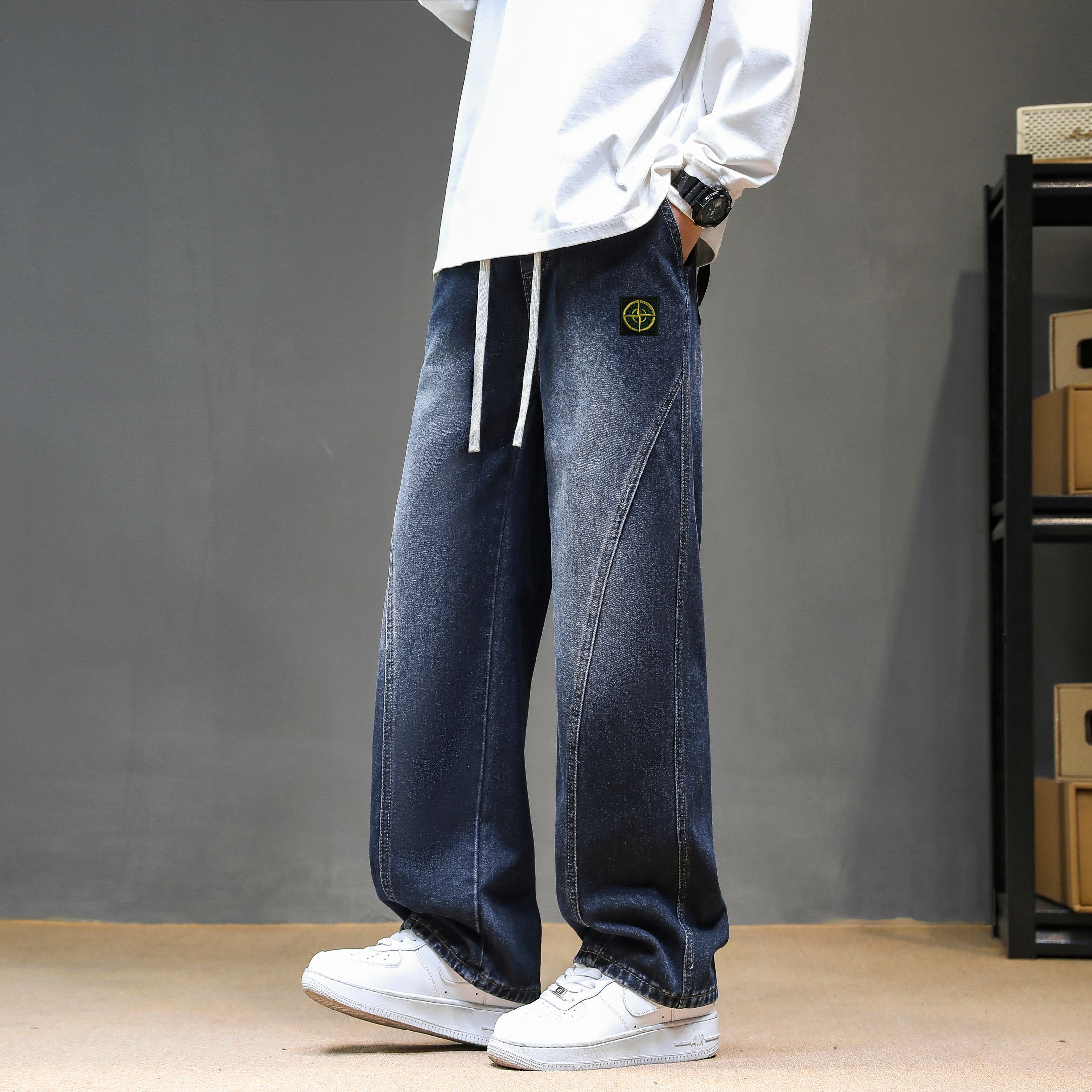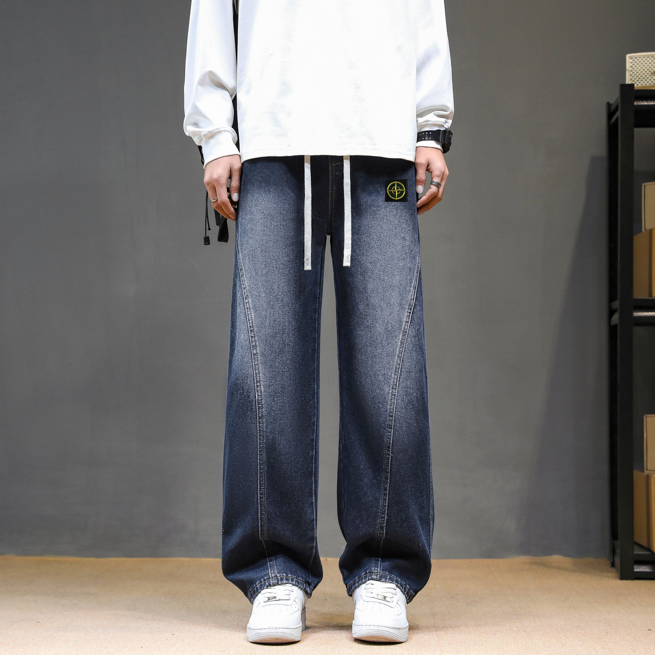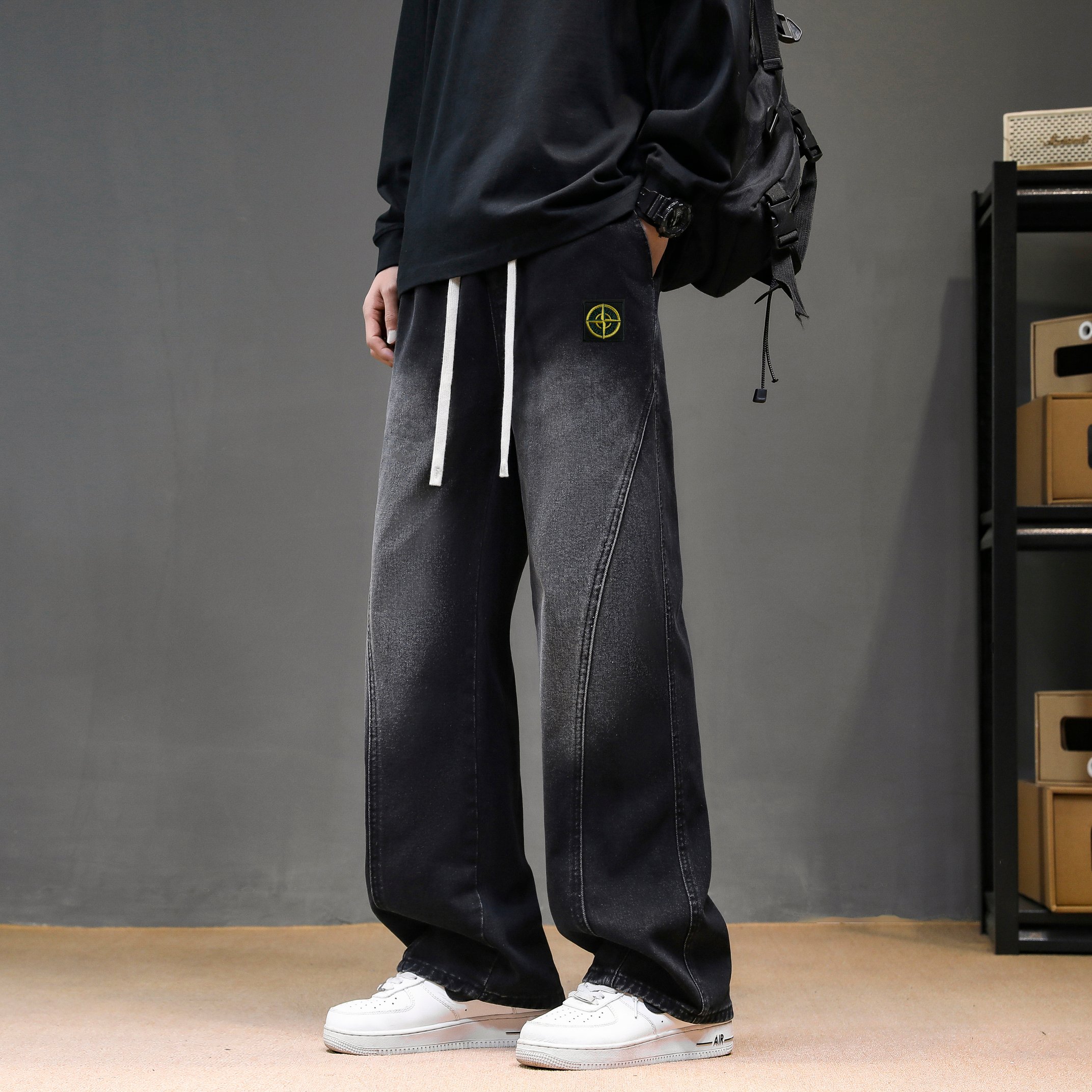 Stone Island jeans, unisex limited edition. Solid color work pants, 25AW latest style. Simple, versatile for daily wear. Loose fit, heavy wash, premium cotton. Colors: Black, Light Blue, Dark Blue. Sizes: M-3XL.