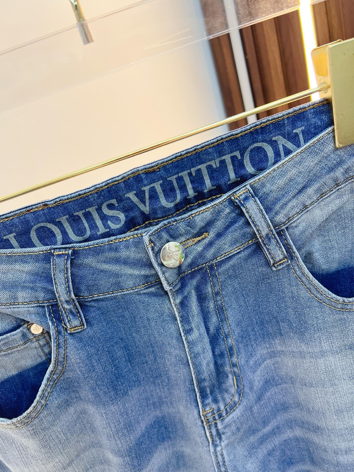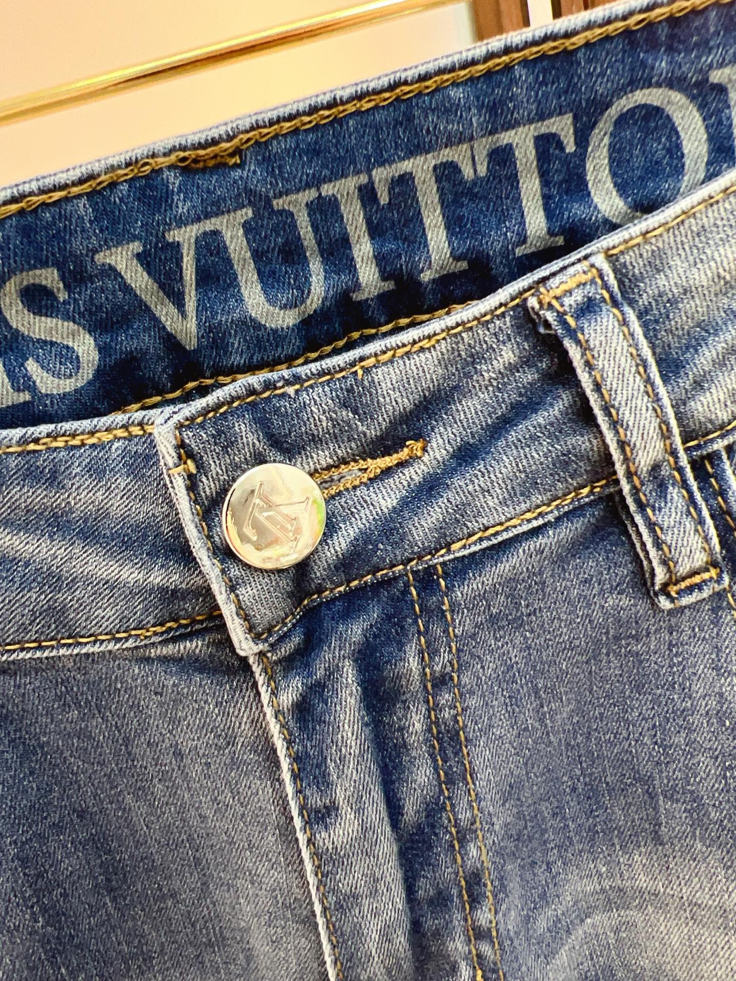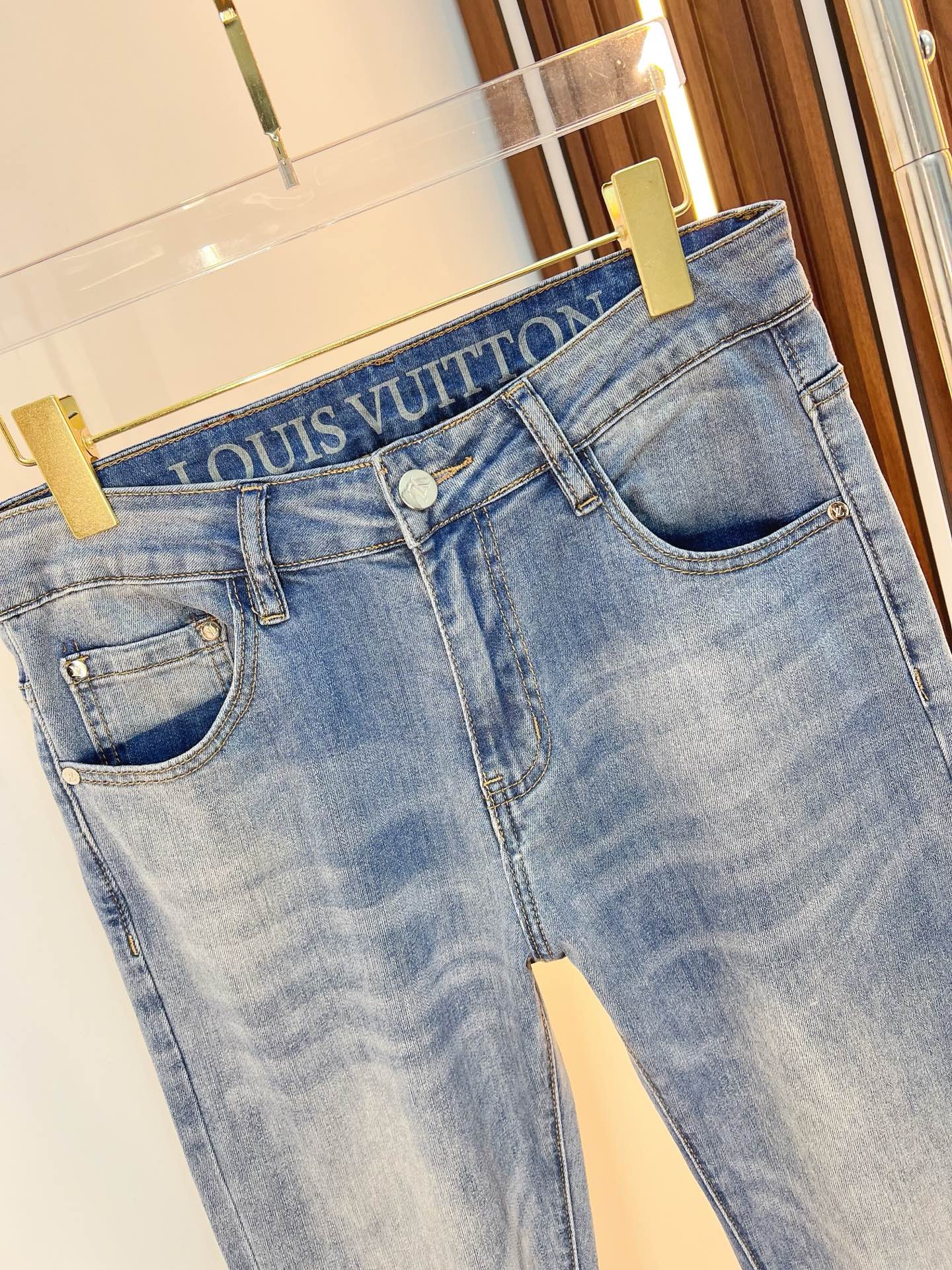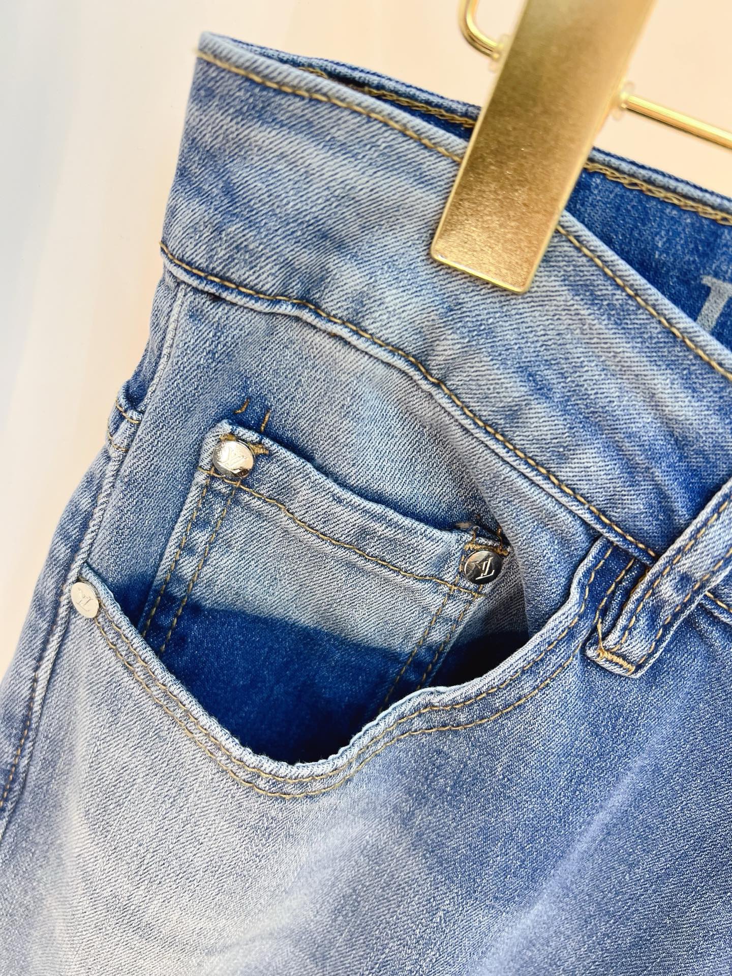 LV men's denim jeans. Premium imported fabric, 13oz Japanese denim, eco-friendly enzyme wash. Soft yet structured with a retro hue. Perfect fit, versatile styling. Sizes 29-38 (no 35,37).