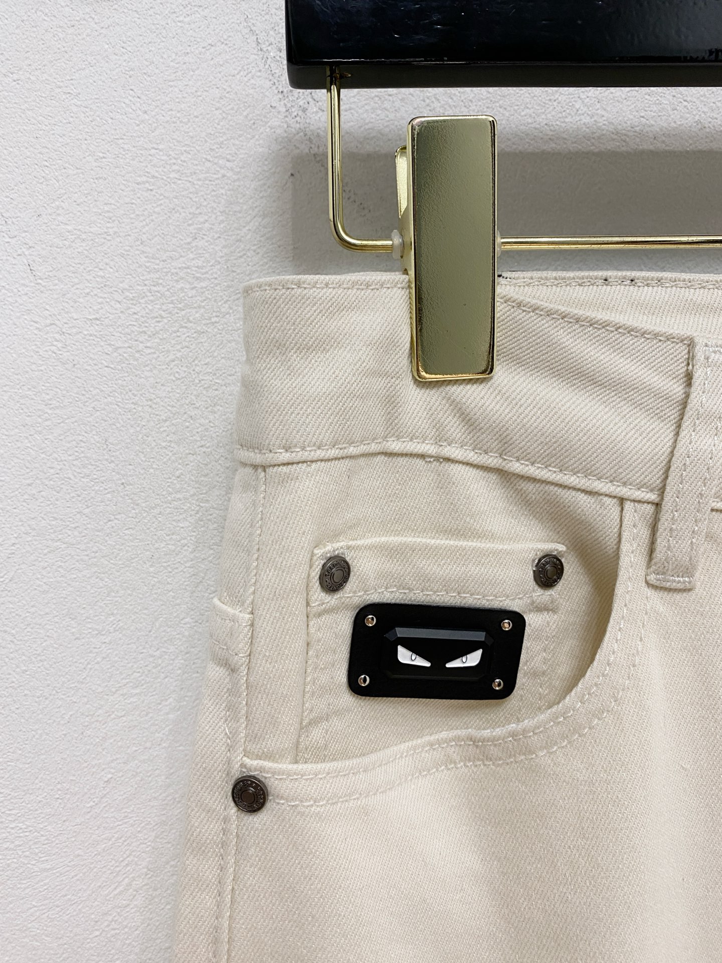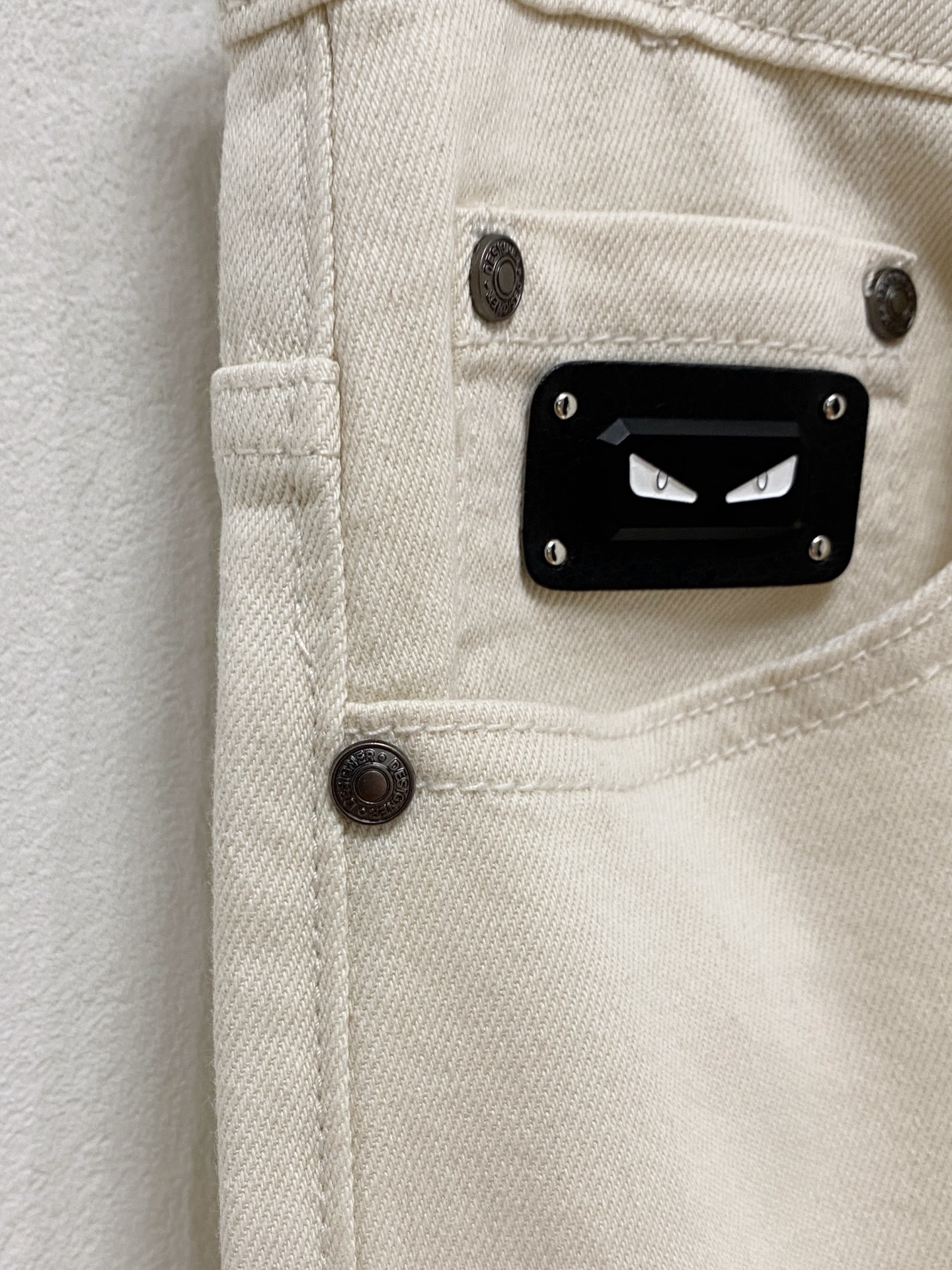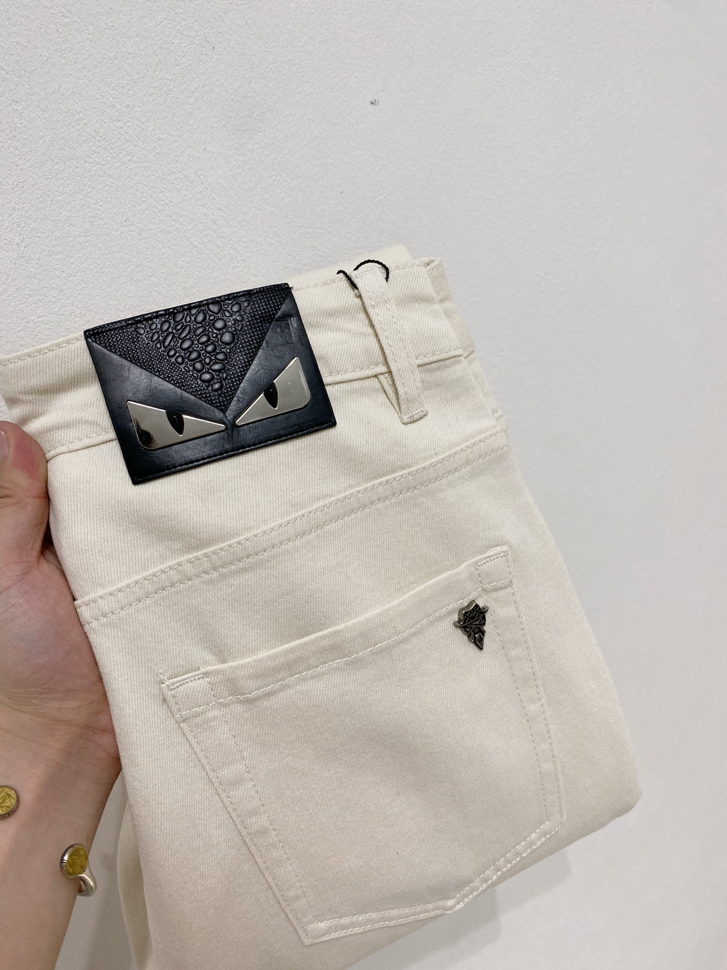 Fendi 2025 summer men's washed slim straight jeans. Italian denim, perfect fit, versatile style. Leather waist logo. Sizes 29-38.