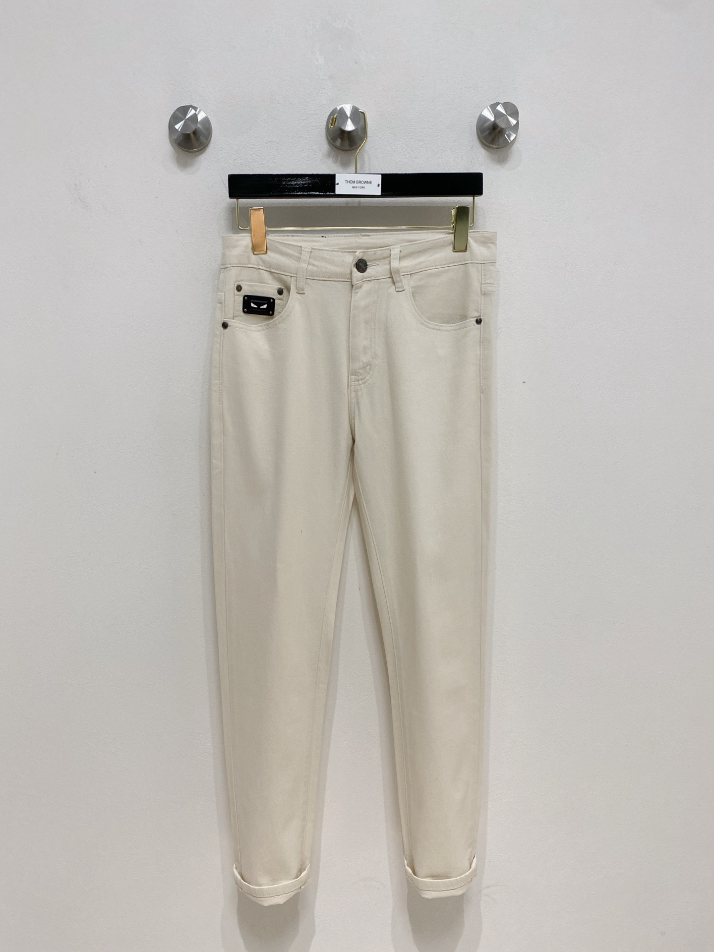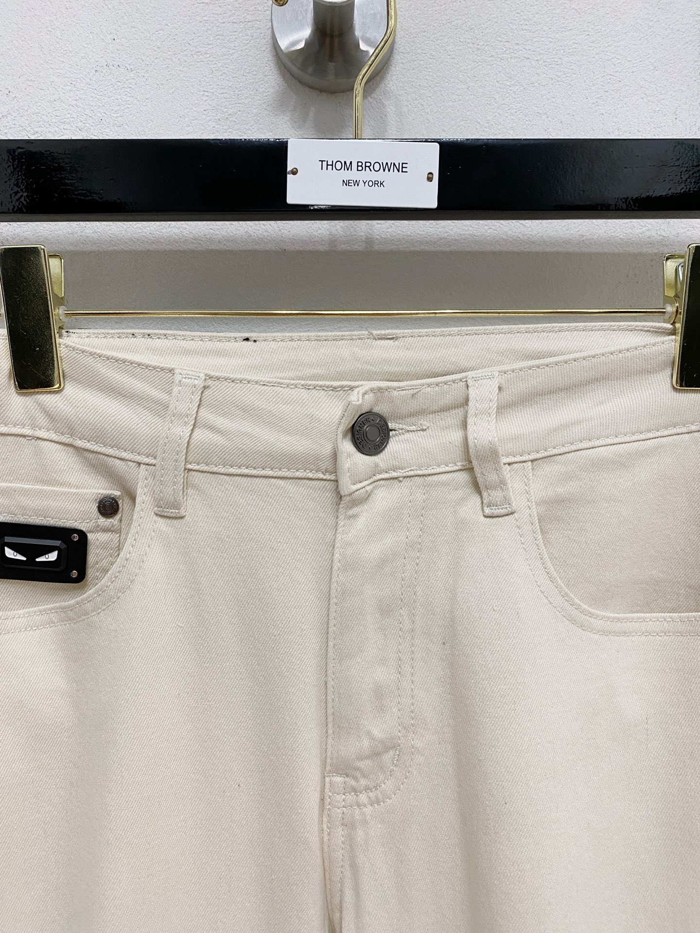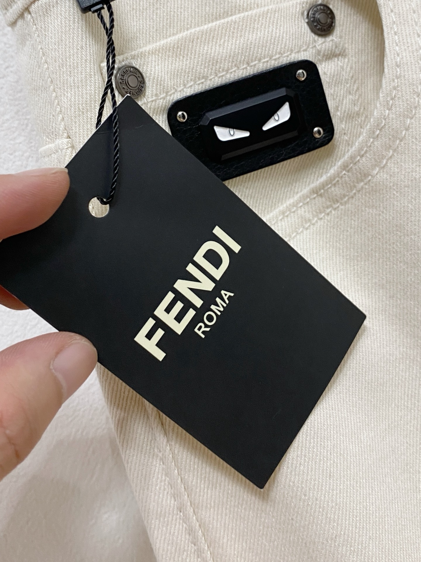 Fendi 2025 summer men's washed slim straight jeans. Italian denim, perfect fit, versatile style. Leather waist logo. Sizes 29-38.