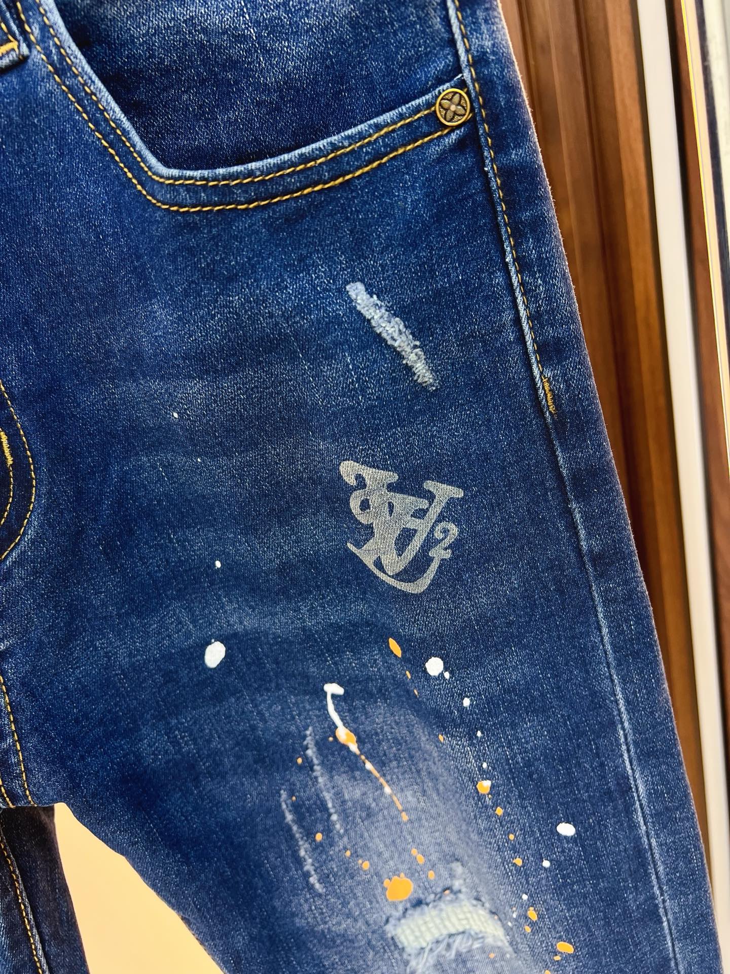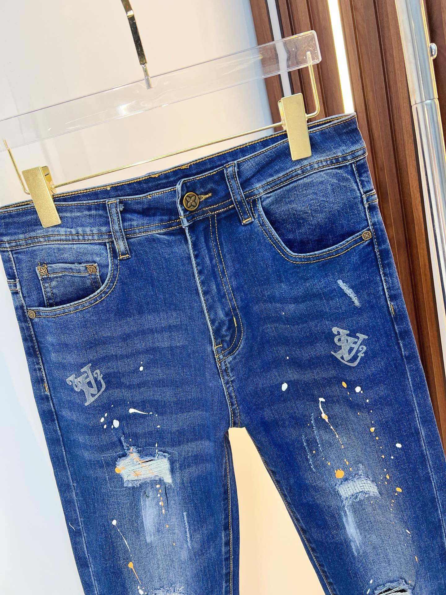 LV men's denim jeans. Premium imported fabric, 13oz Japanese denim, eco enzyme wash for soft texture and vintage hues. Perfect fit, versatile styling. Sizes: 29-38 (excl. 35,37).