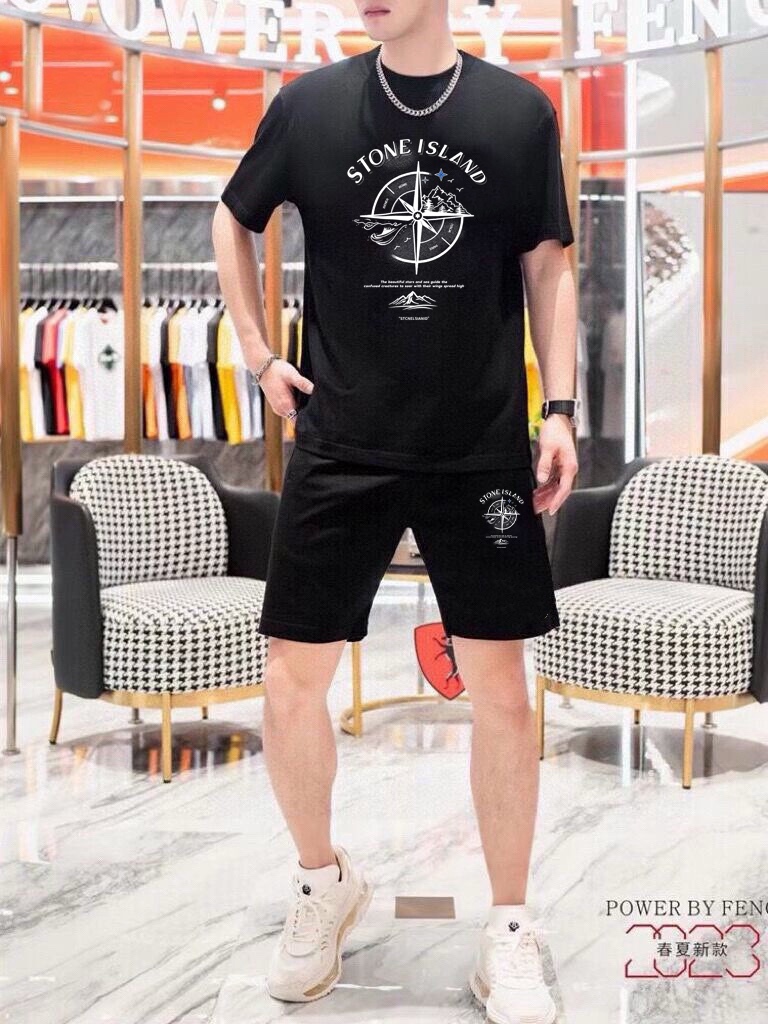 Stone Island 2025 men's short sleeve and shorts set. Official website同步 sales. High-end version, soft texture, comfortable fit. Sizes: M-5XL.