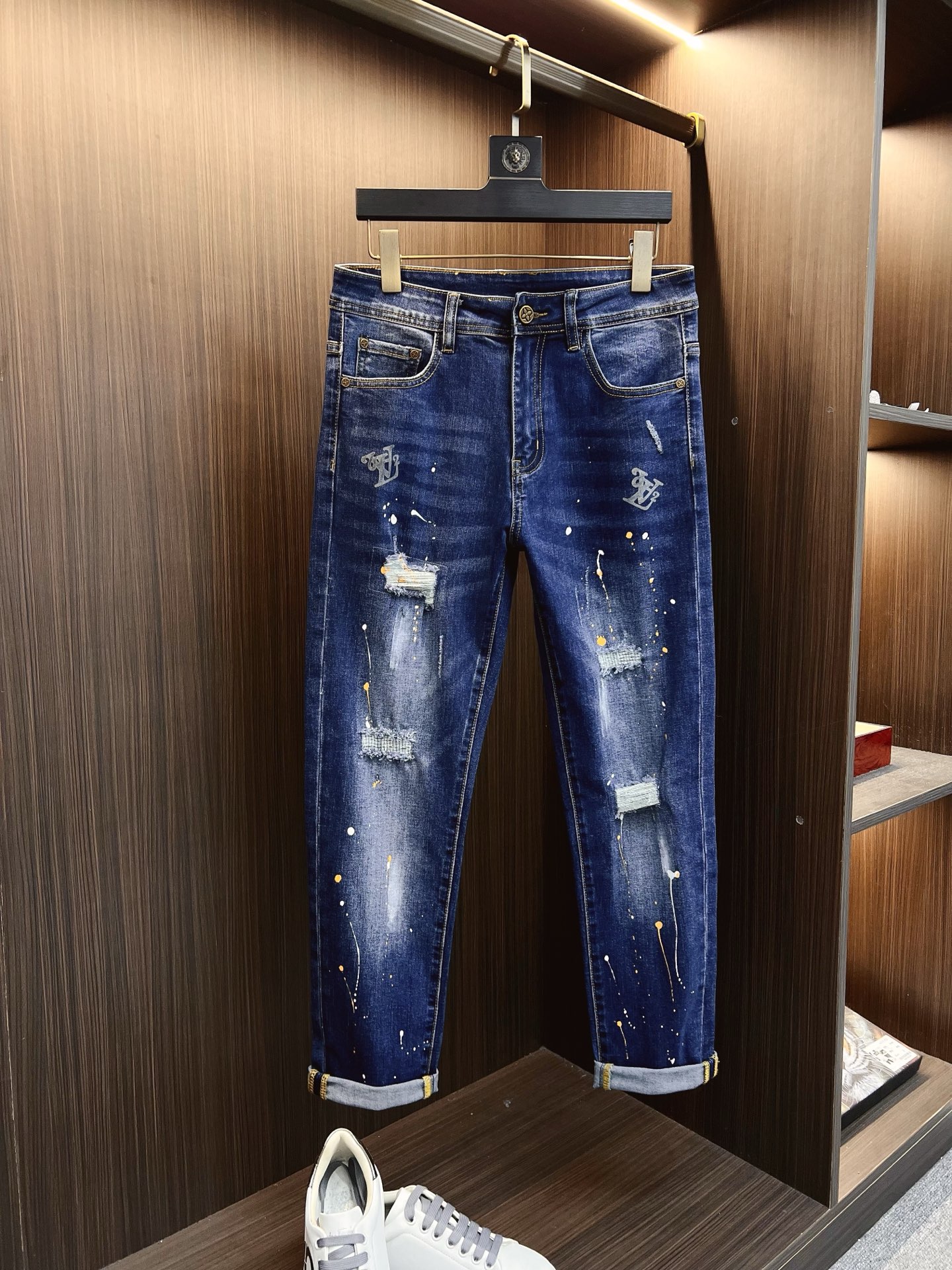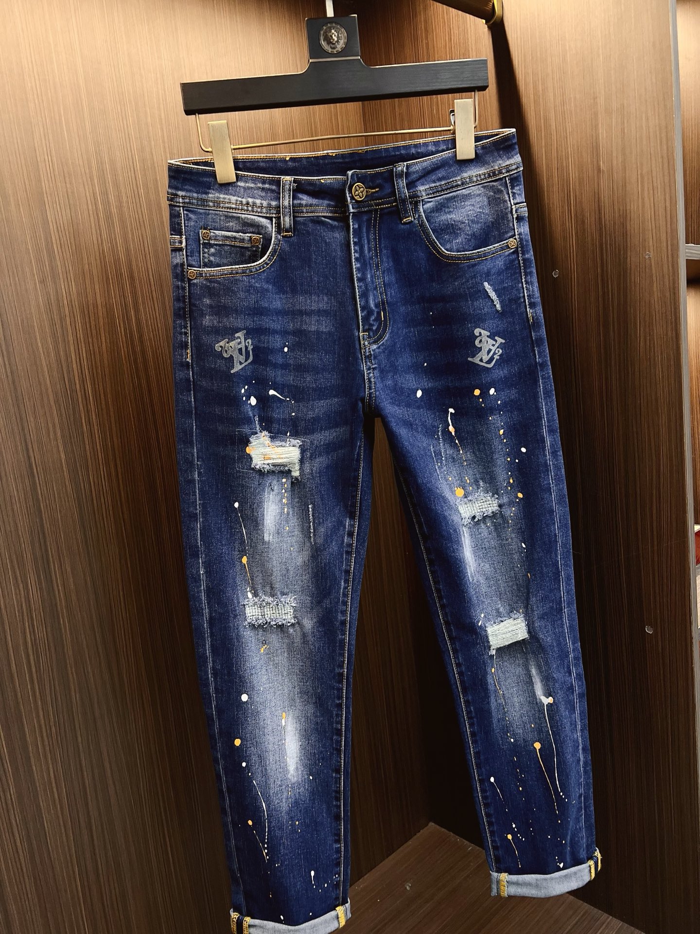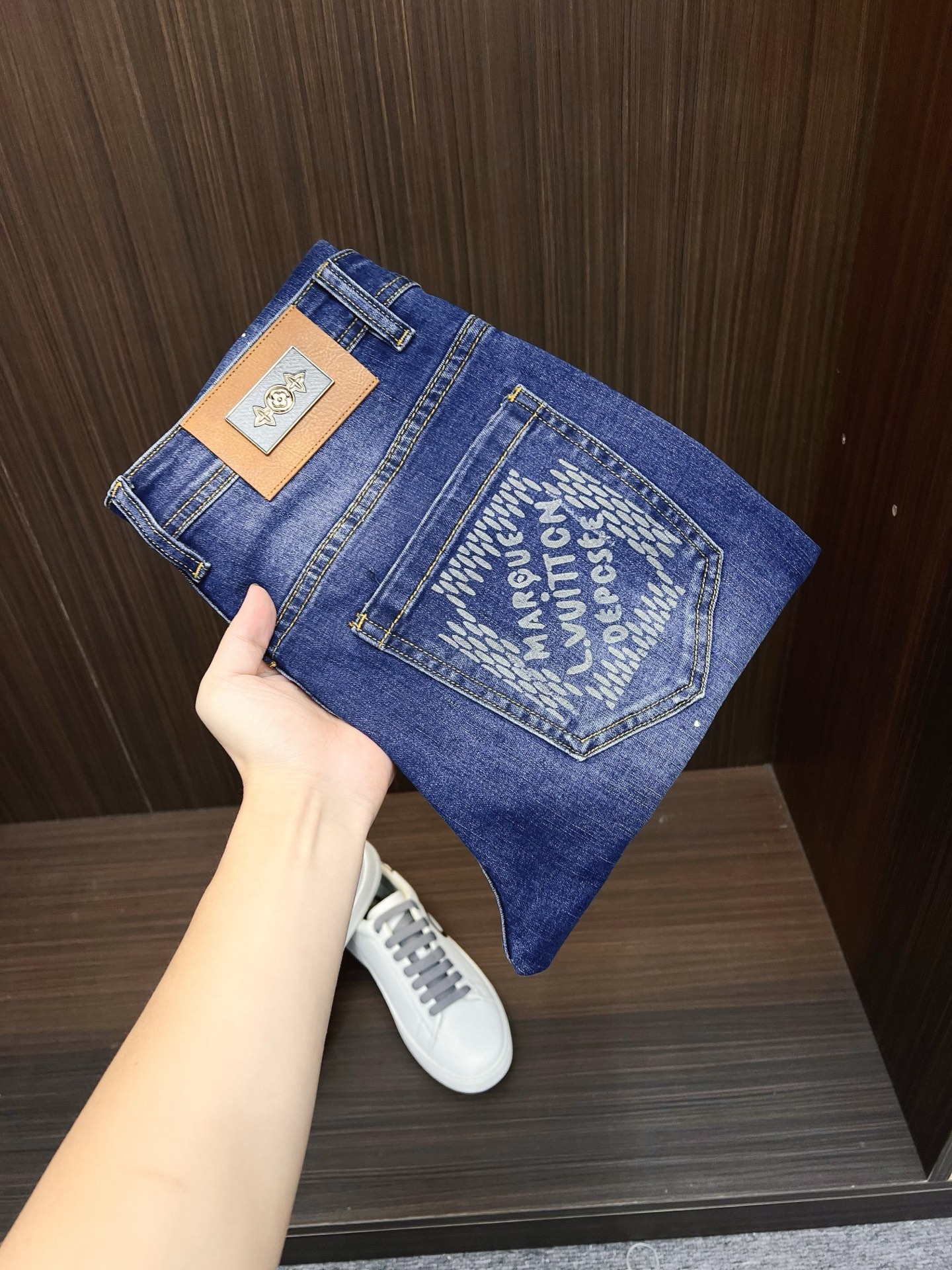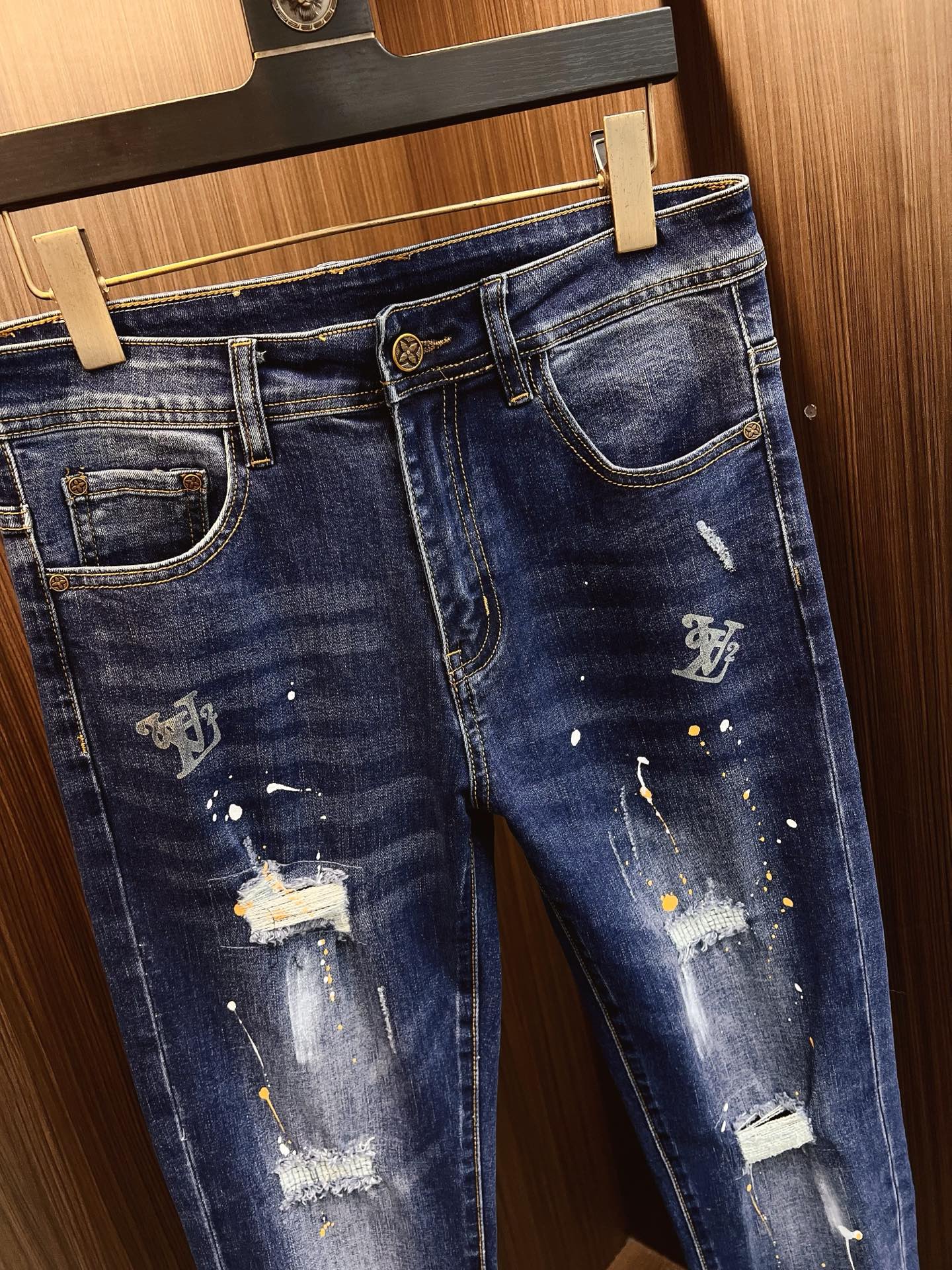 LV men's denim jeans. Premium imported fabric, 13oz Japanese denim, eco-friendly enzyme wash. Soft yet structured with slight stretch. Perfect fit, versatile styling. Sizes 28-38 (excl. 35, 37).