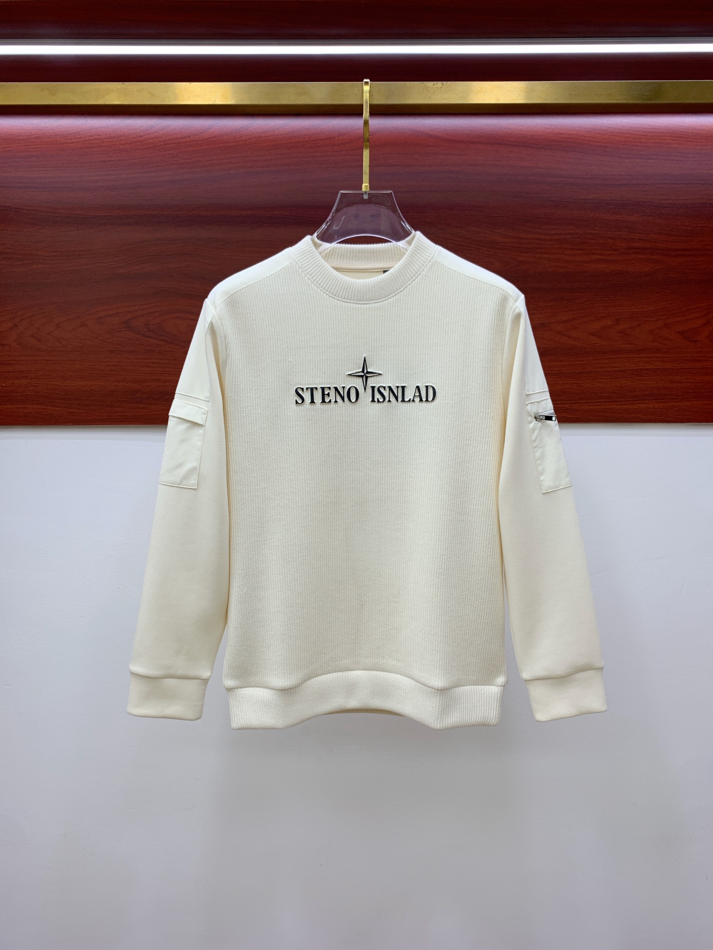Stone Island 2025 FW wool blend hoodie. Geometric leather pocket, logo buttons. Tailored fit, comfortable & warm. Colors: black, brown, gray. Sizes M-3XL.
