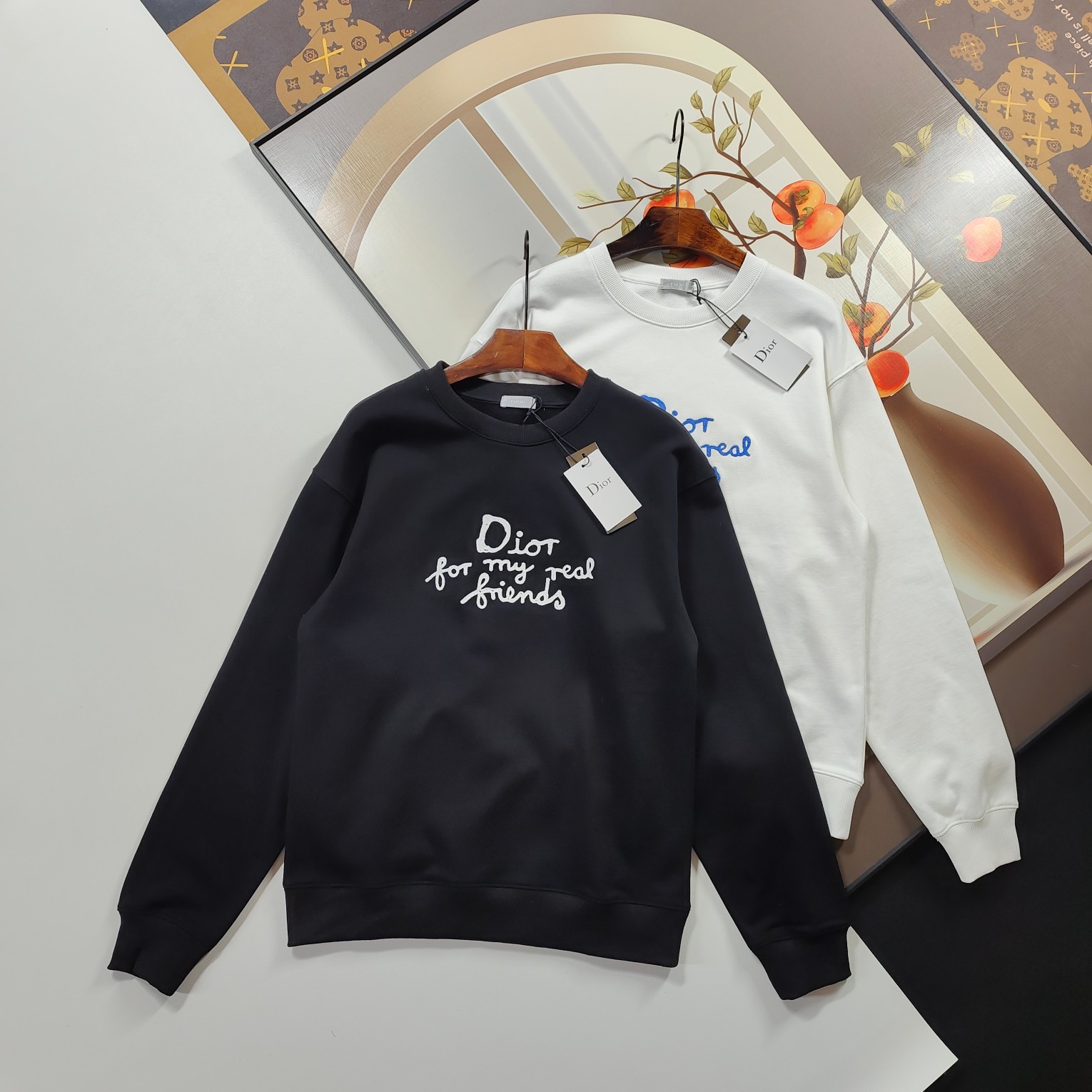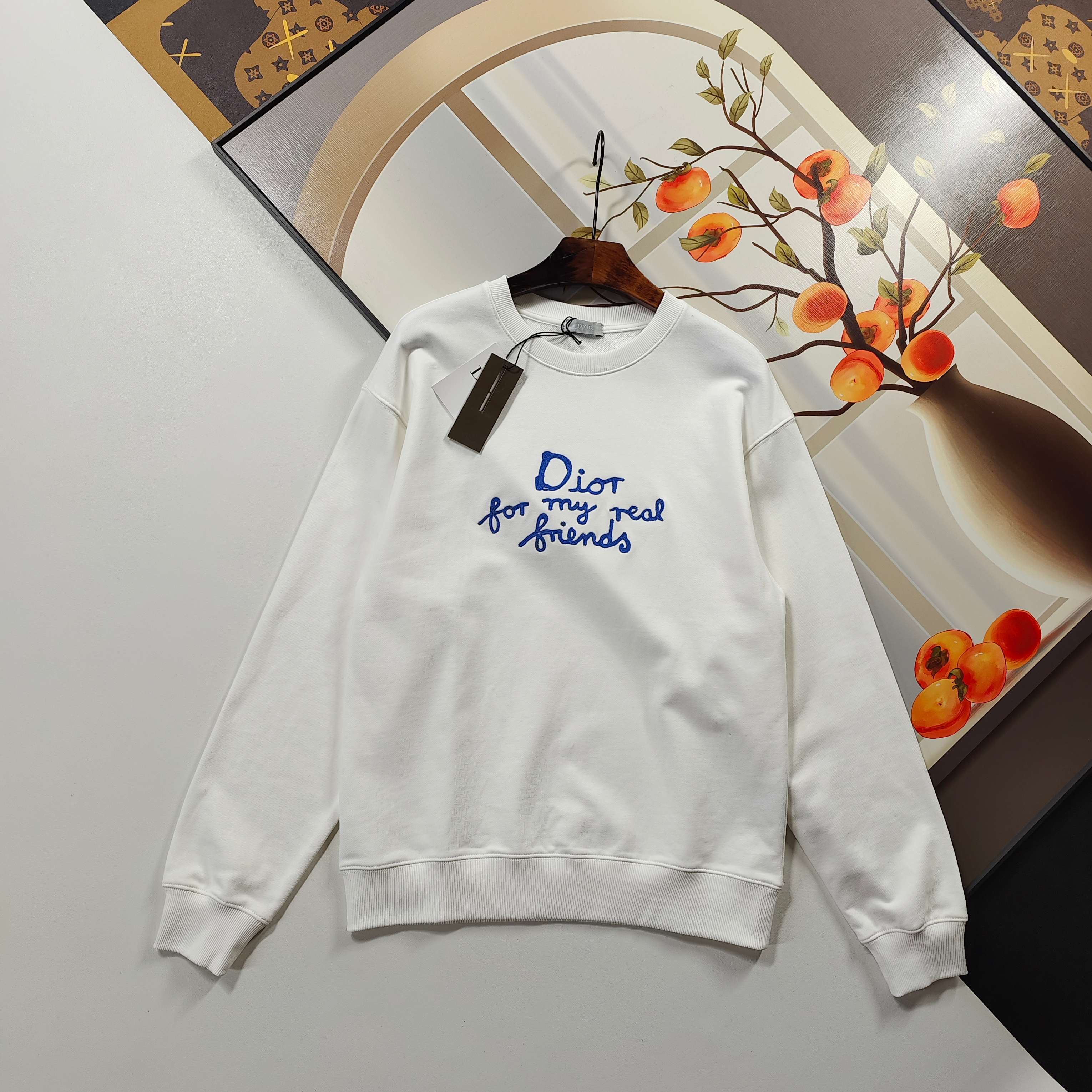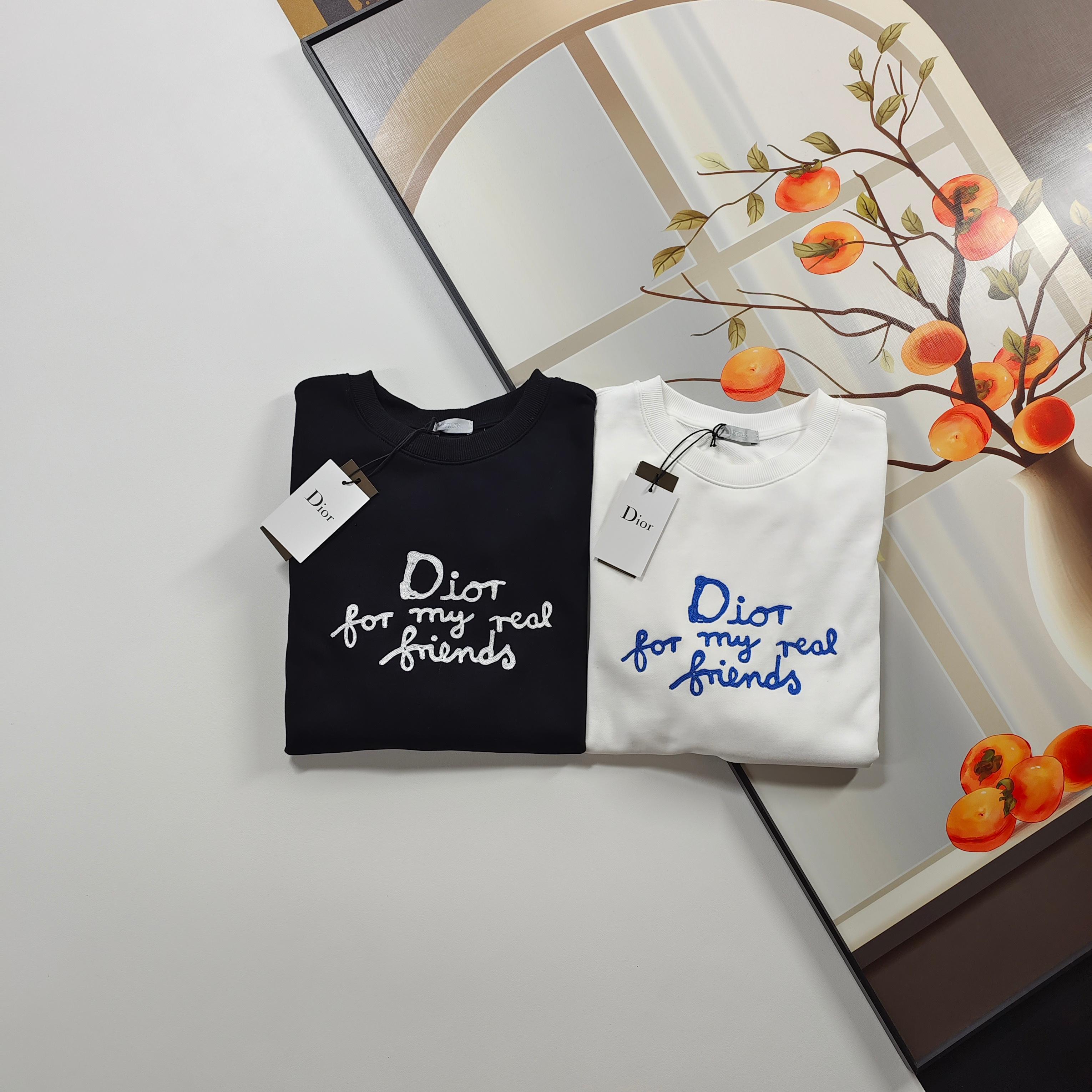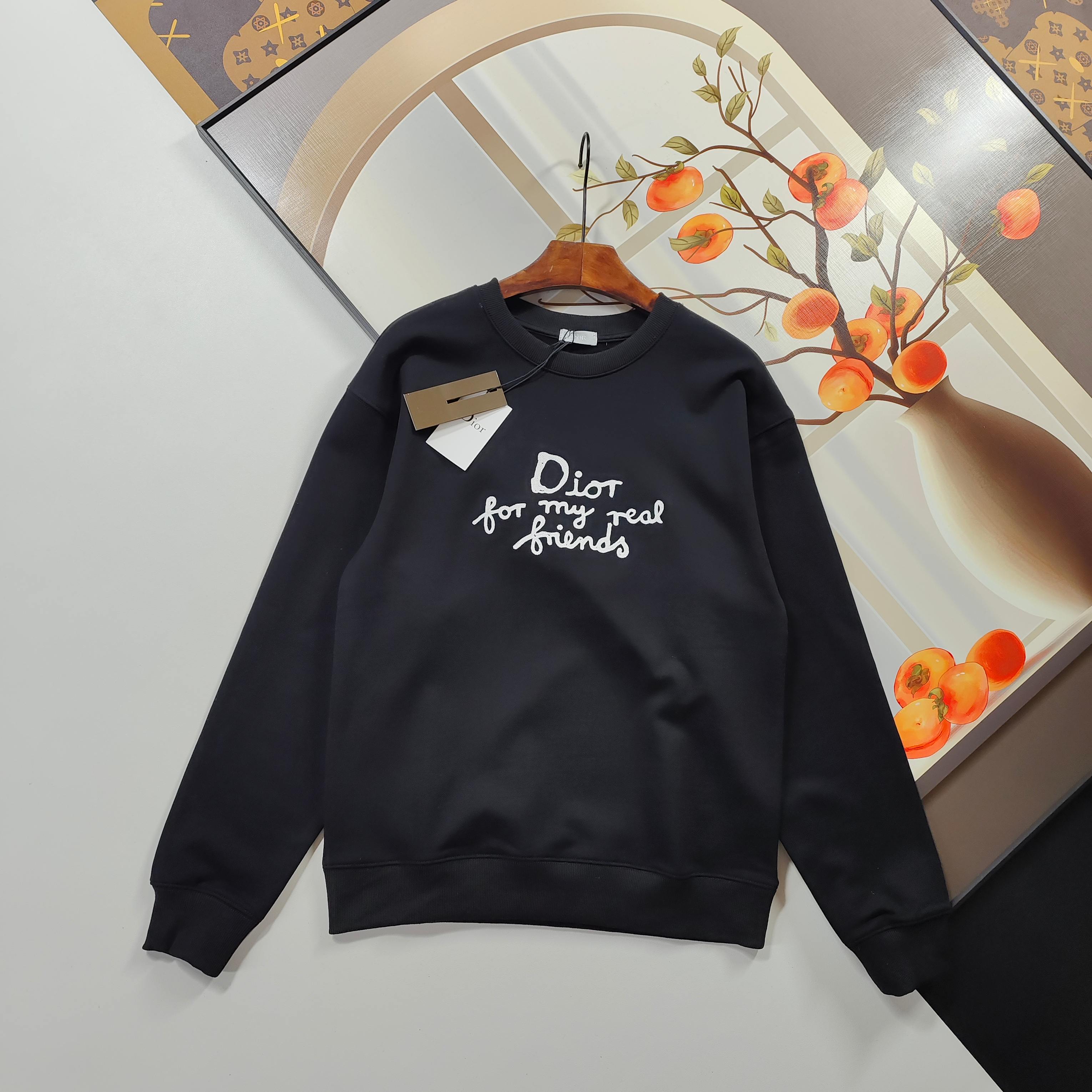 Christian Dior hoodie, 2025秋冬, CD embroidery, black/white. Sizes S-XL. 100% cotton, 420g. Slim fit, unisex.