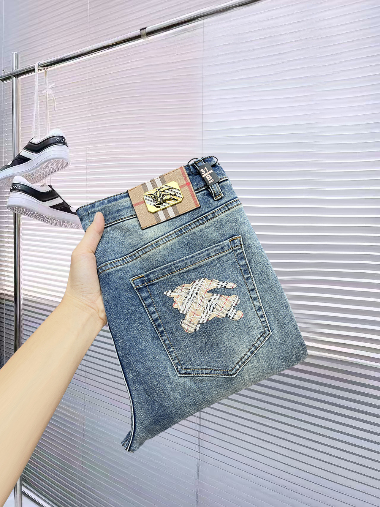 Main秋冬新款长期供货。高品质巴宝莉2025官网新款牛仔裤,采用进口棉质丹宁布,舒适修身。简约奢华设计,必备时尚单品。尺码29-38。