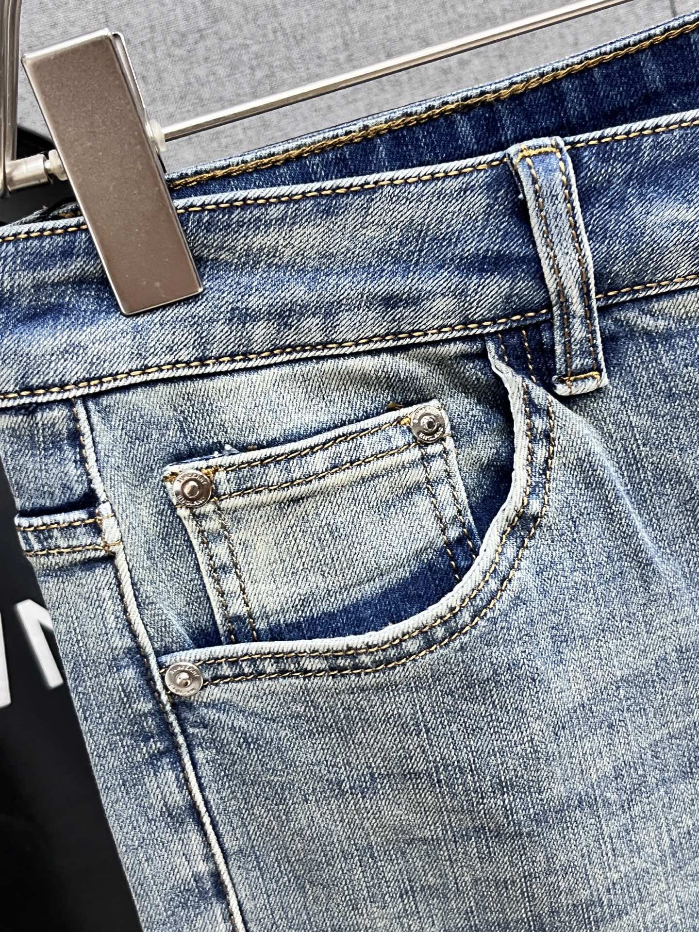 LV Thin Denim Jeans. 2025 latest style. 98% cotton, 2% spandex. Solid, slightly stretchy, comfortable. Simple design, hidden zipper, embossed pockets. Excellent fit.
