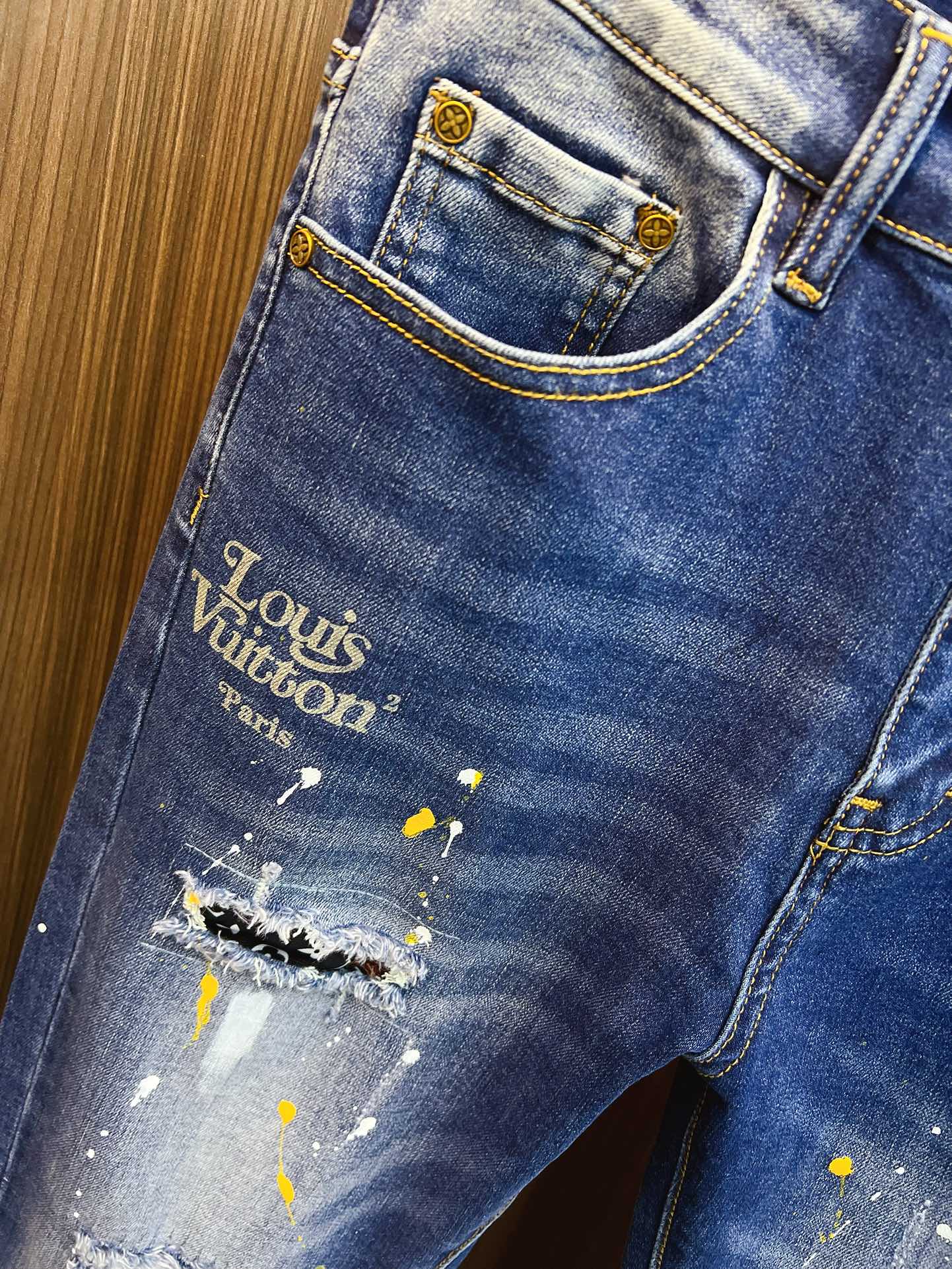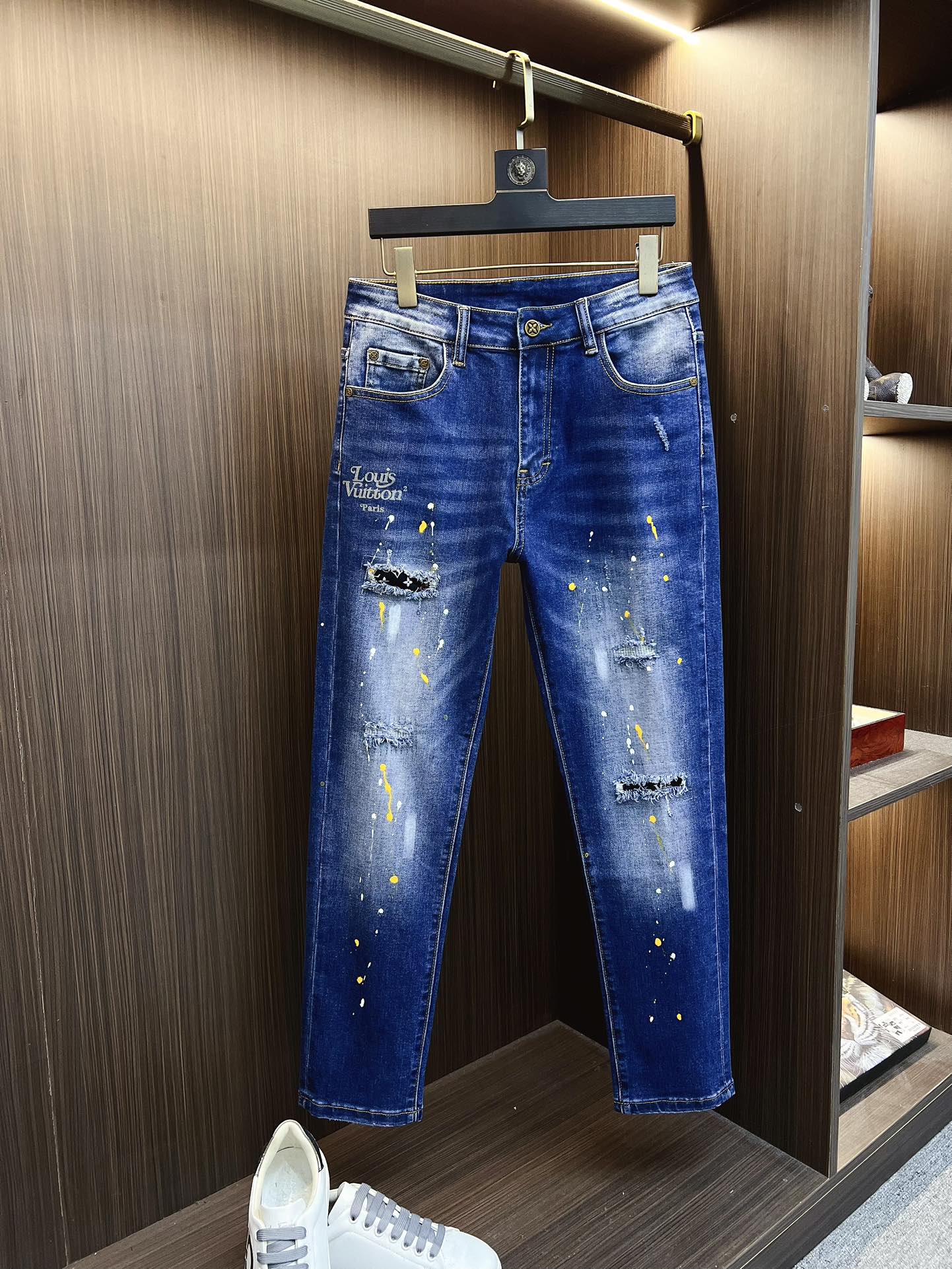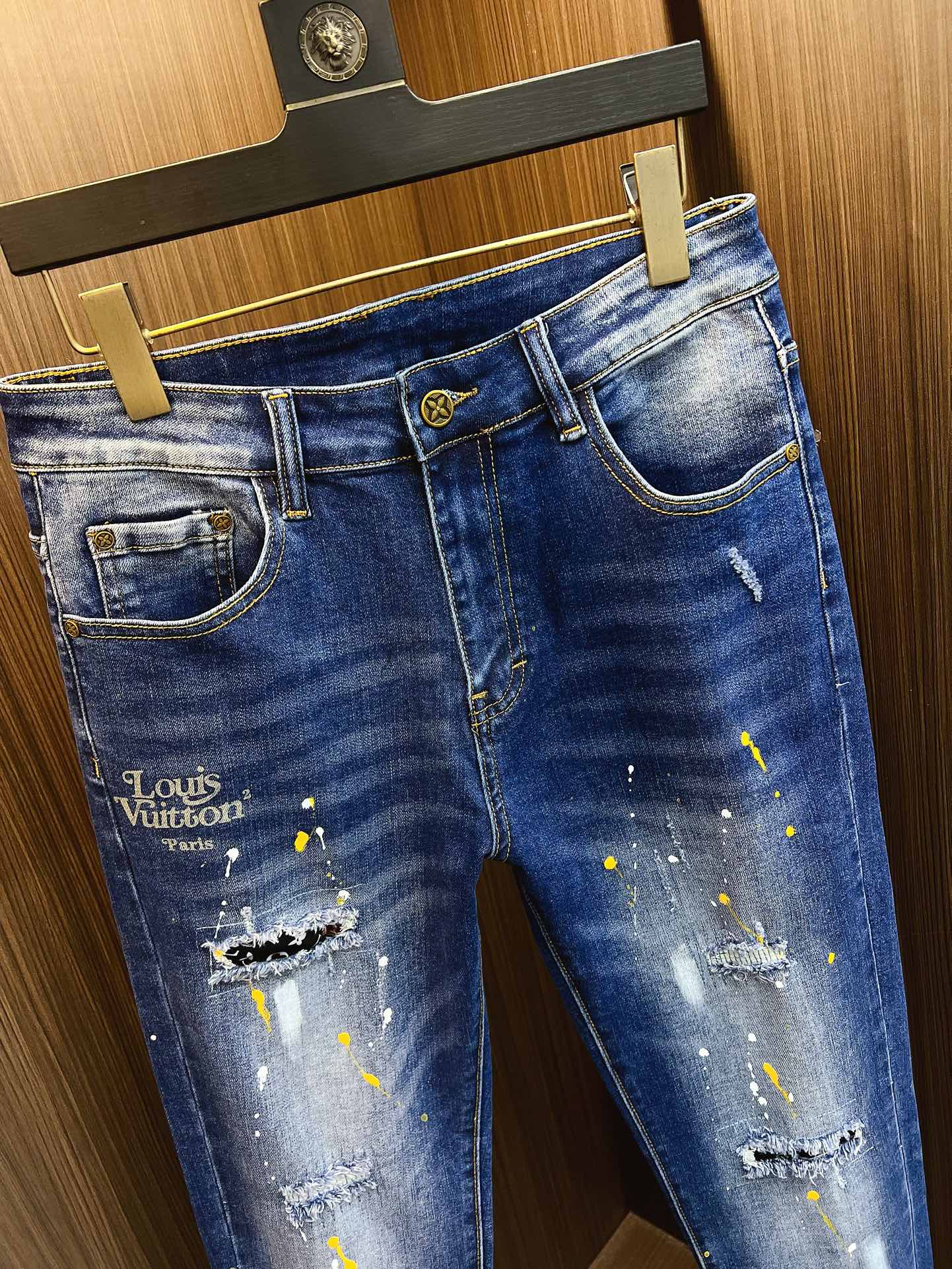Louis Vuitton 2025 new men's jeans. Stretchy denim, exclusive release, elegant design with fine craftsmanship. Sizes 28-38, ships next day.