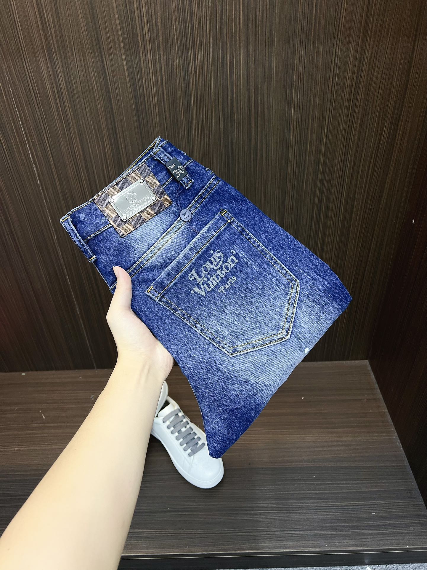 LV Thin Denim Jeans. 2025 latest style. 98% cotton, 2% spandex. Solid, slightly stretchy, comfortable. Simple design, hidden zipper, embossed pockets. Excellent fit.