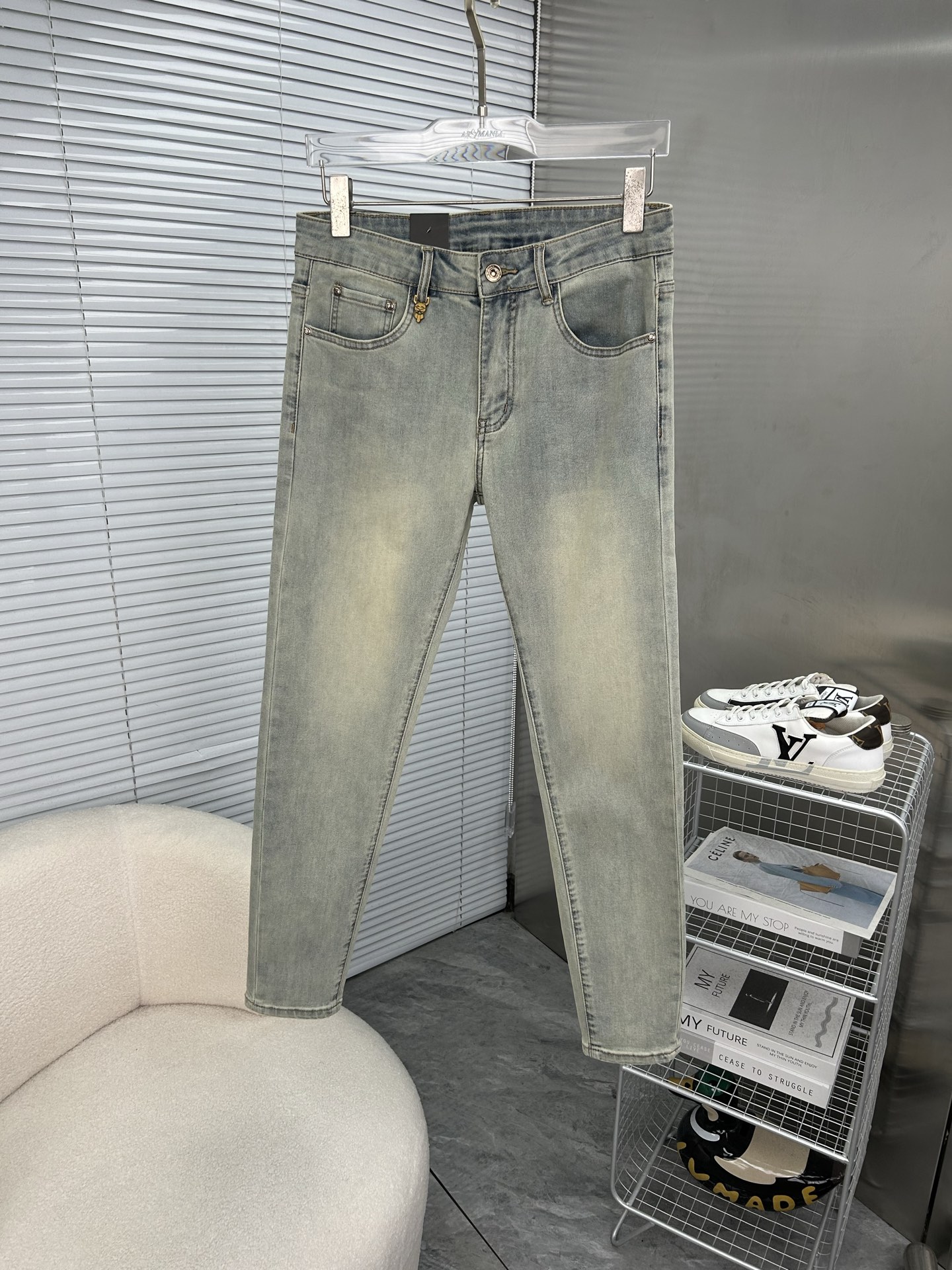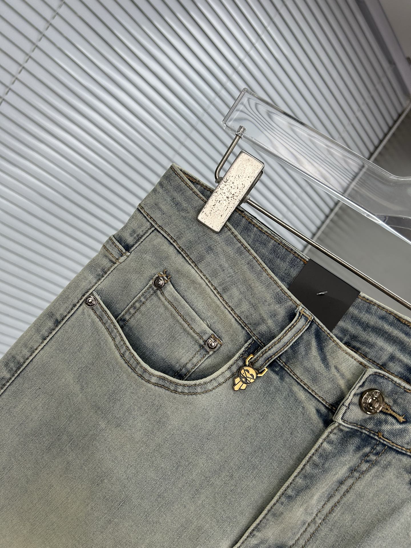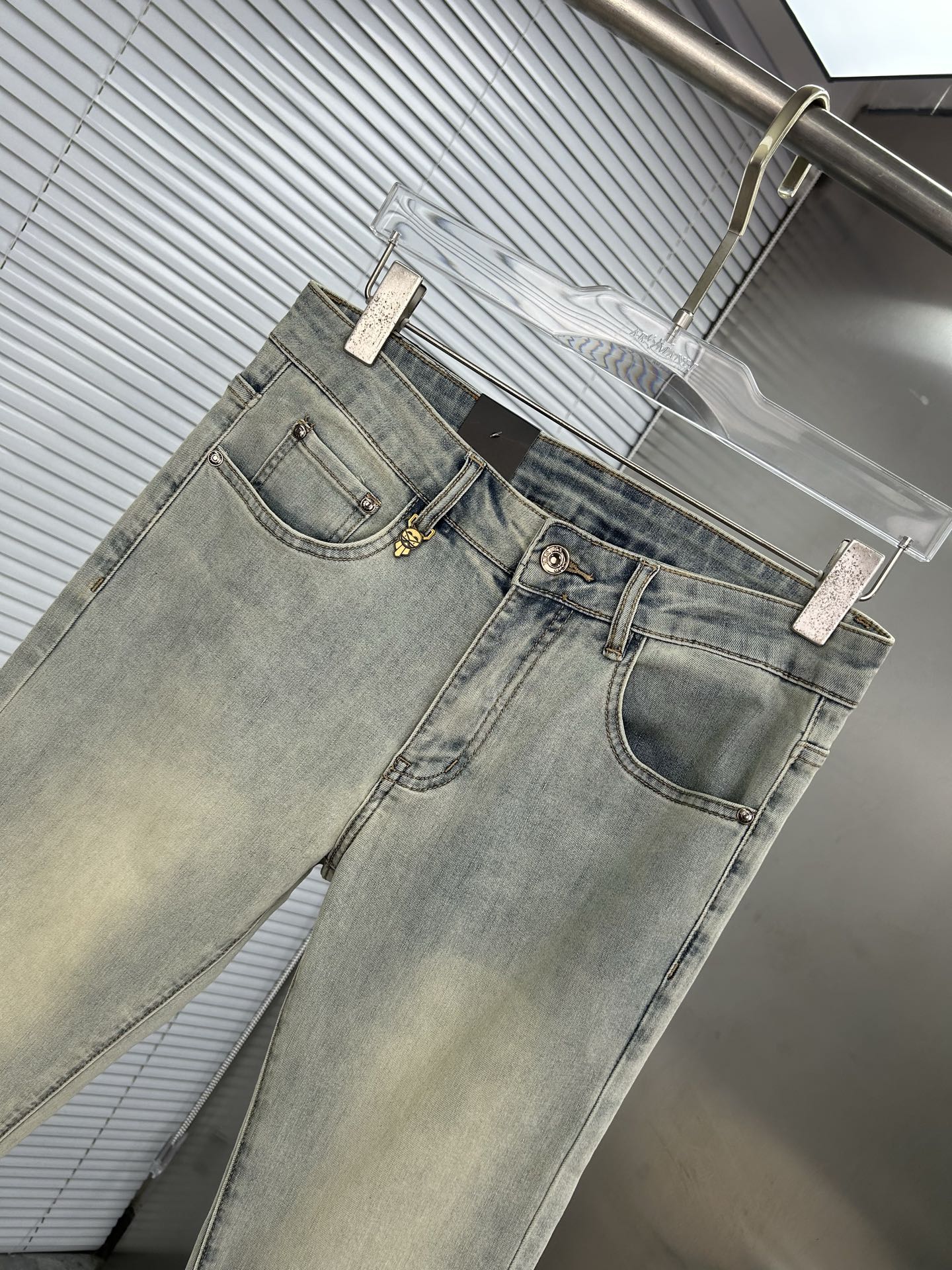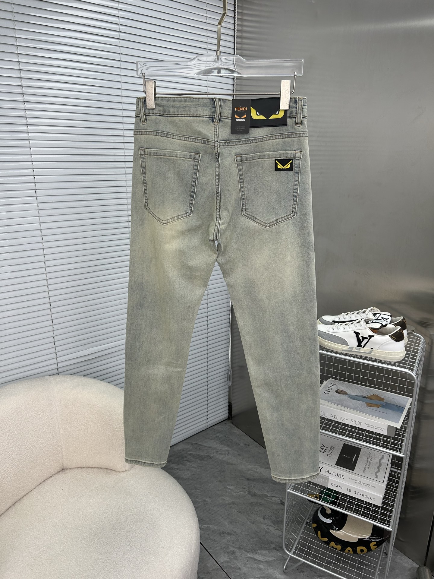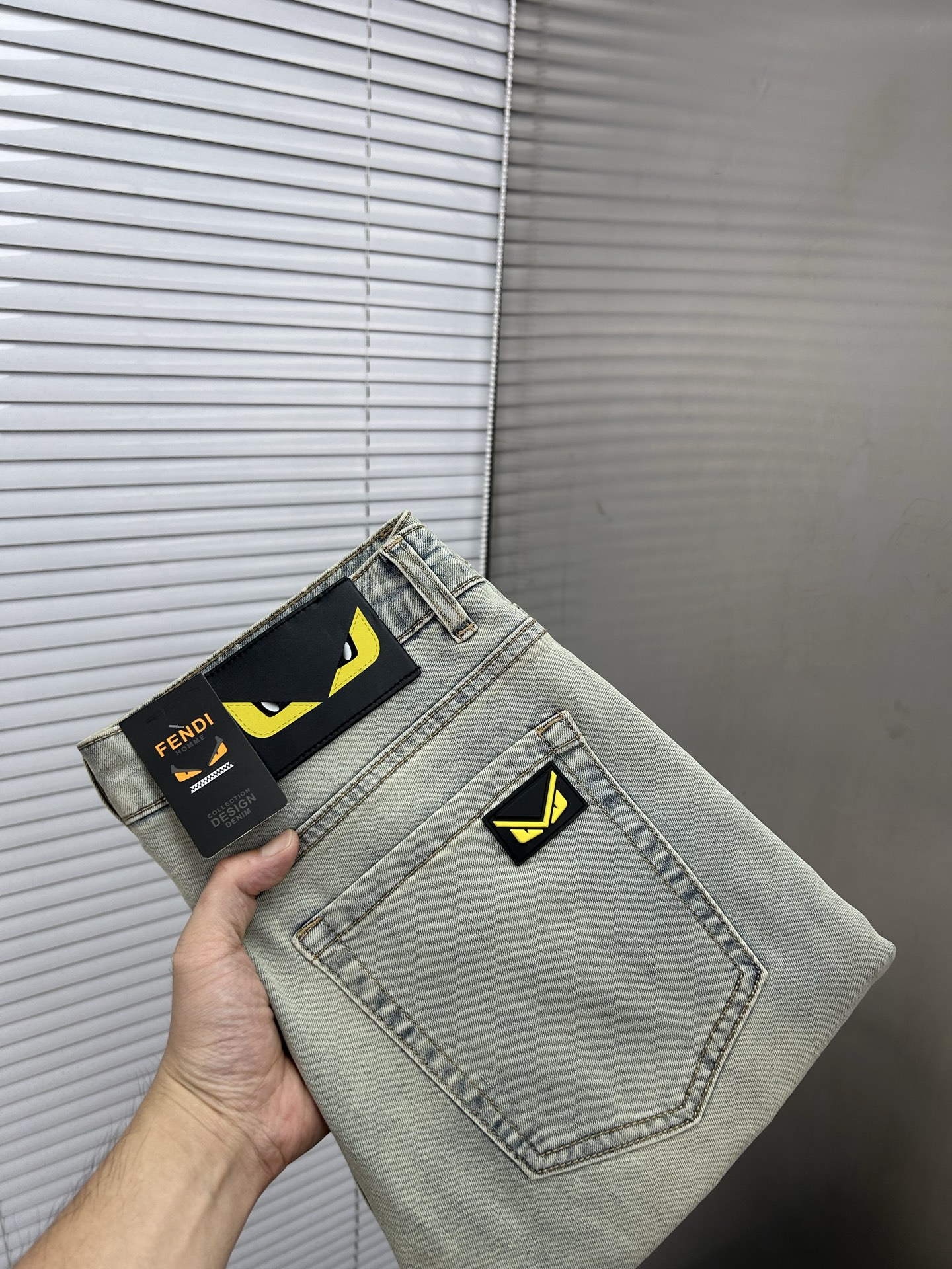 FENDI 2025 men's jeans. Stretchy denim, artisan wash, leather label. Sizes 28-38. Next-day shipping.