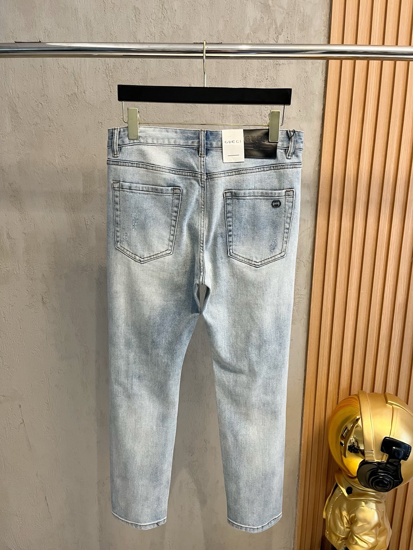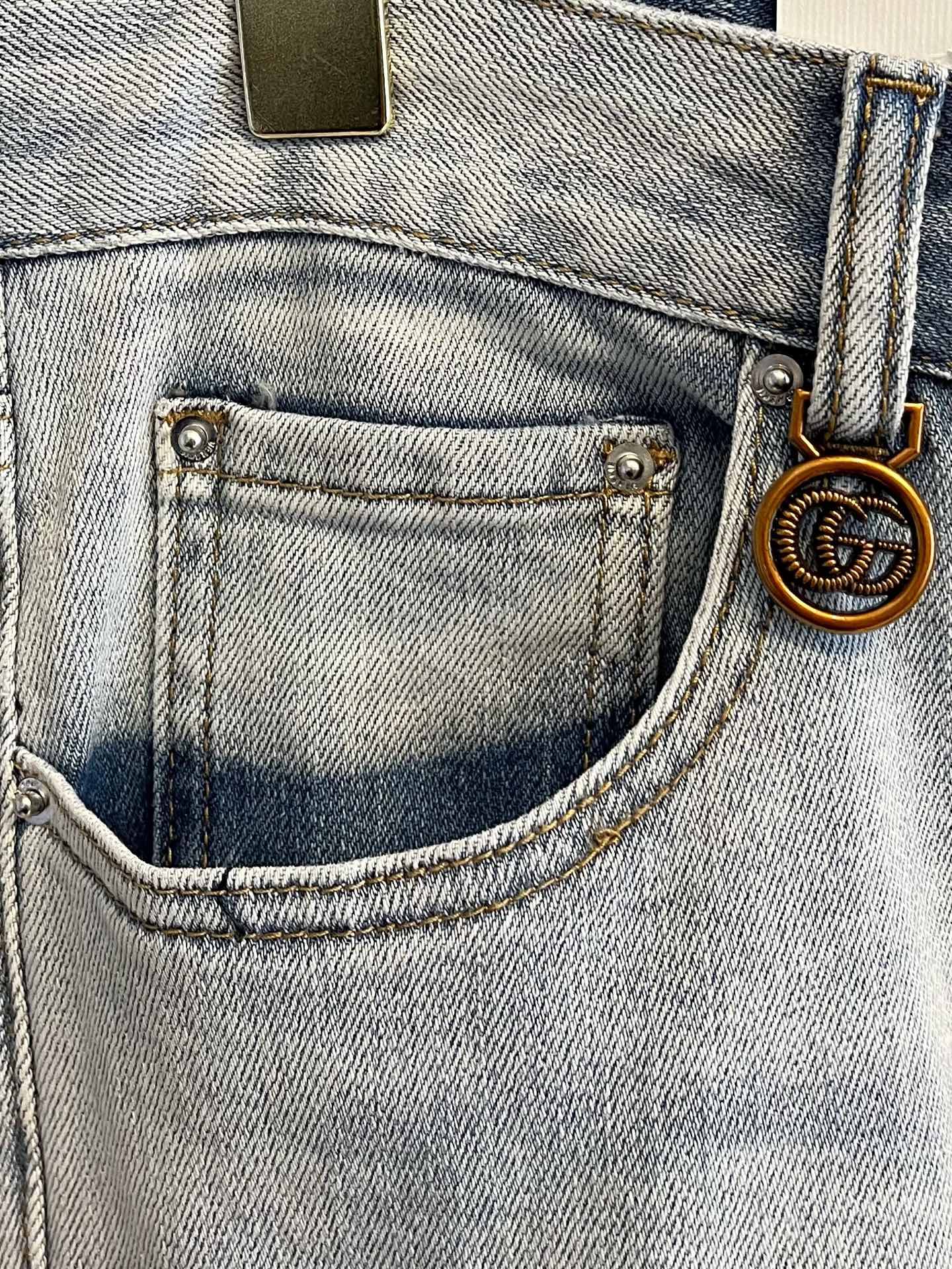 GUCCI 2025 men's jeans with elastic fabric. Exclusive launch, elegant design, heavy craftsmanship. Imported denim, leather tag. Sizes 28-38, ships next day.
