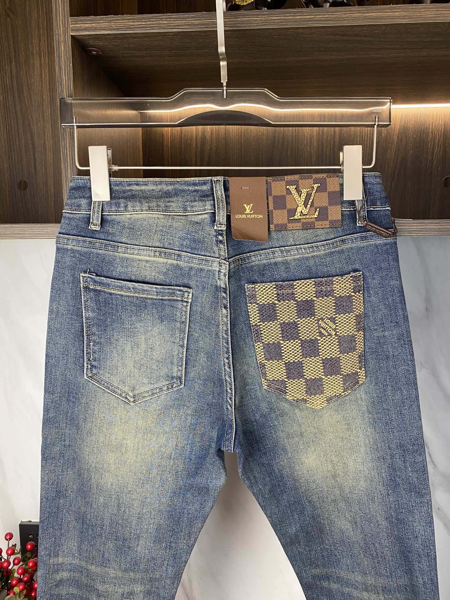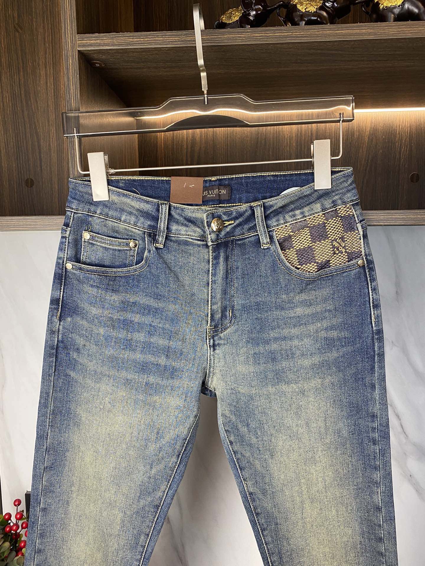 Louis Vuitton 2025 new men's jeans. Stretchy denim, exclusive release, elegant design with fine craftsmanship. Sizes 28-38, ships next day.