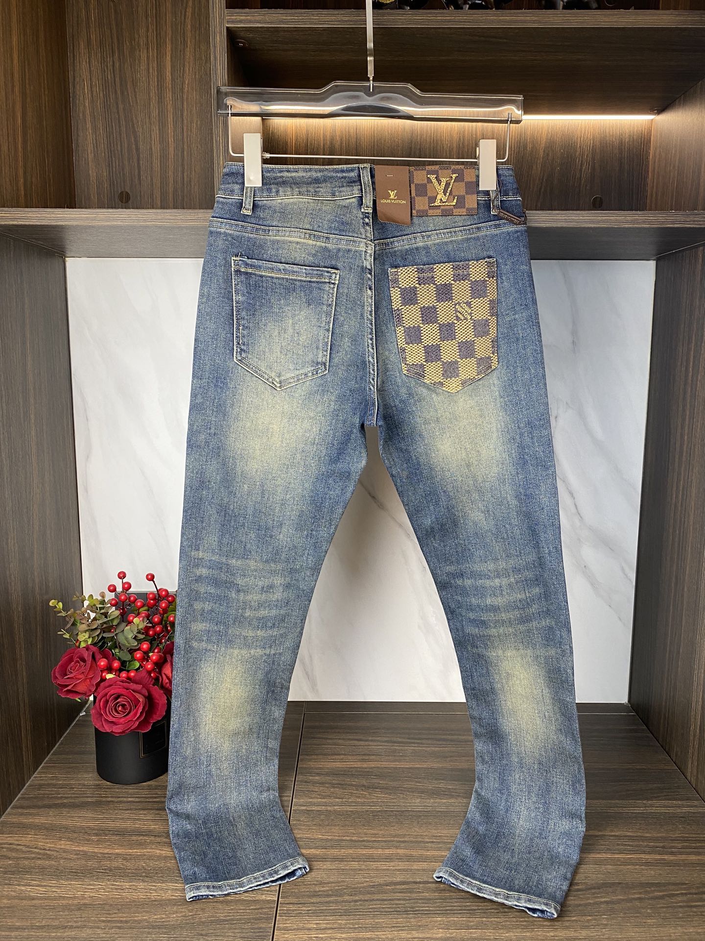 LV Thin Denim Jeans. 2025 latest style. 98% cotton, 2% spandex. Solid, slightly stretchy, comfortable. Simple design, hidden zipper, embossed pockets. Excellent fit.