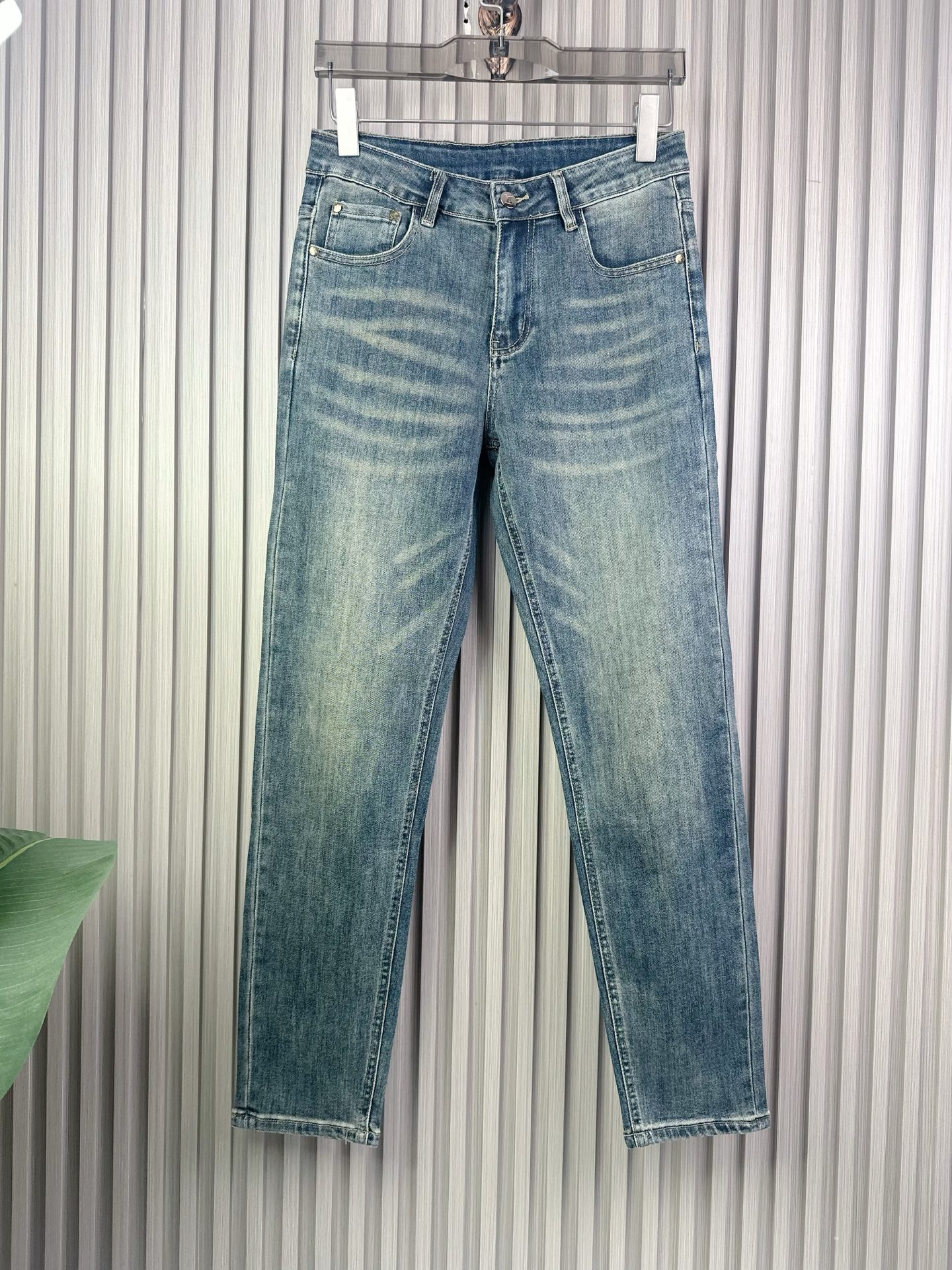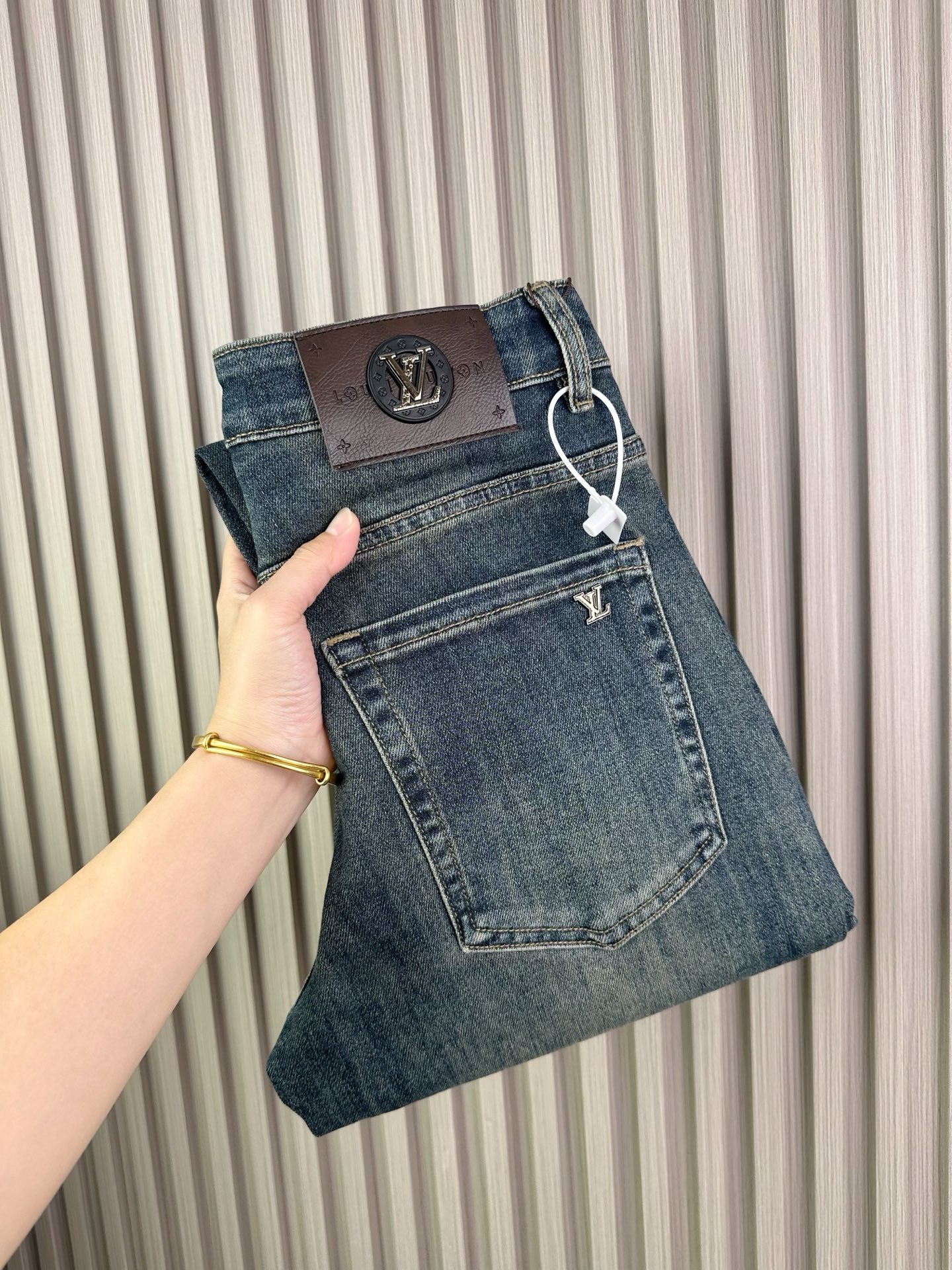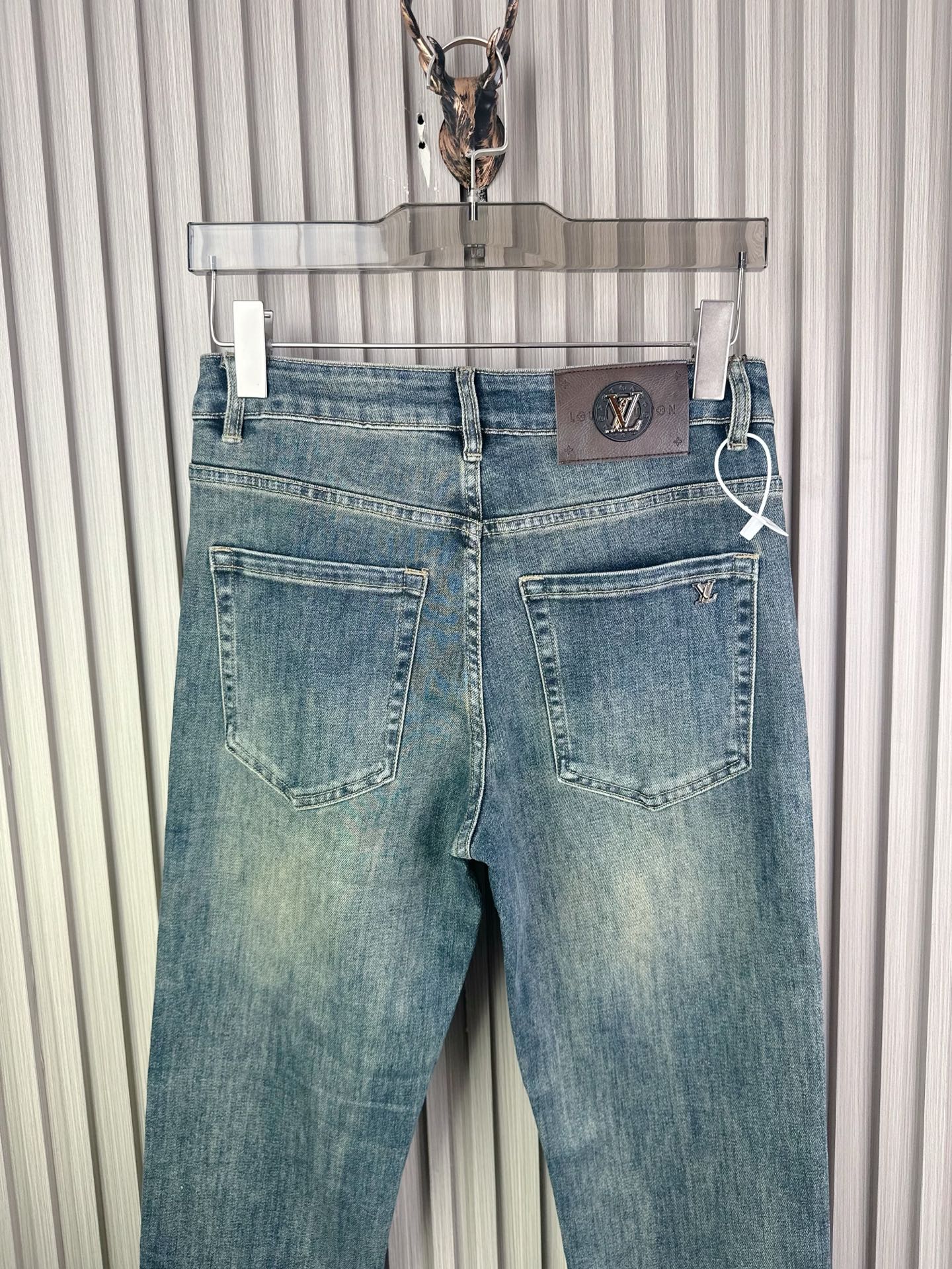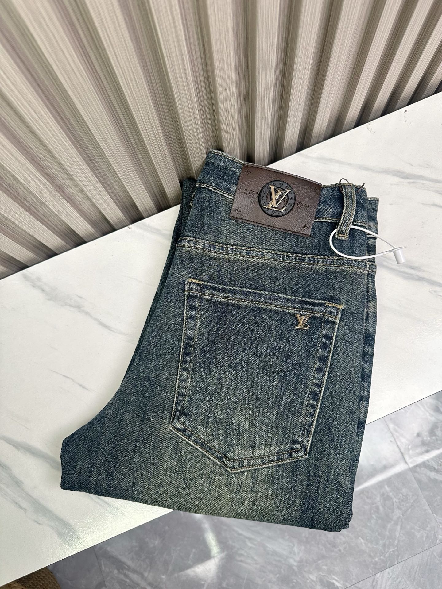Classic LV-inspired jeans, slim fit stretch pants with heavy wash process. Comfortable, breathable fabric. Fashionable must-have item. Sizes 28-38 available.