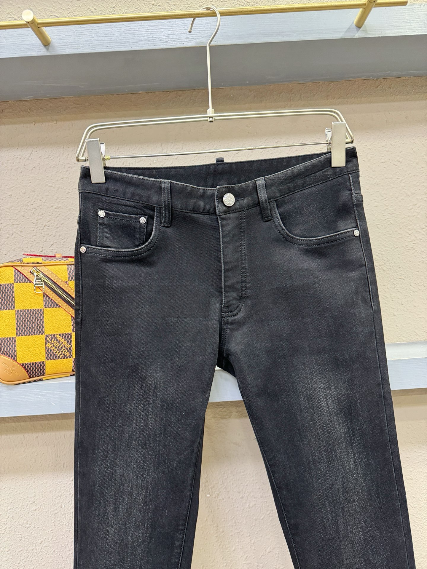 LV Thin Denim Jeans. 2025 latest style. 98% cotton, 2% spandex. Solid, slightly stretchy, comfortable. Simple design, hidden zipper, embossed pockets. Excellent fit.