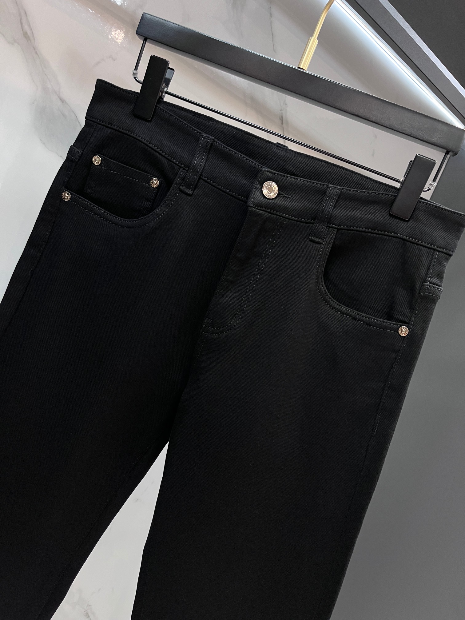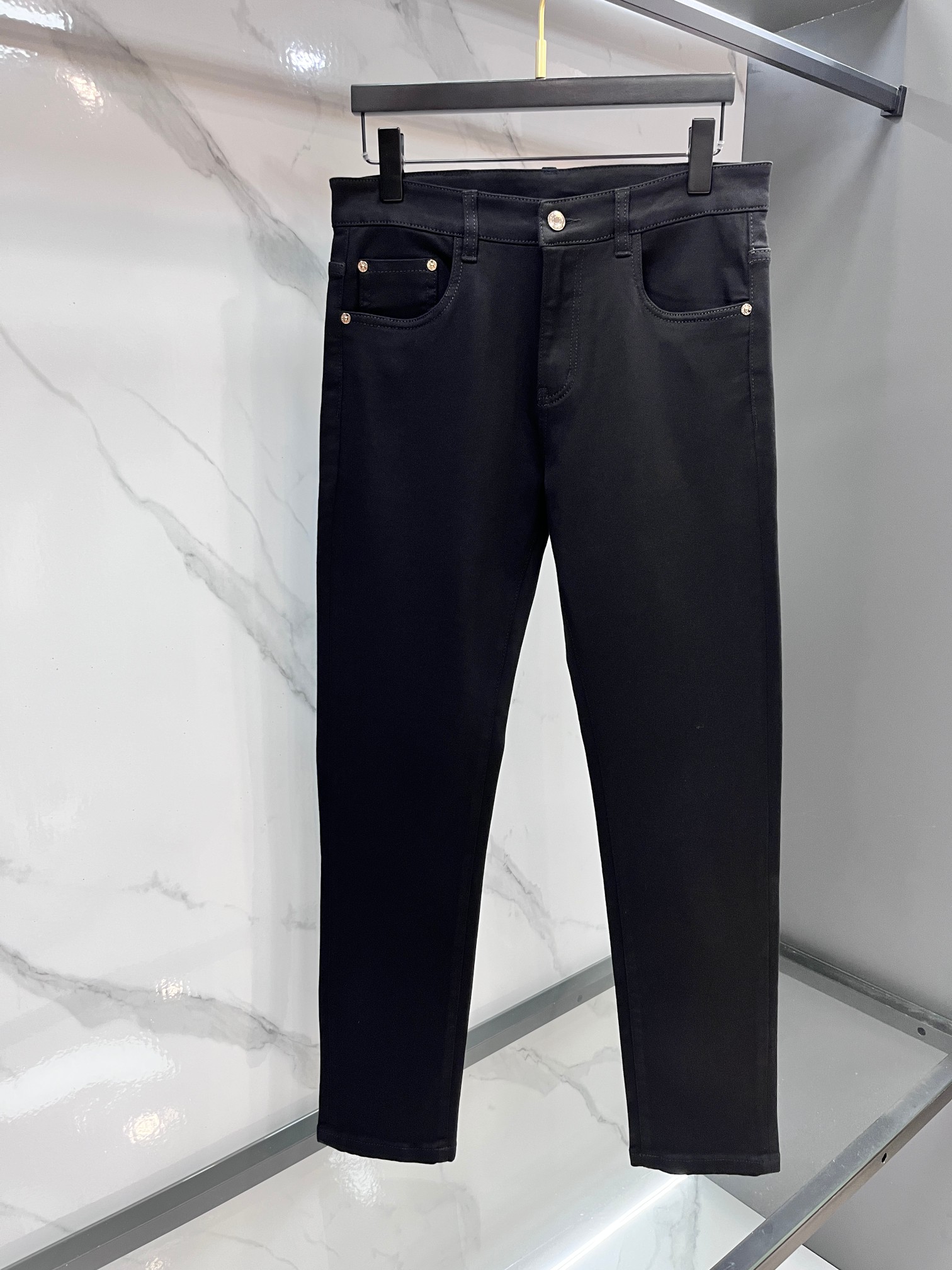 LV Thin Denim Jeans. 2025 latest style. 98% cotton, 2% spandex. Solid, slightly stretchy, comfortable. Simple design, hidden zipper, embossed pockets. Excellent fit.