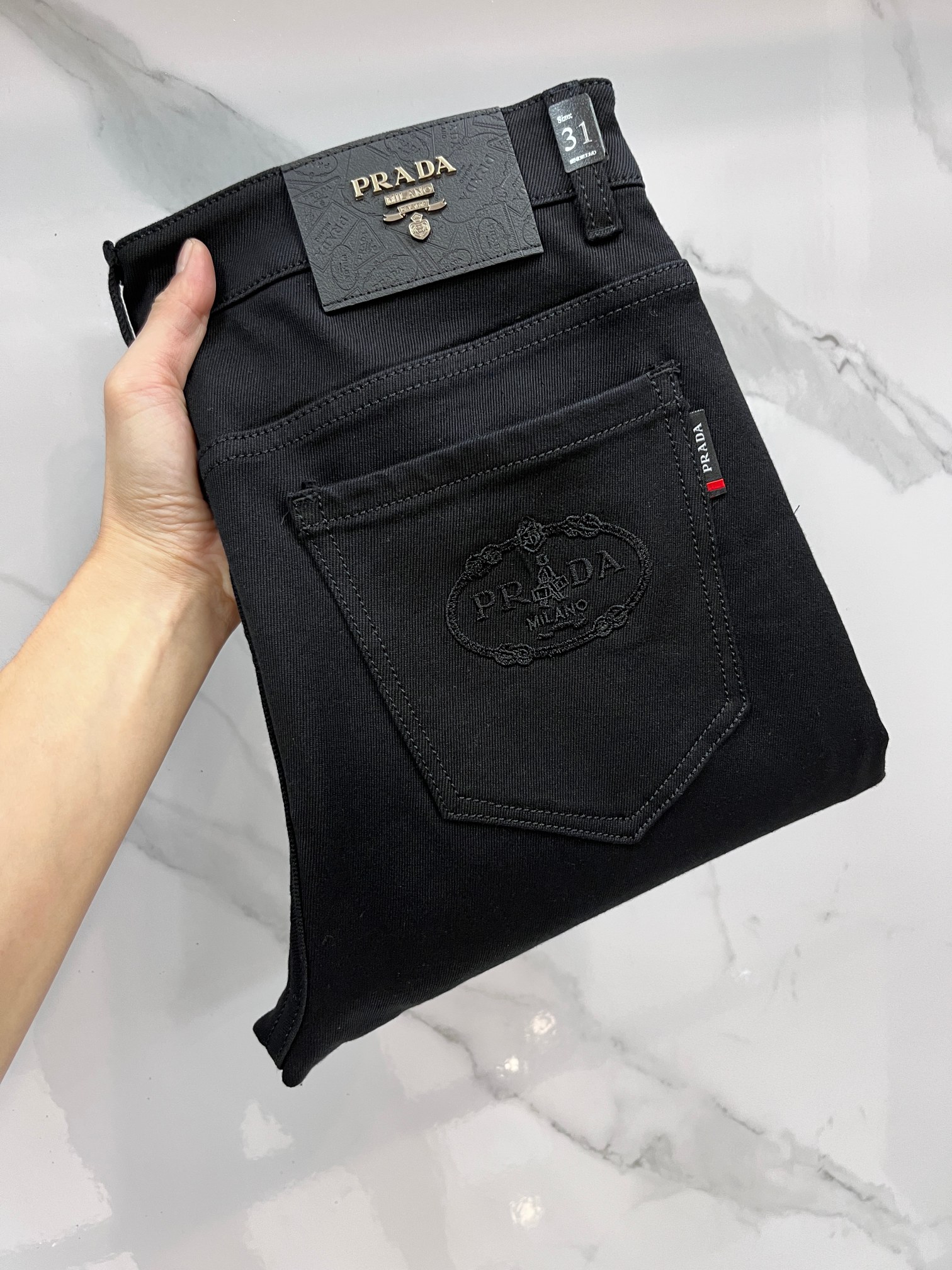 Prada high-end custom 2025 early autumn jeans. Original quality, imported stretch denim, detailed craftsmanship. Sizes 29-38.