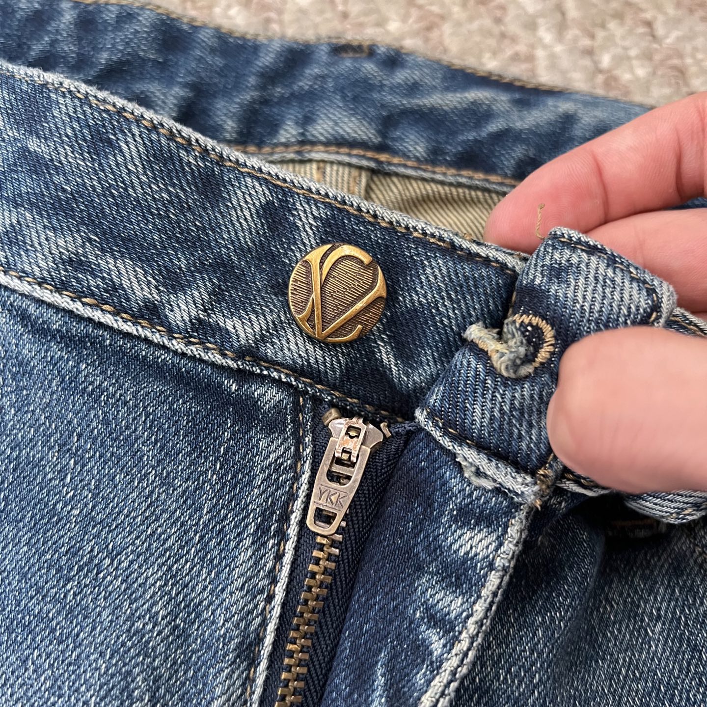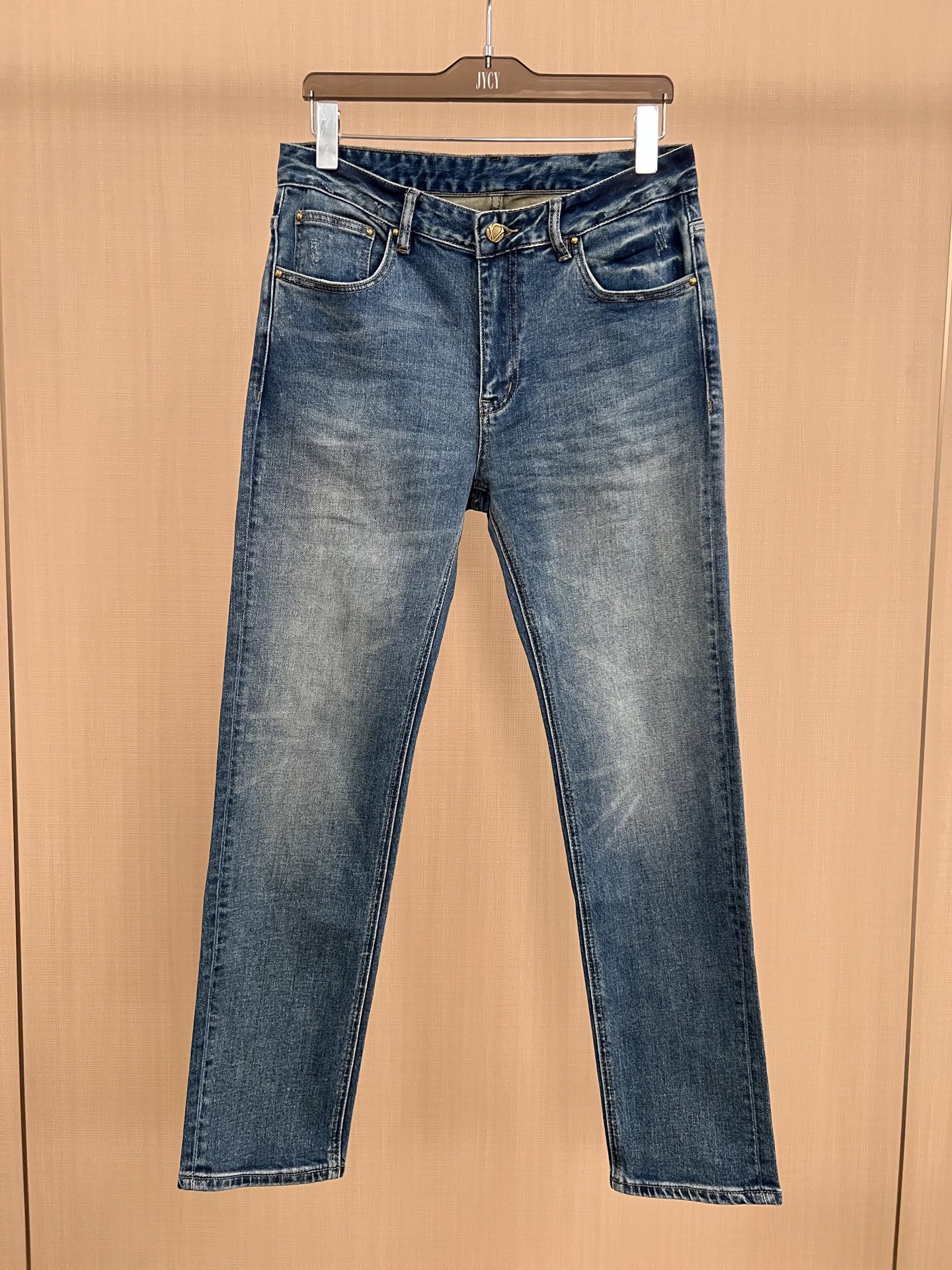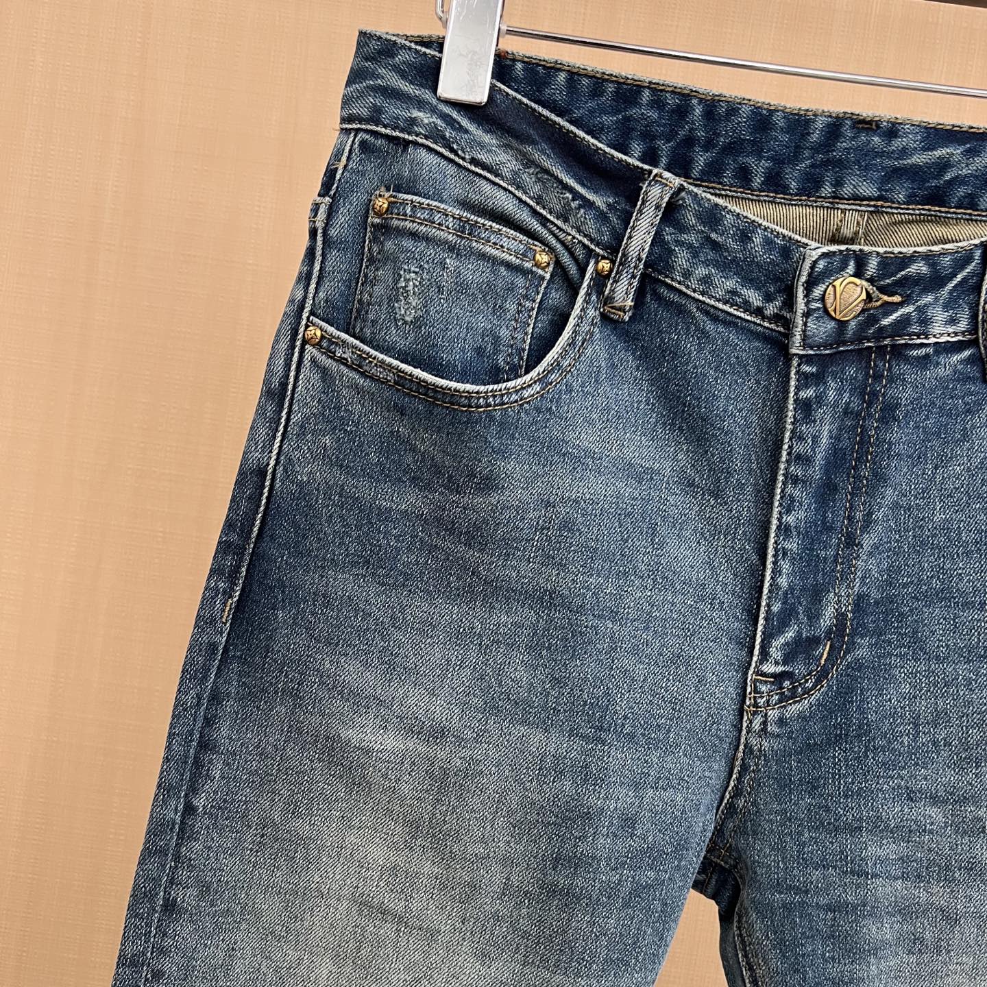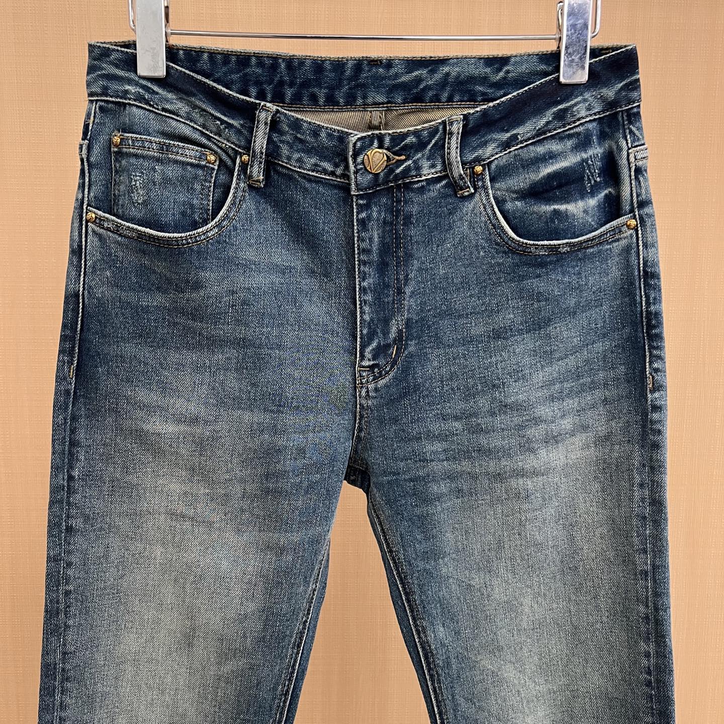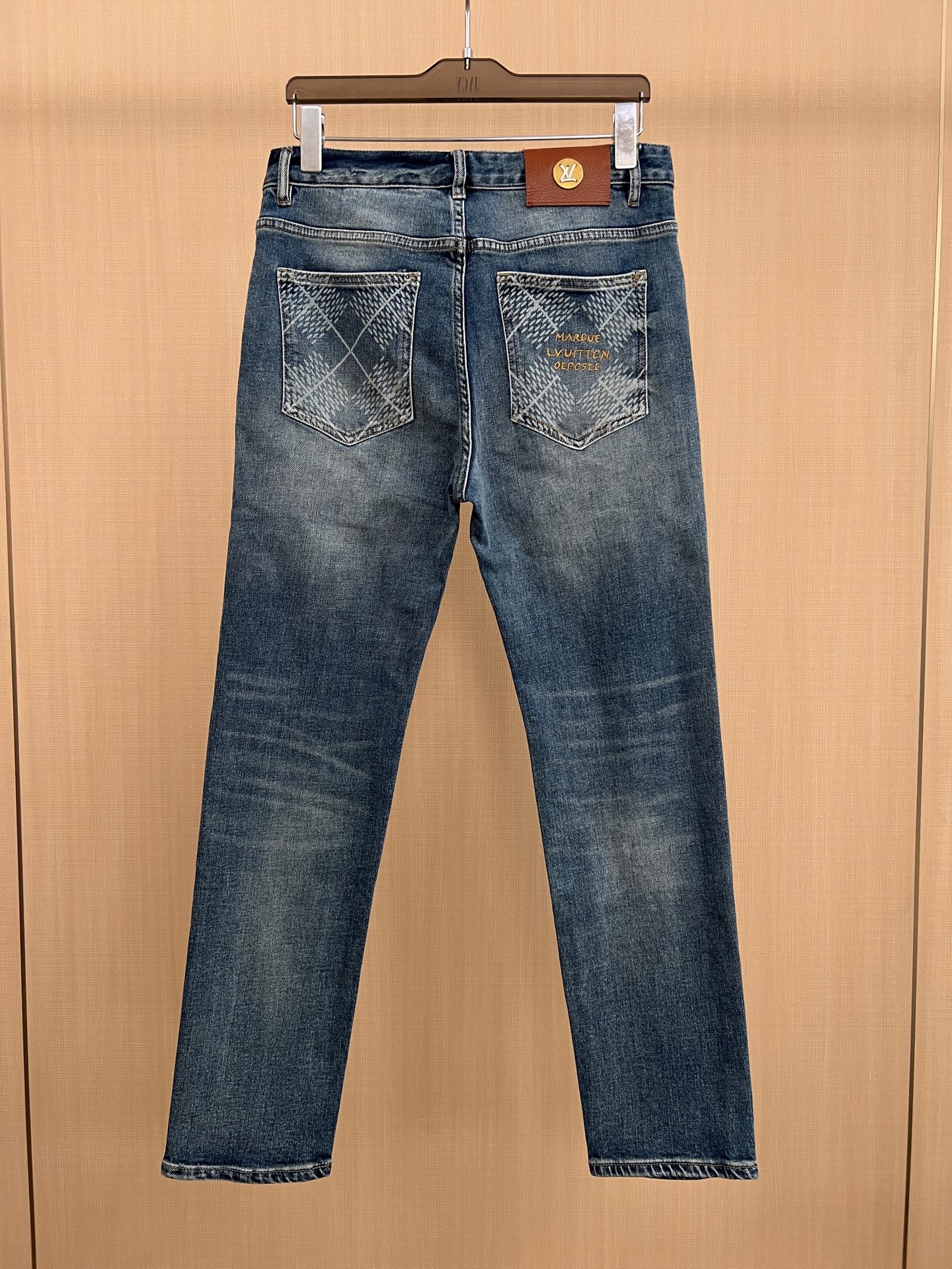 LV limited edition jeans. Autumn/winter new arrival with trendy design. Features intricate washing process, detailed hardware, and elastic slim straight cut. Sizes 29-38 (no 35, 37).