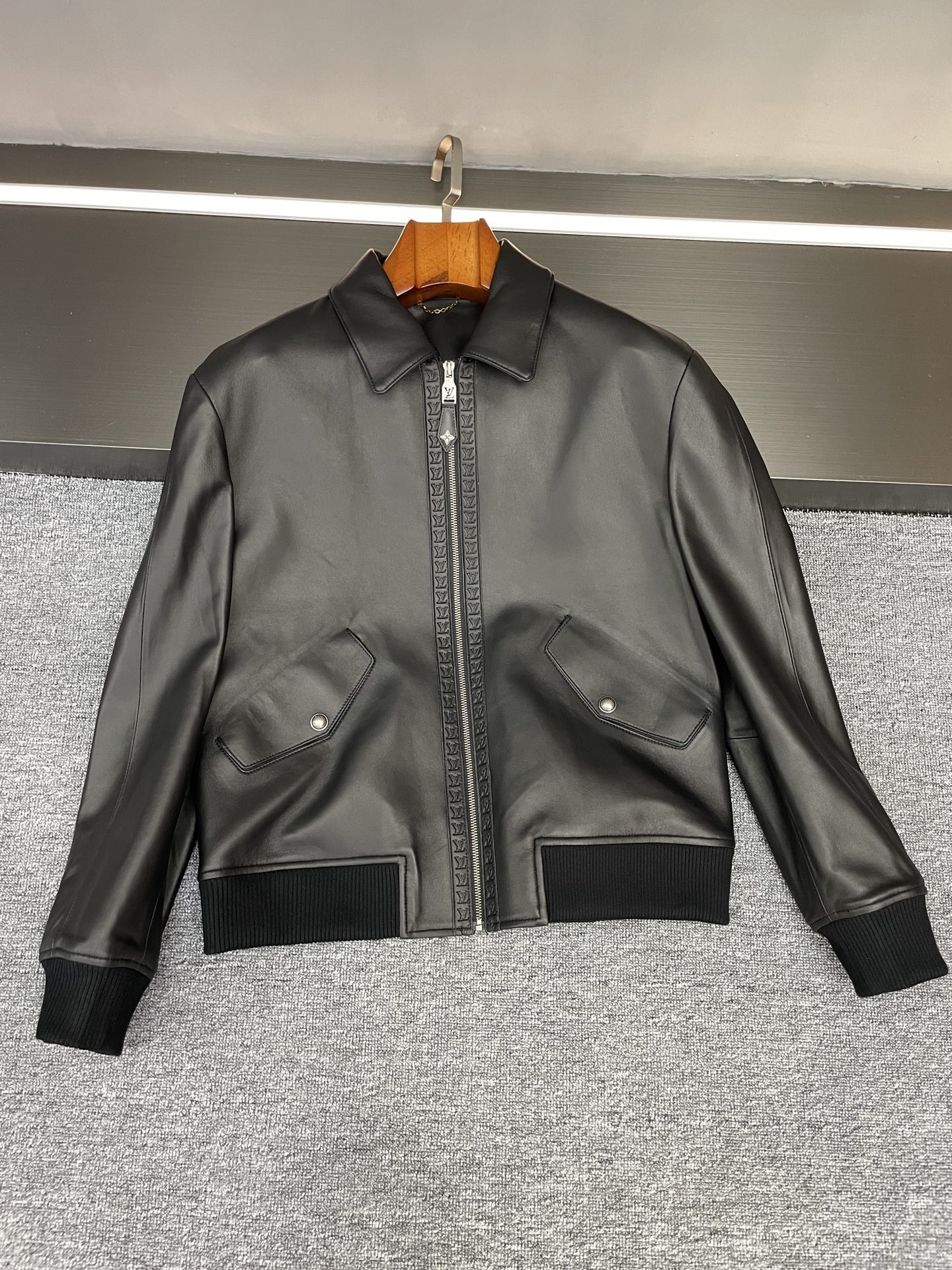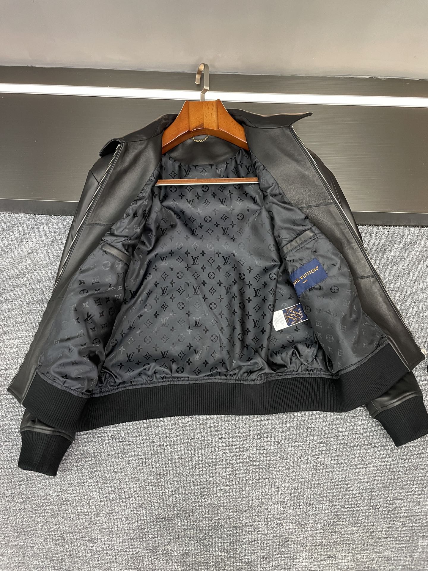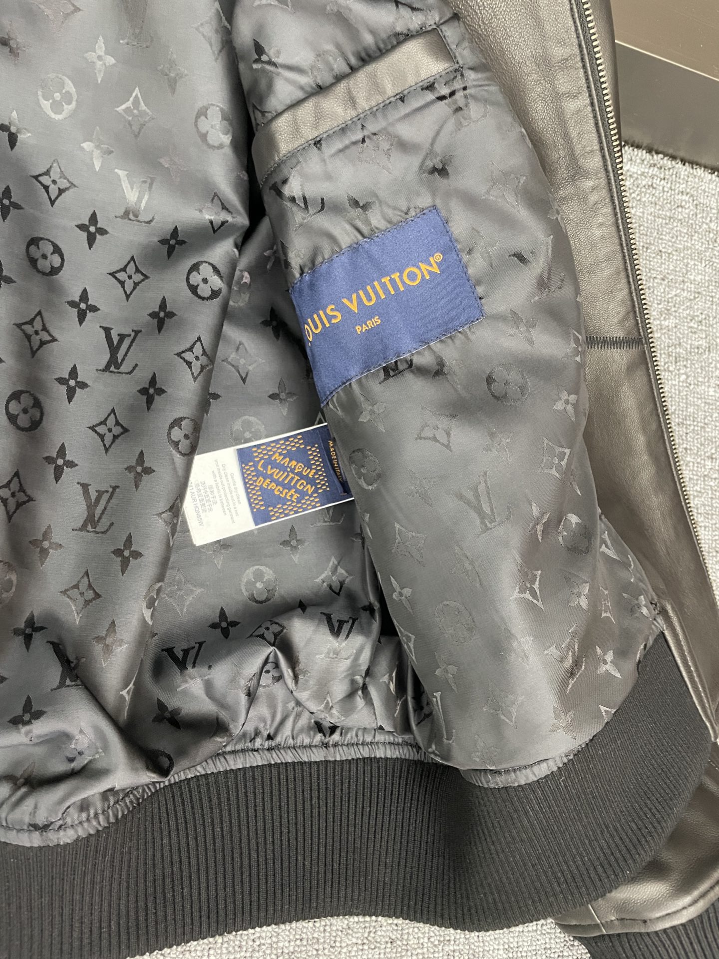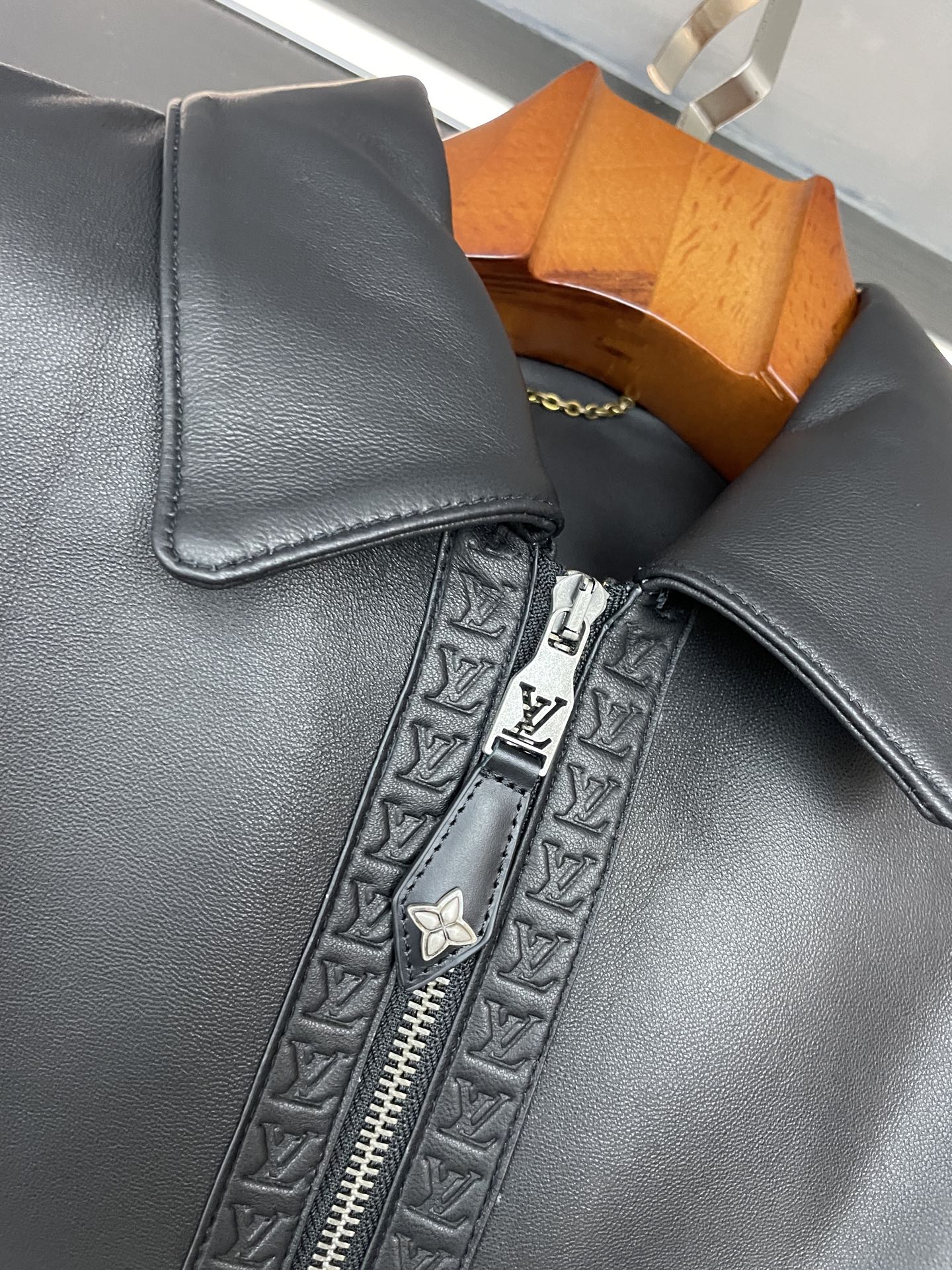LV lambskin jacket, a timeless autumn/winter classic. Crafted from premium New Zealand leather with subtle LV logo embossing. Versatile lapel design suits all occasions. Combines sophistication with understated luxury.