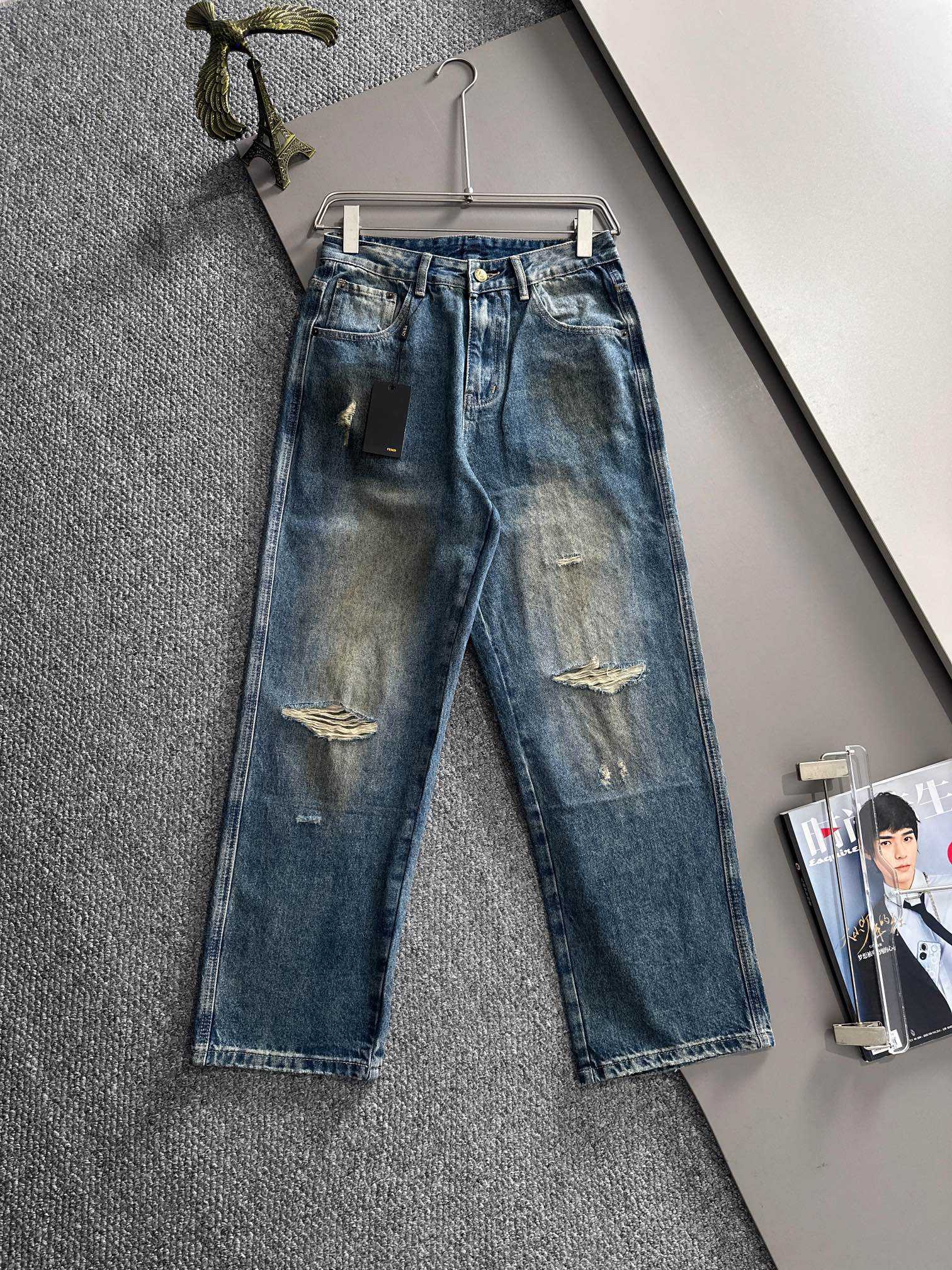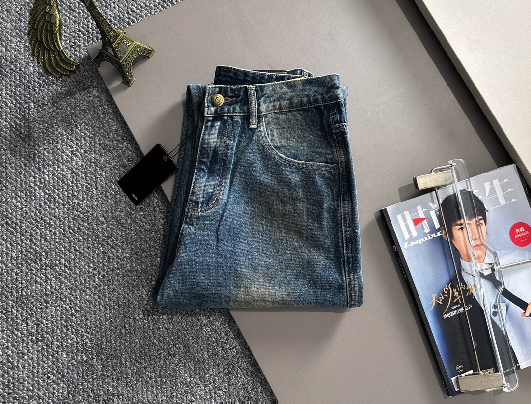 Fendi 2025 four-season loose fit straight-leg jeans. Made from imported Japanese Denim cotton fabric. Soft, comfortable, and breathable. Versatile and stylish for daily wear. Sizes: S-3XL.