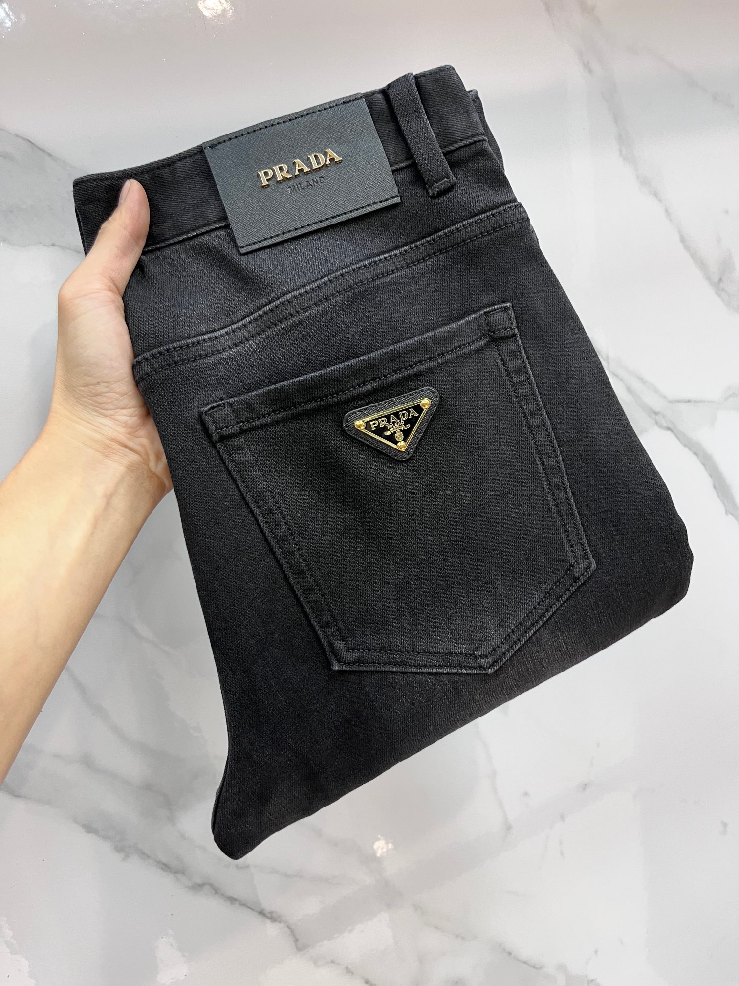 Prada high-end custom 2025 early autumn jeans. Original quality, imported stretch denim, detailed craftsmanship. Sizes 29-38.