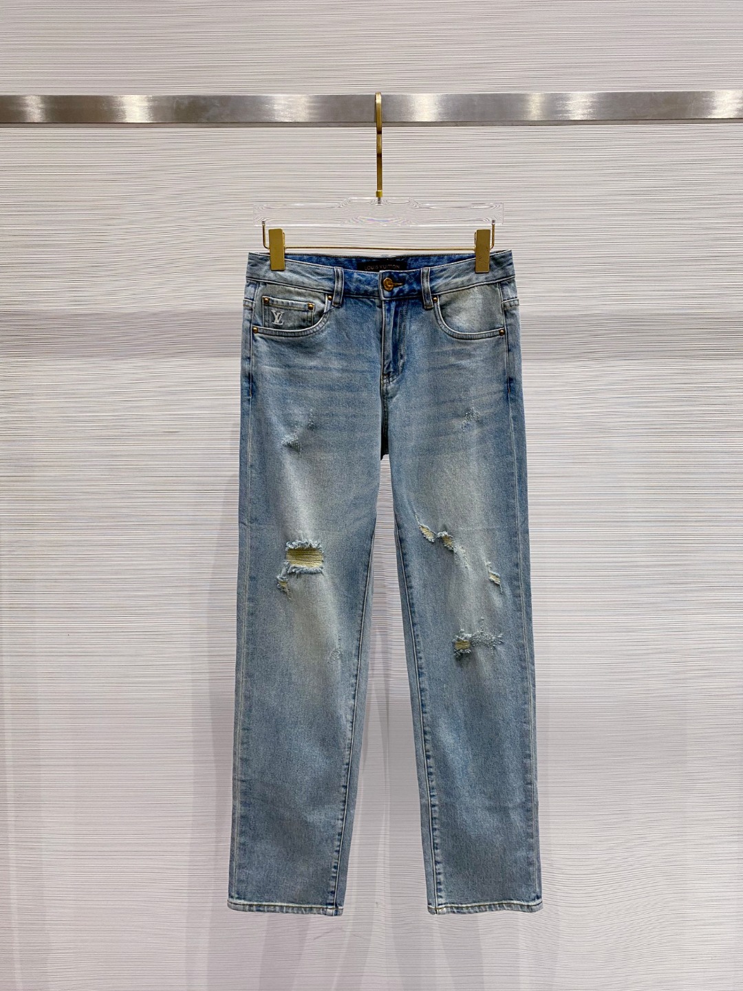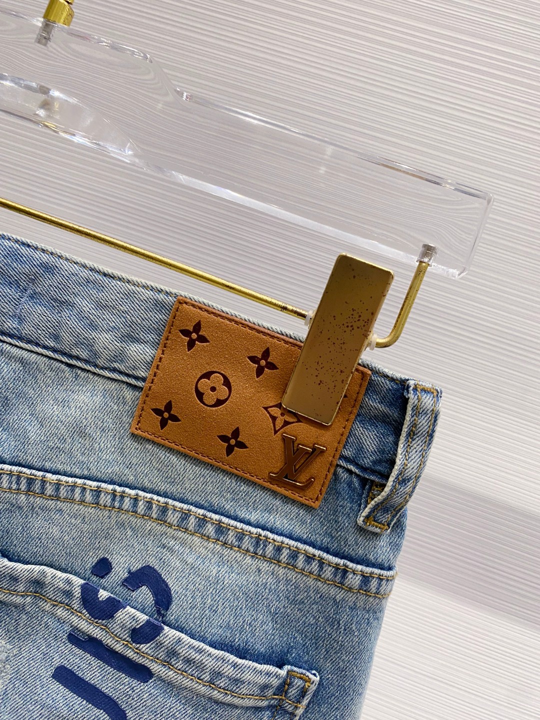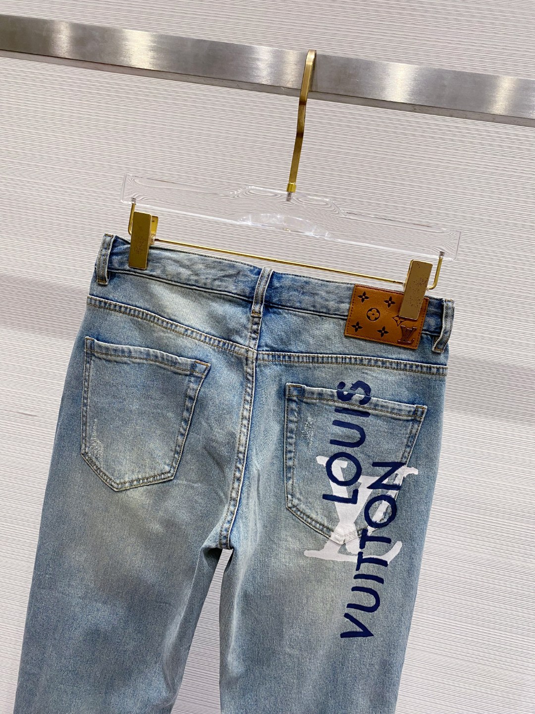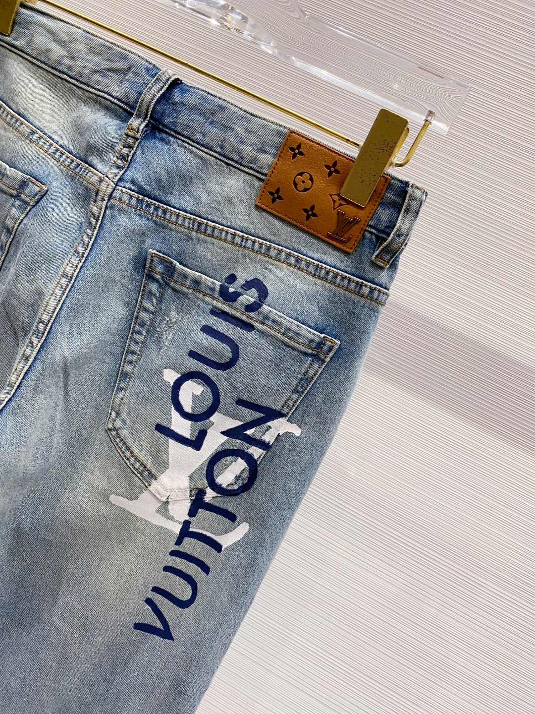 LV 2025 Fall/Winter new men's jeans. Heavy wash denim, custom fabric, soft & comfortable. Top-notch craftsmanship, breathable, premium hardware. Sizes 29-38.