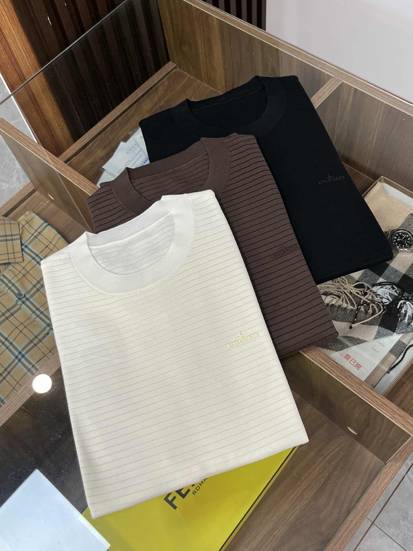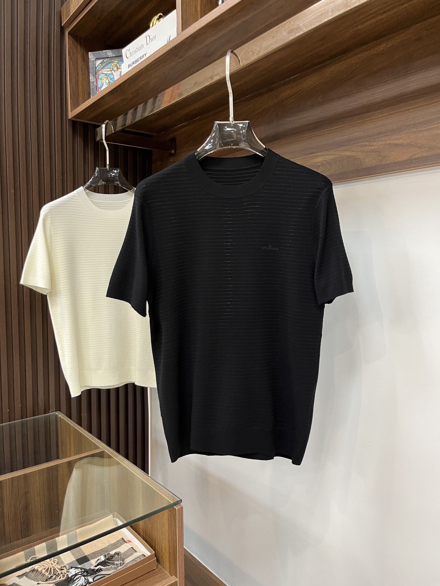 Stone Island 2025SS autumn/winter short-sleeve knit sweater. Fine mulberry silk blend, soft and comfortable. Unique logo design. Sizes: M-4XL.