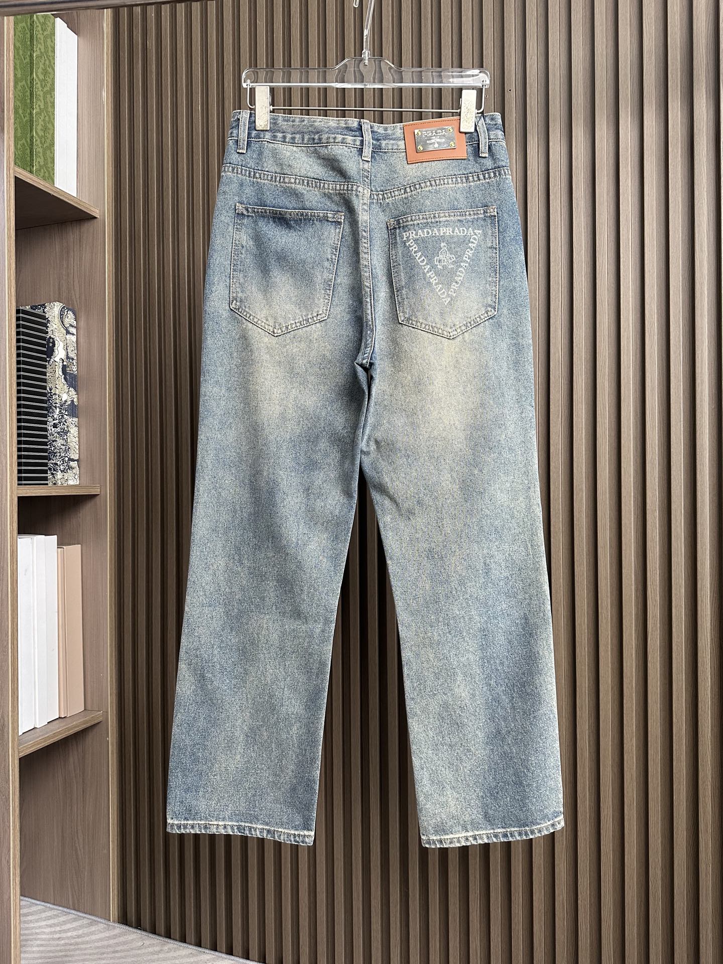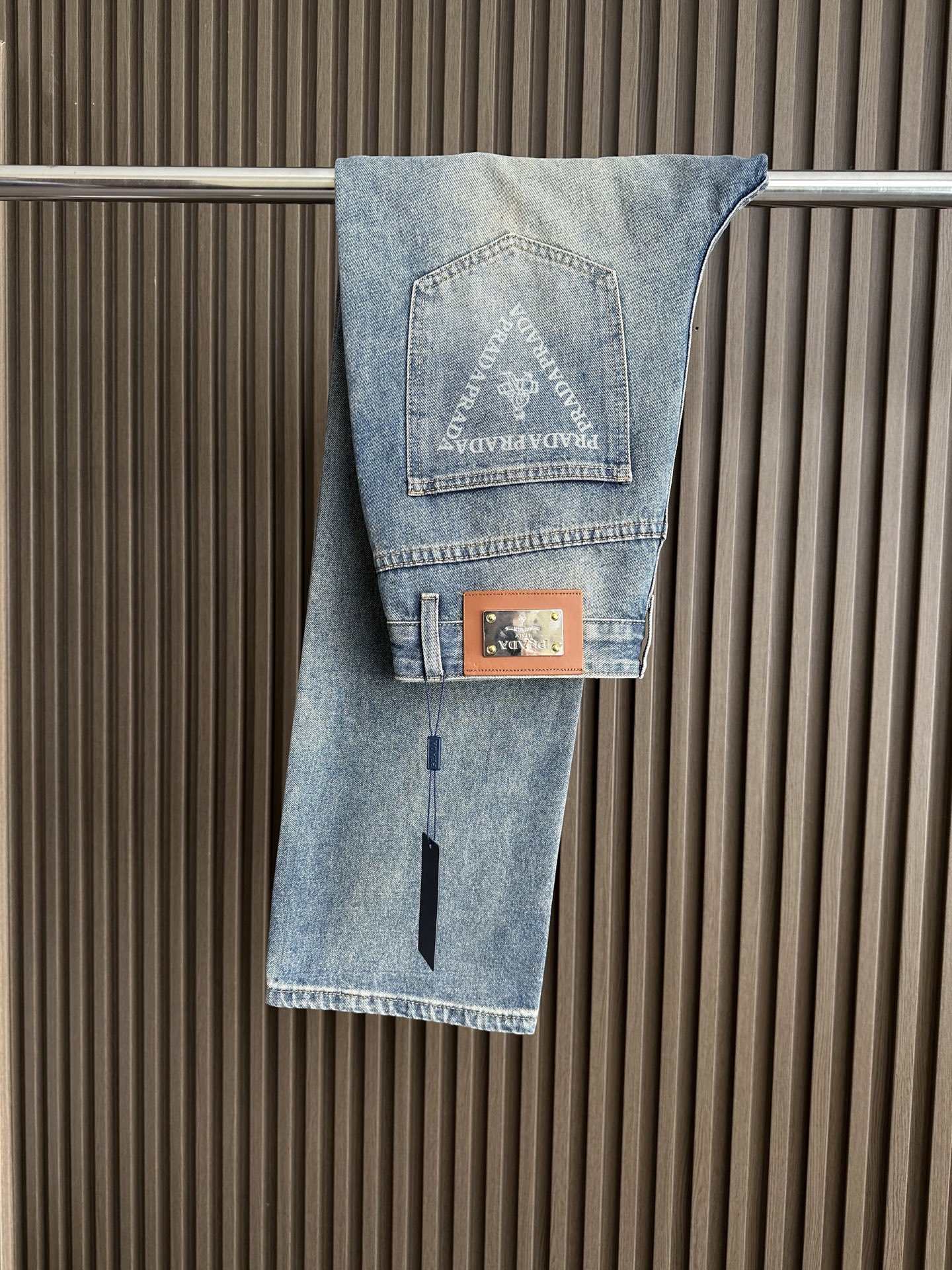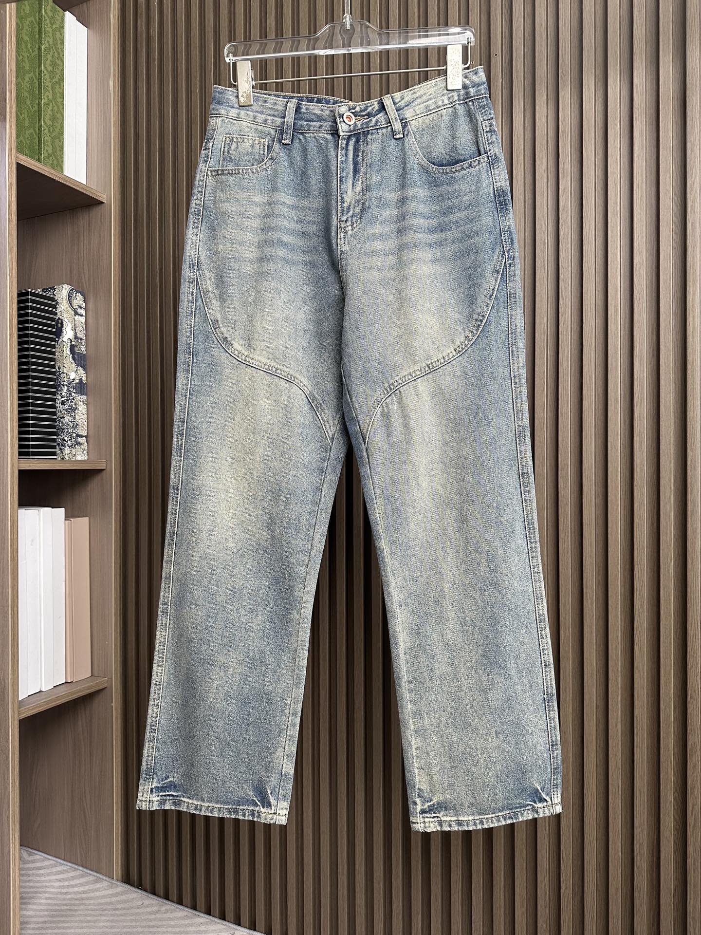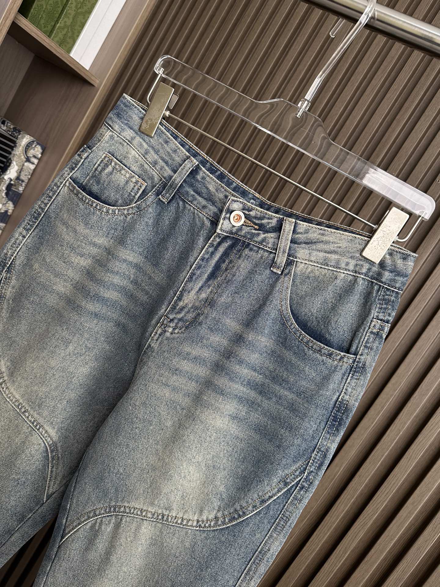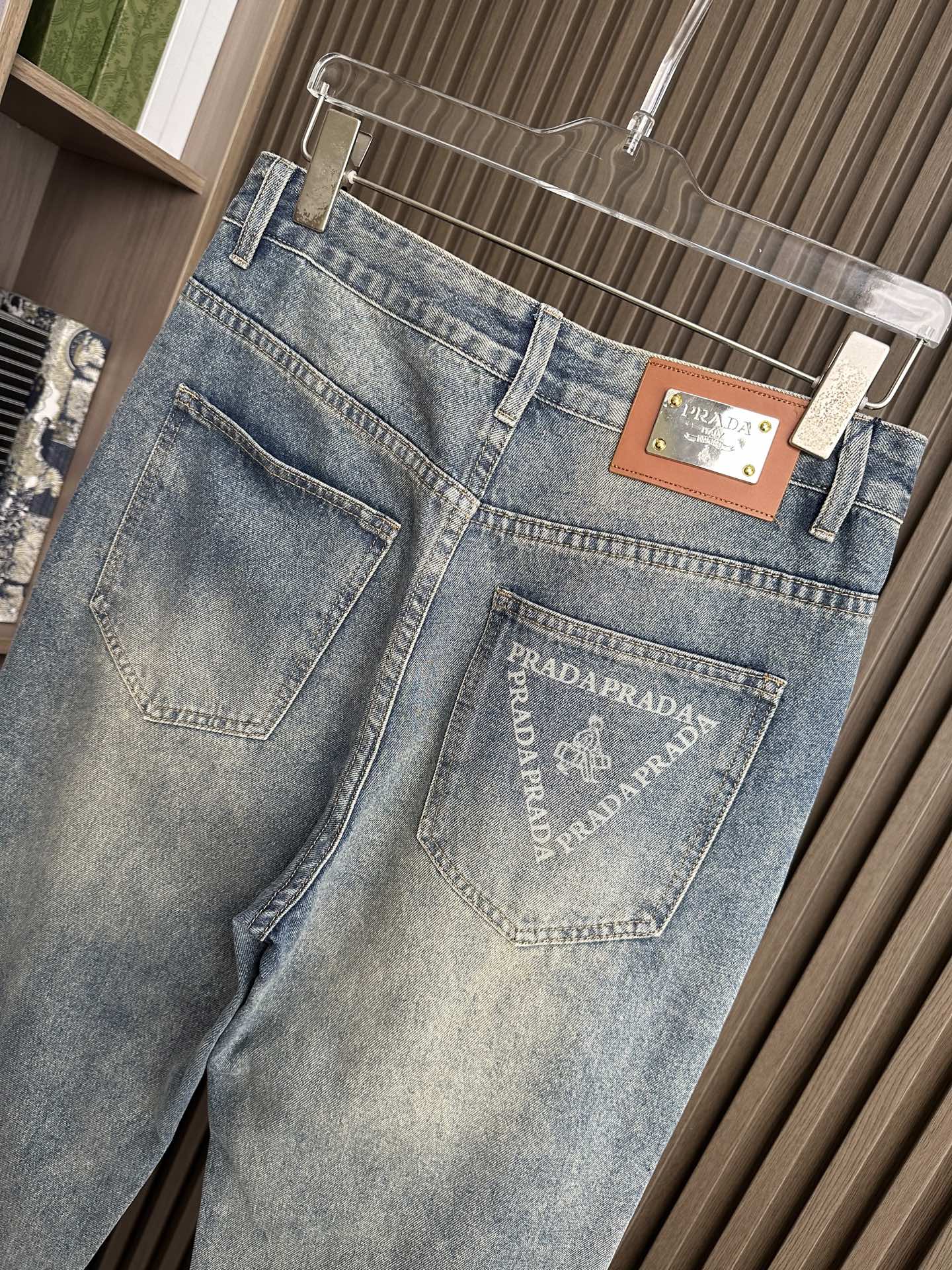 Prada wide-leg jeans, 25SS spring-summer men's fashion. Imported denim, 13oz Japanese fabric, eco-friendly enzyme wash. Retro color, soft yet structured, slightly stretchy. Perfect fit, versatile styling. Sizes: 29-38 (excl. 35, 37).