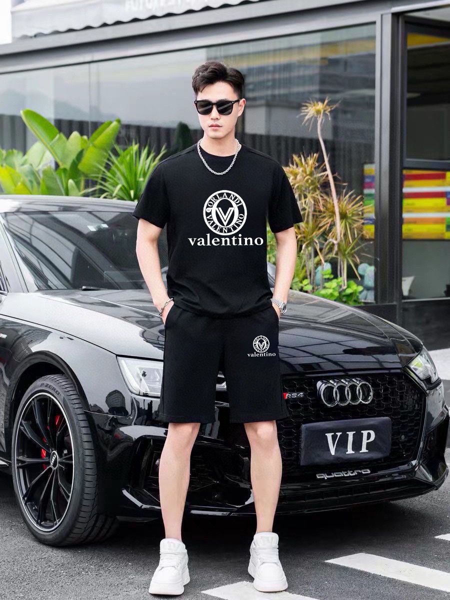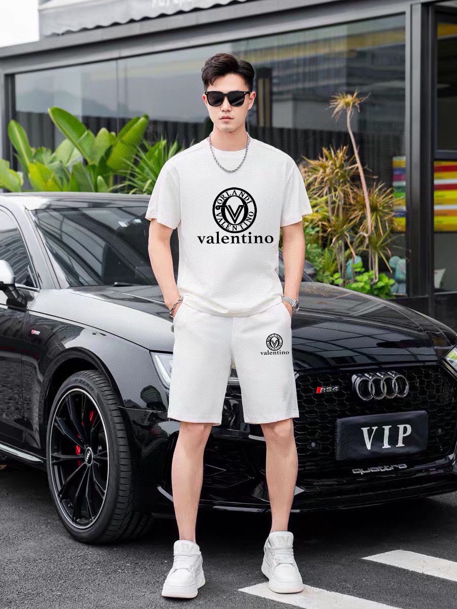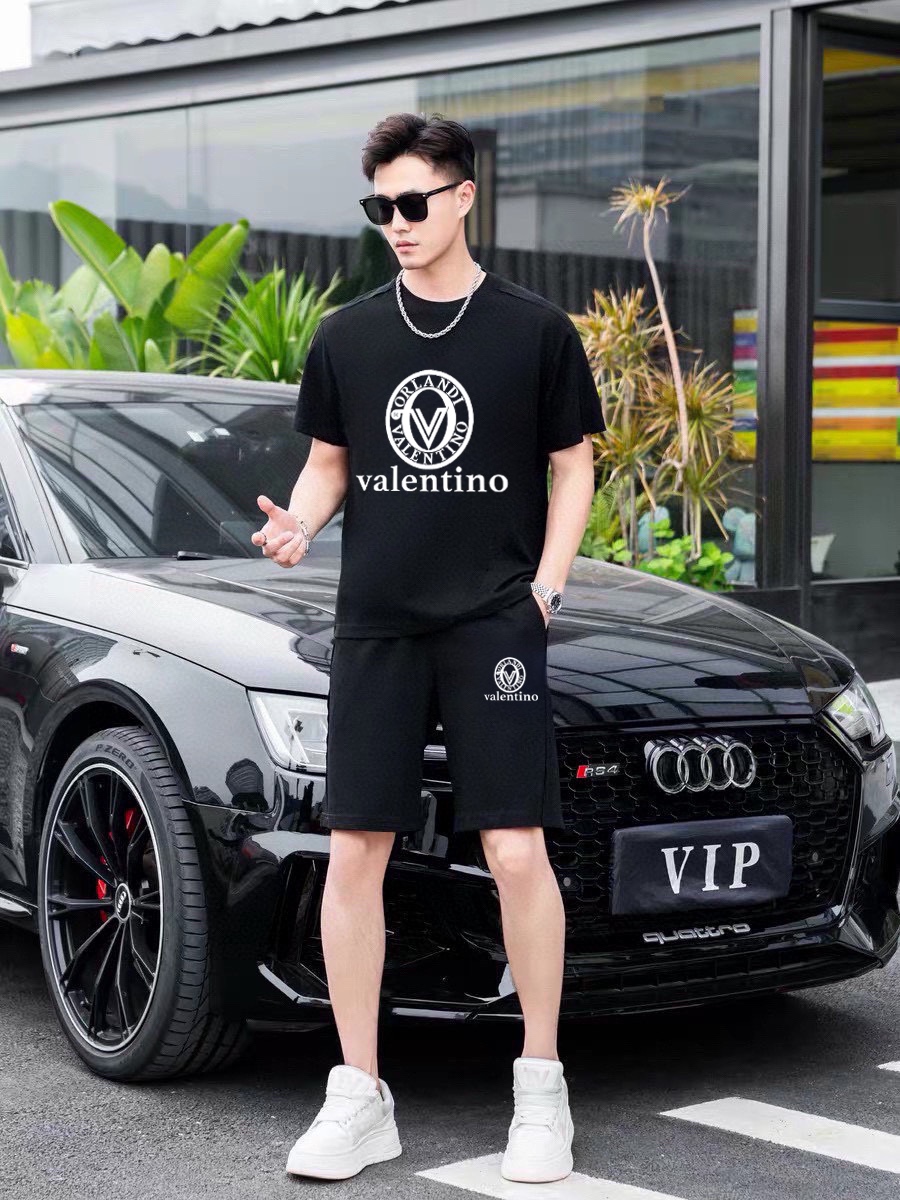 Brand [VALENTINO] 2025 new men's short-sleeve and shorts set! Officially synchronized with the official website for sales! High-end version available in the market! Soft and delicate texture! Ensures comfortable wearing! Excellent three-dimensional cutting style! Sizes: M-5XL (Please provide height and weight when placing an order)