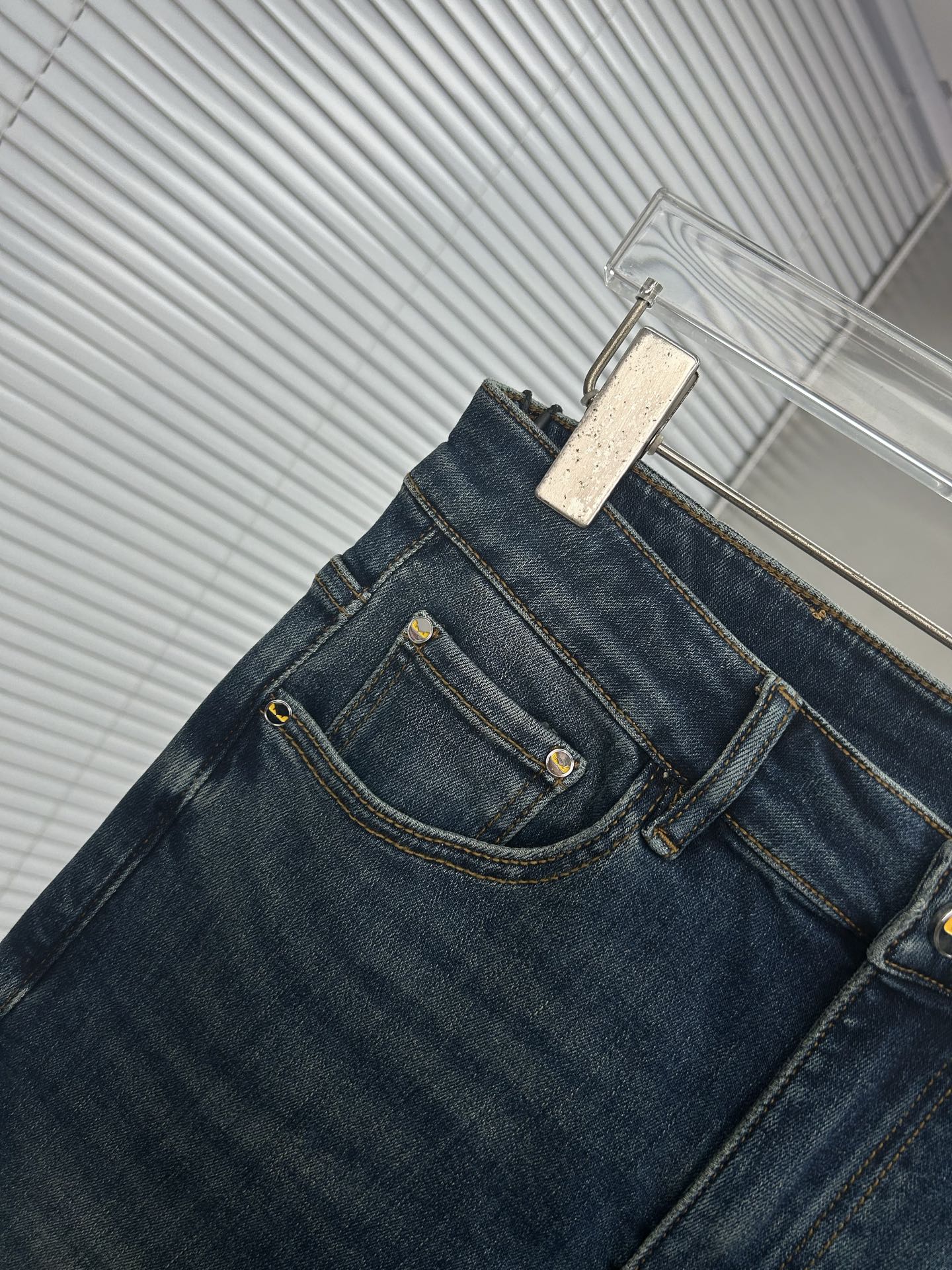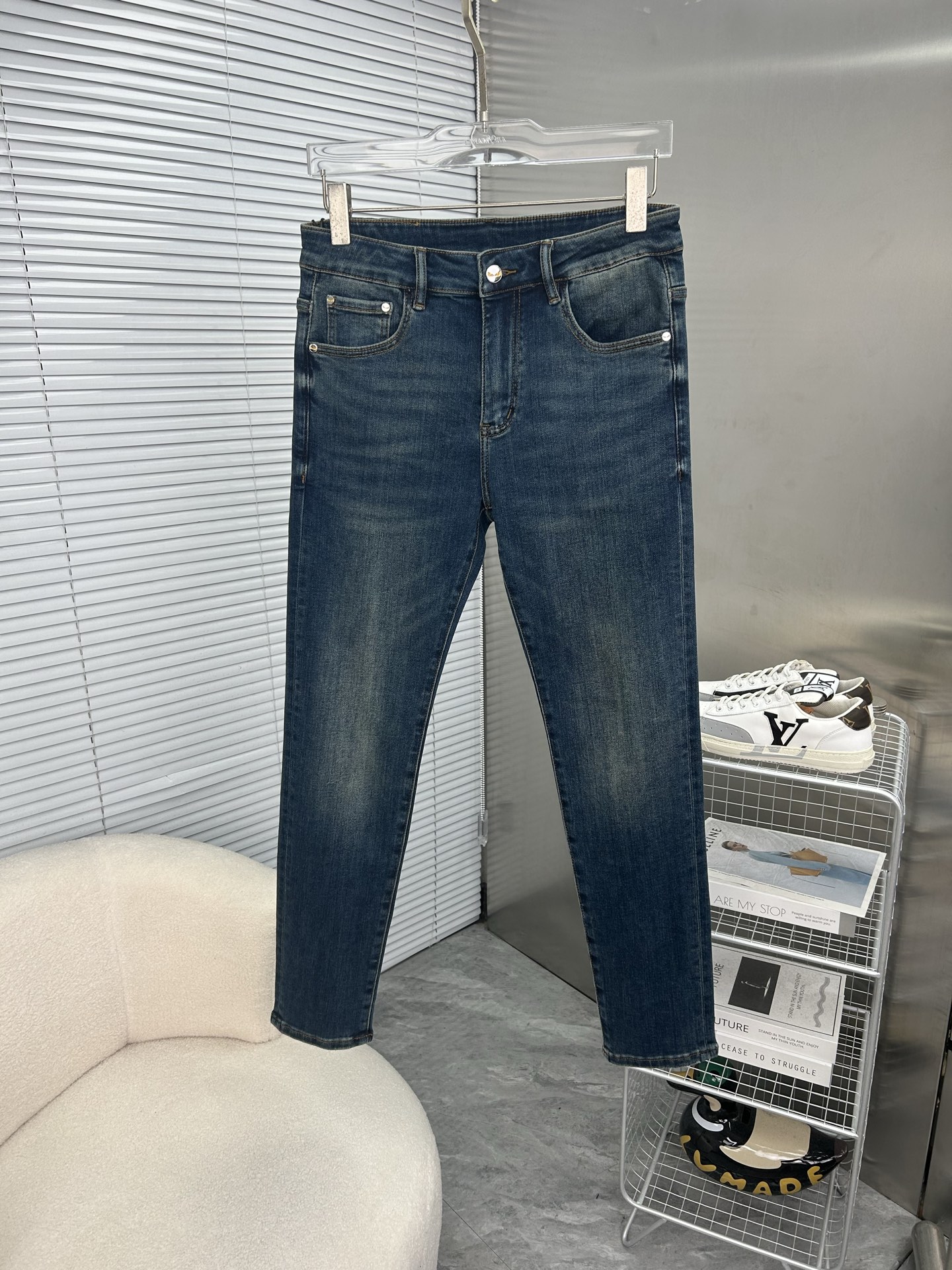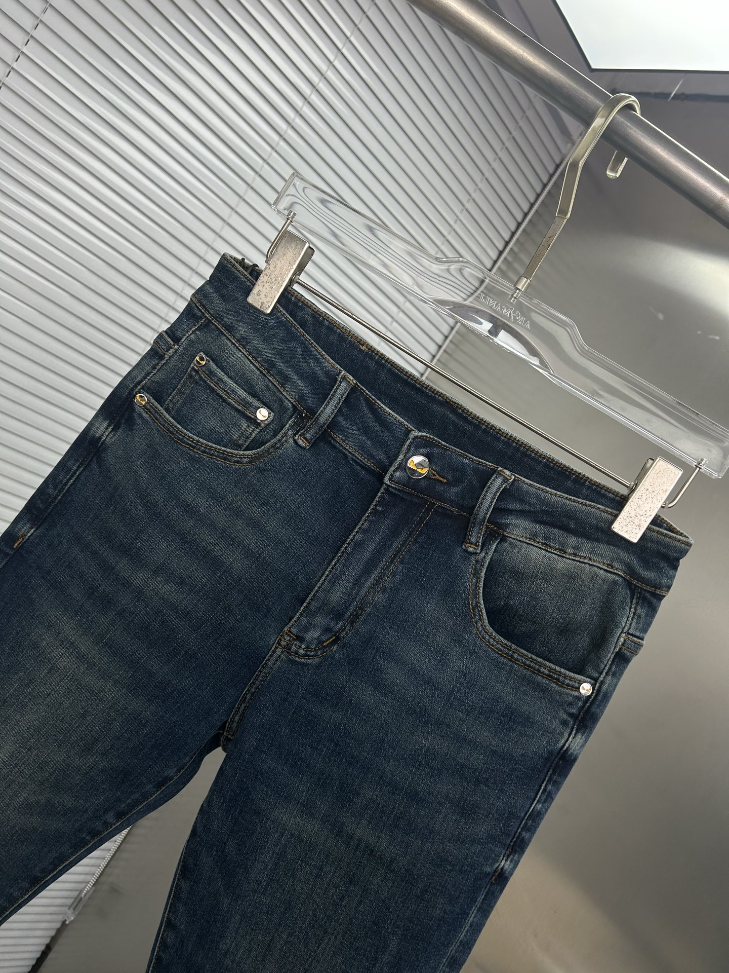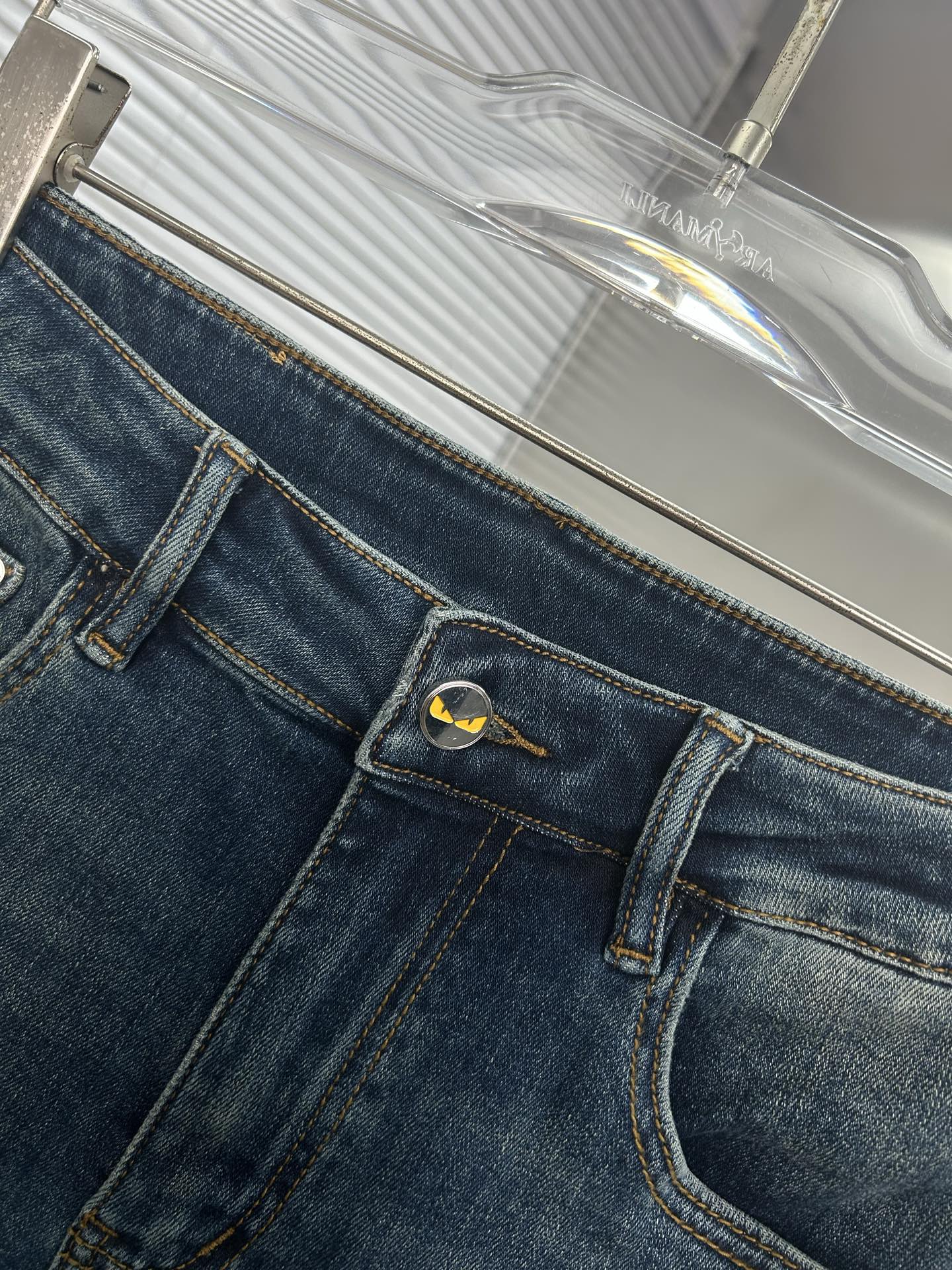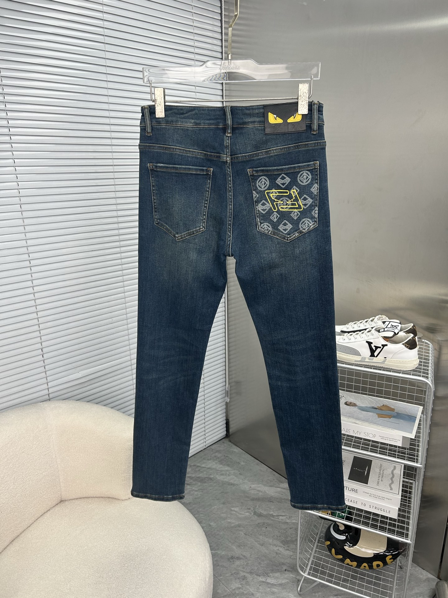 FENDI men's autumn winter jeans. Imported denim, eco-wash, soft, durable. Slim straight fit, stretchy. Sizes 28-38. Next-day shipping.