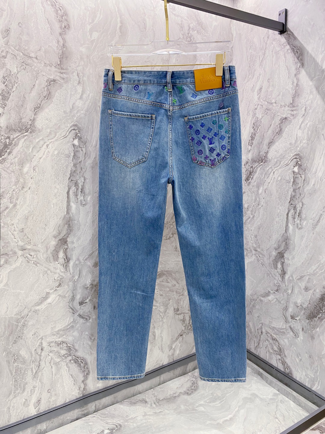 Louis Vuitton 2025 new men's jeans. Stretchy denim, exclusive release, elegant design with fine craftsmanship. Sizes 28-38, ships next day.