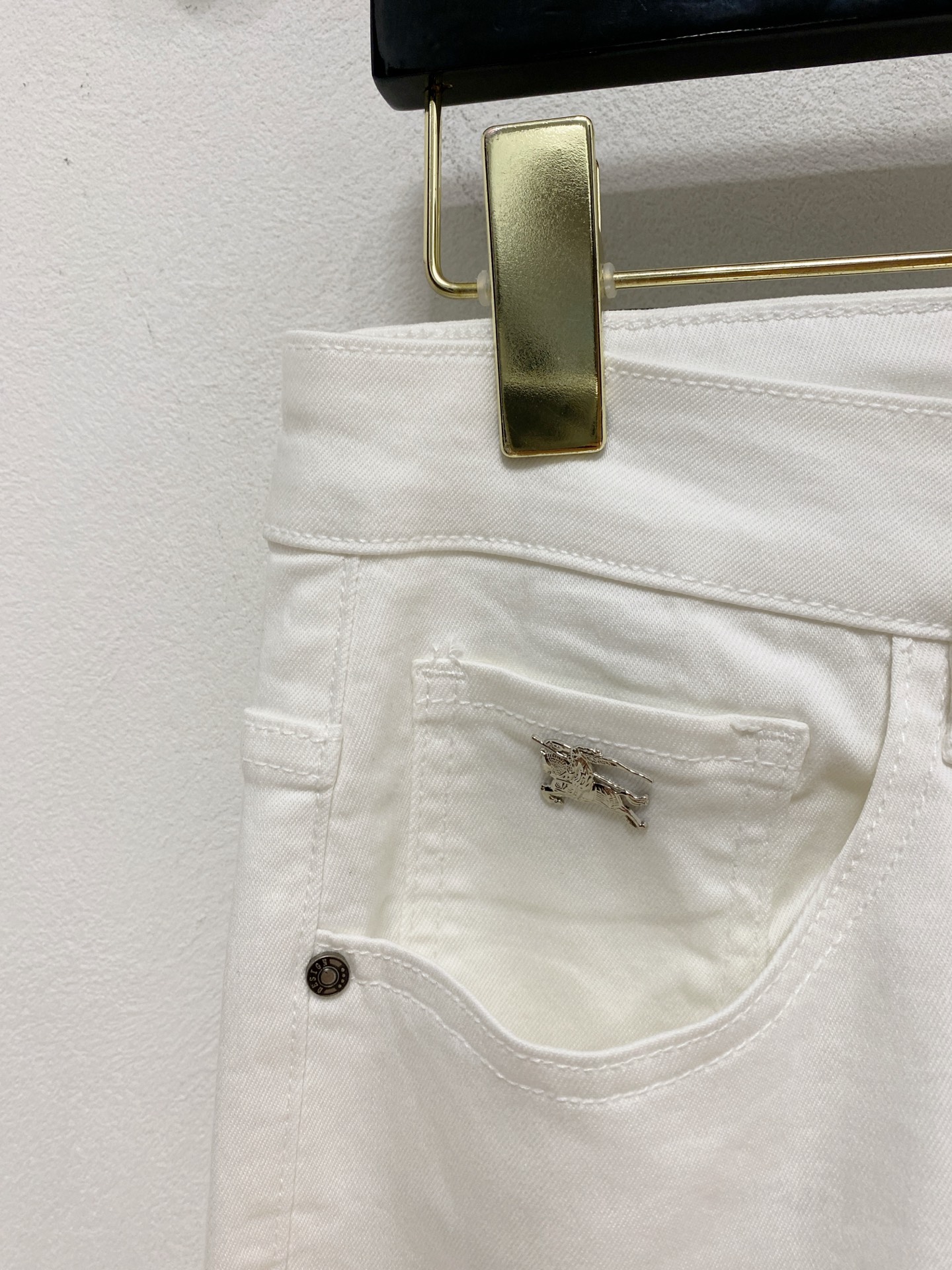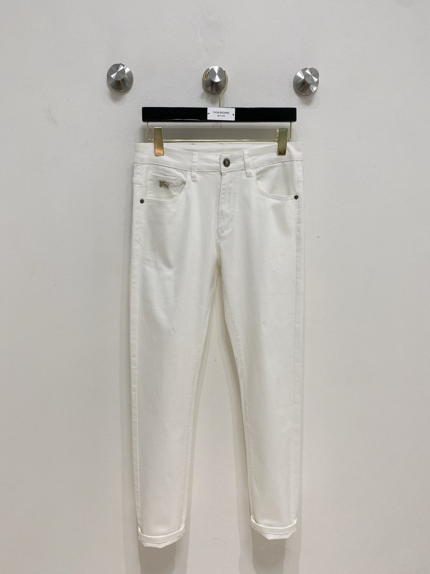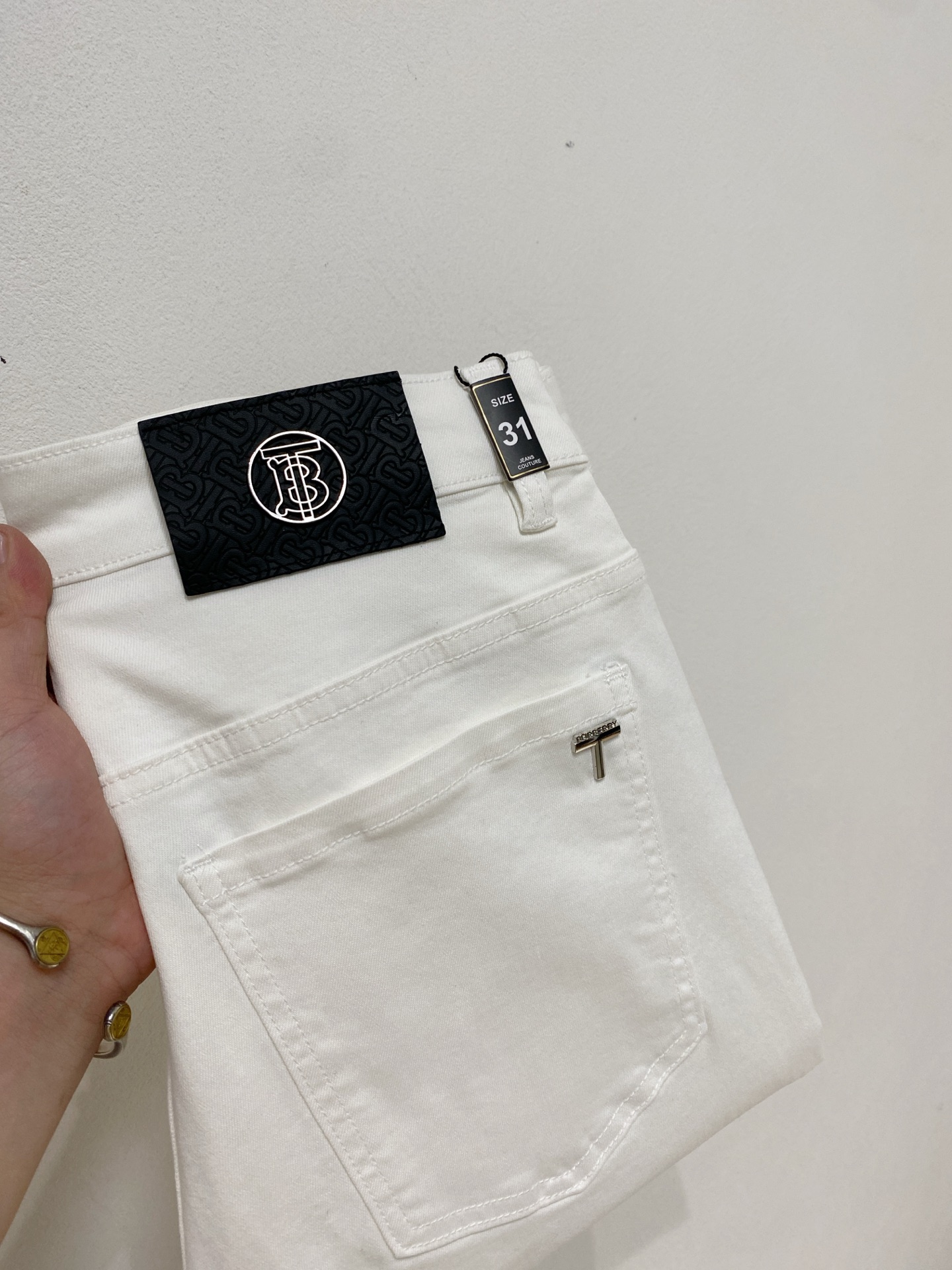 Burberry 2025 Autumn Winter Men's Washed Slim Straight Jeans. Italian denim, perfect fit, versatile style. Logo leather waist tag. Sizes 29-38.