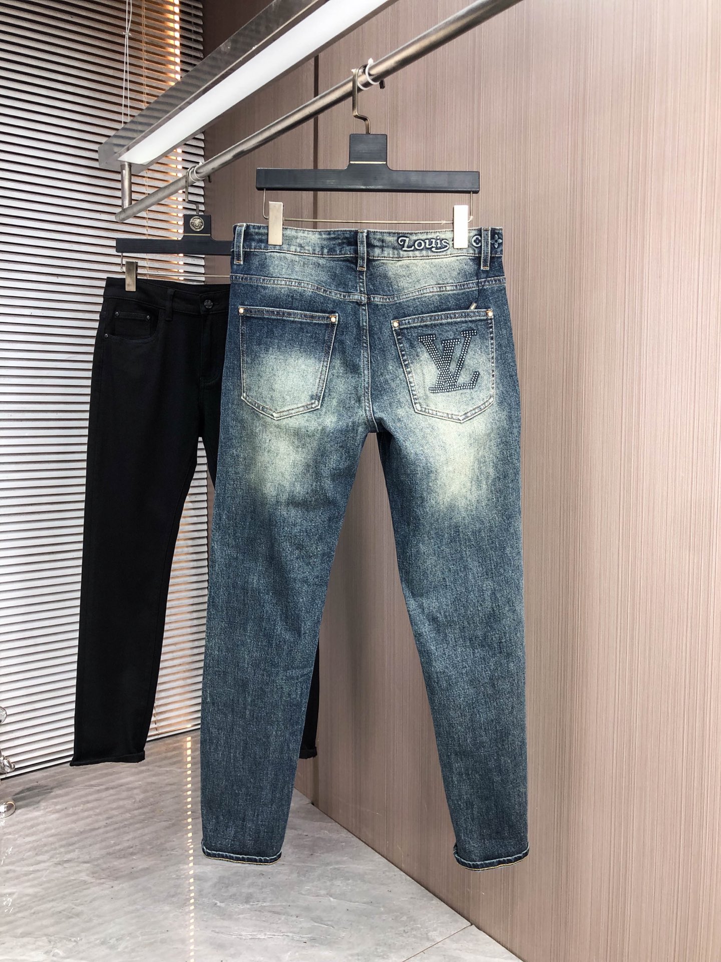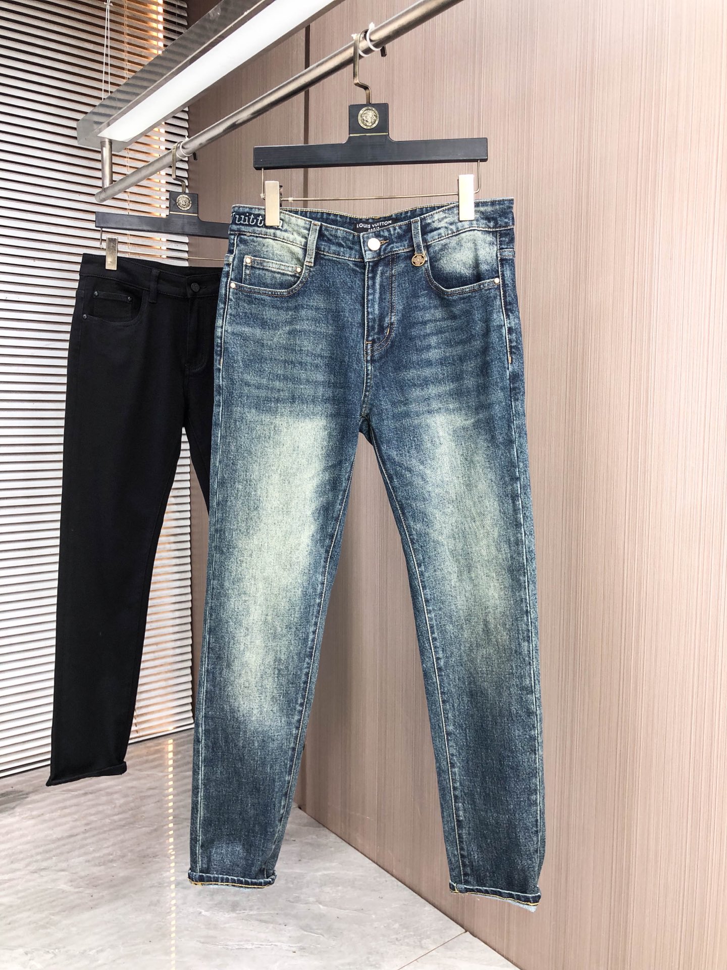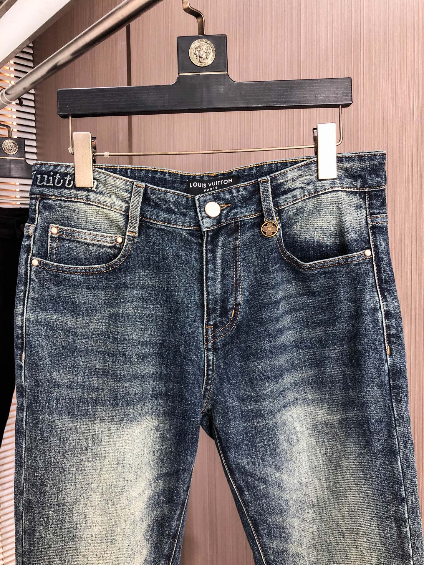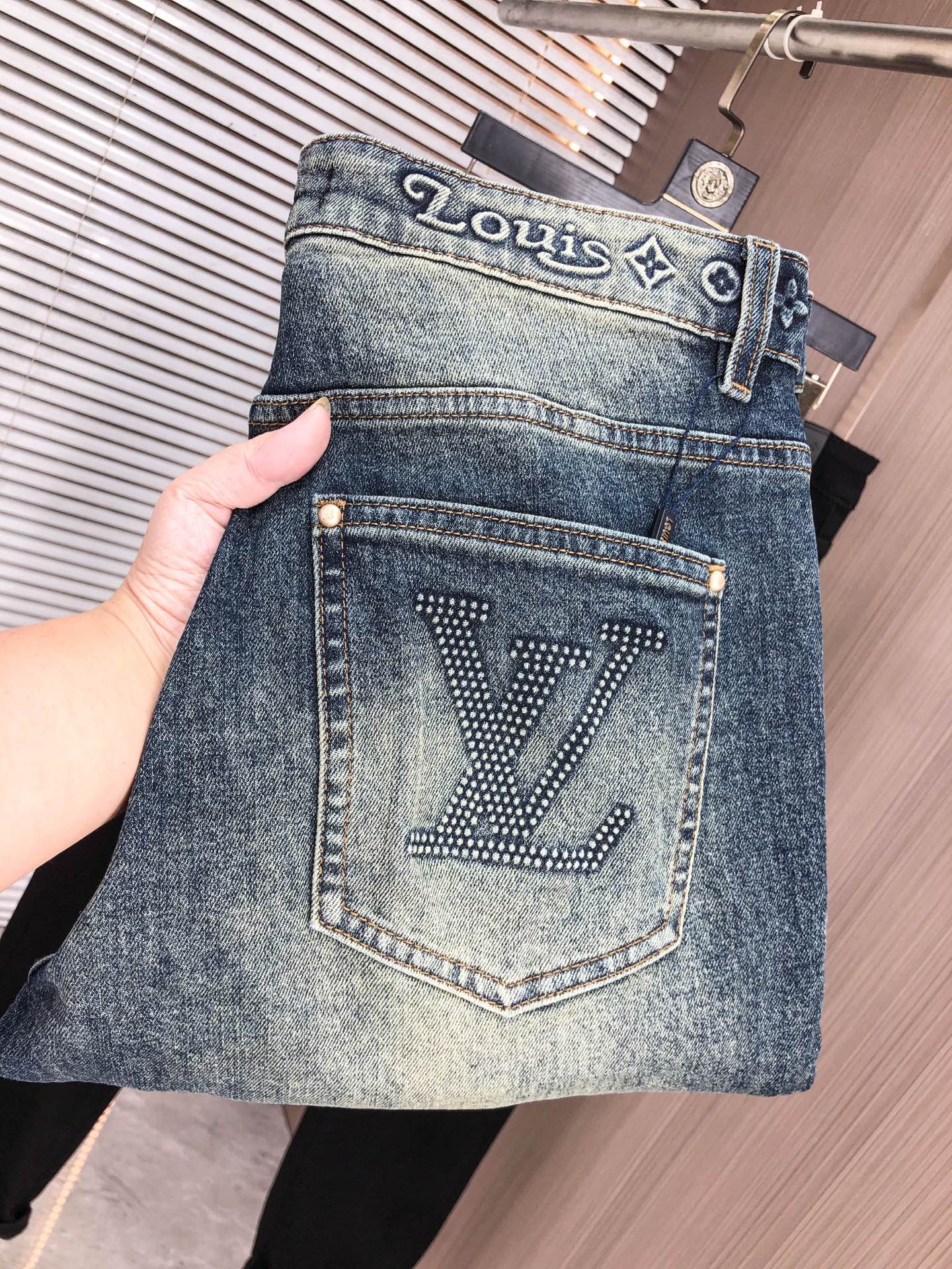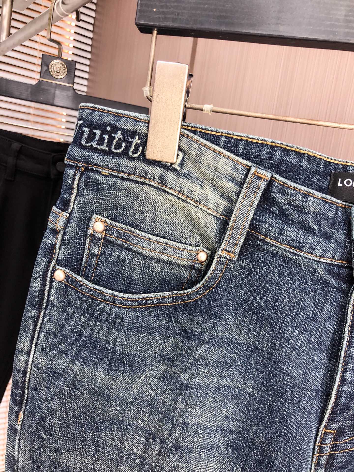 LV Thin Denim Jeans. 2025 latest style. 98% cotton, 2% spandex. Solid, slightly stretchy, comfortable. Simple design, hidden zipper, embossed pockets. Excellent fit.