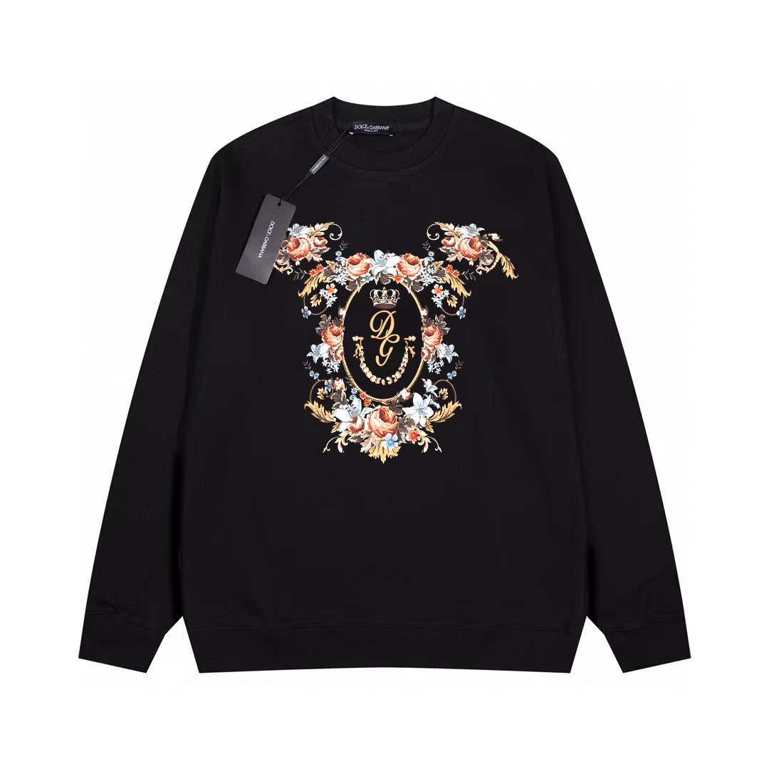 Dolce & Gabbana D&G printed round neck sweatshirt. The most anticipated sweatshirt for the 2024 spring and autumn season. High-end custom premium series, belonging to the brand's high-end main line. Patented top-quality cotton, interpreting conventional styles with innovation. The fabric configuration is even more颠覆常规, with noteworthy details.