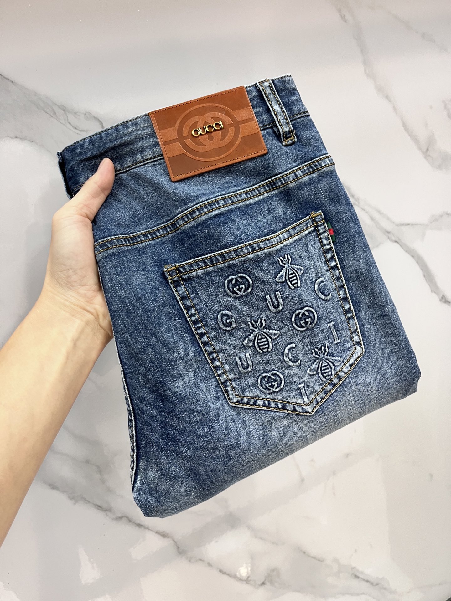 Gucci 2025SS early spring lightweight jeans. Imported elastic fabric, comfortable and breathable. High-quality hardware, excellent fit. Sizes 29-38.