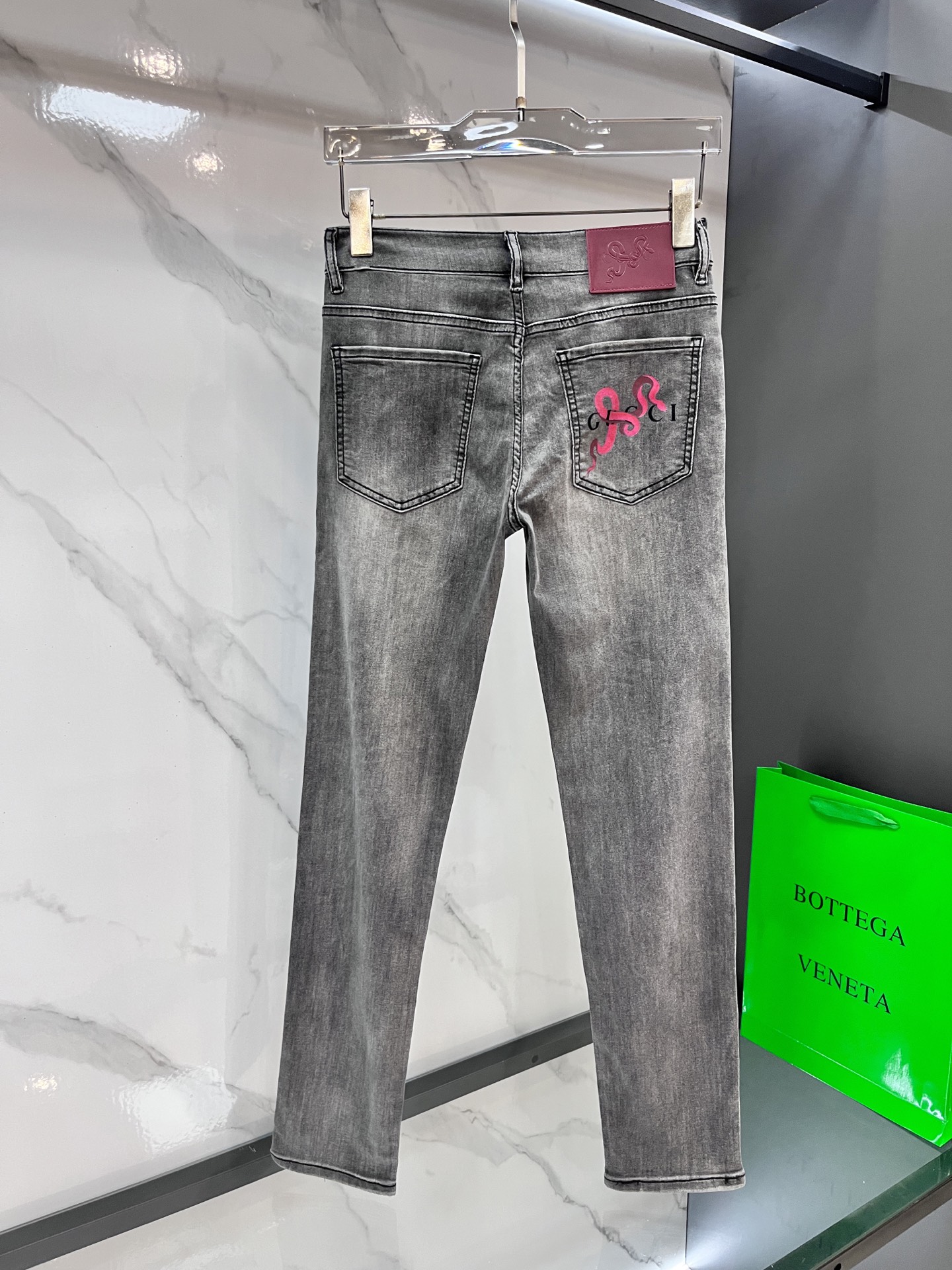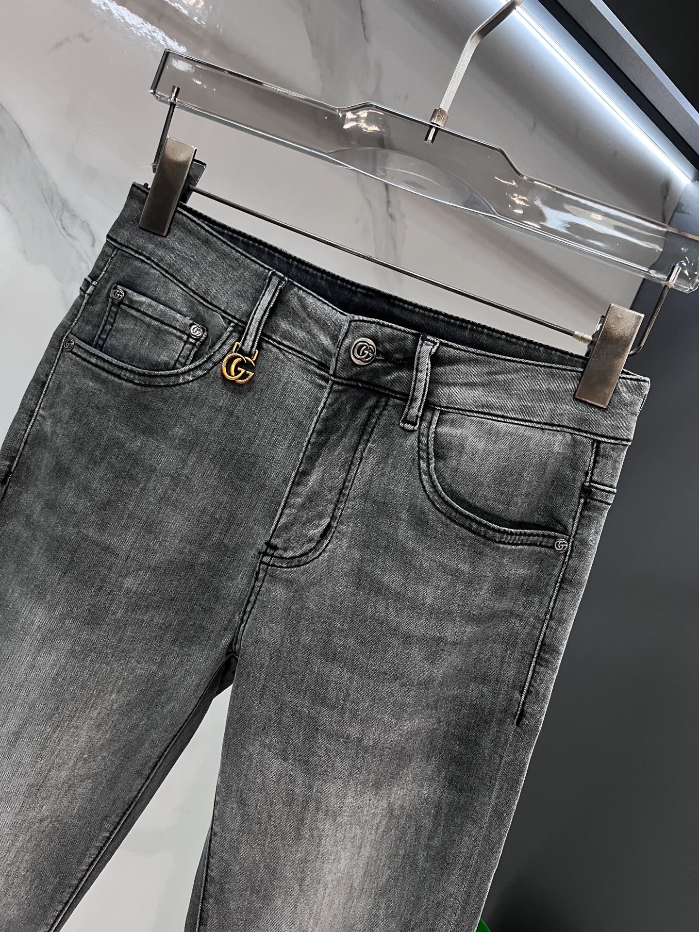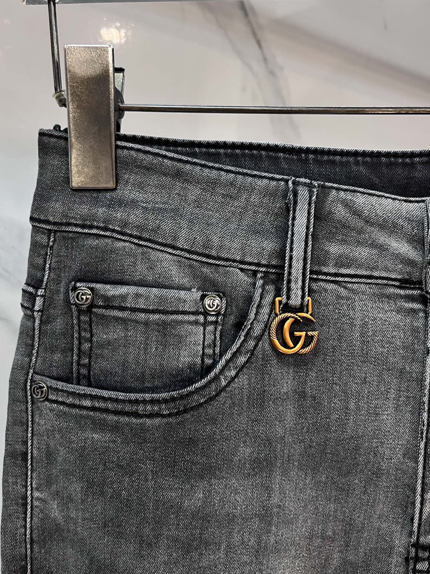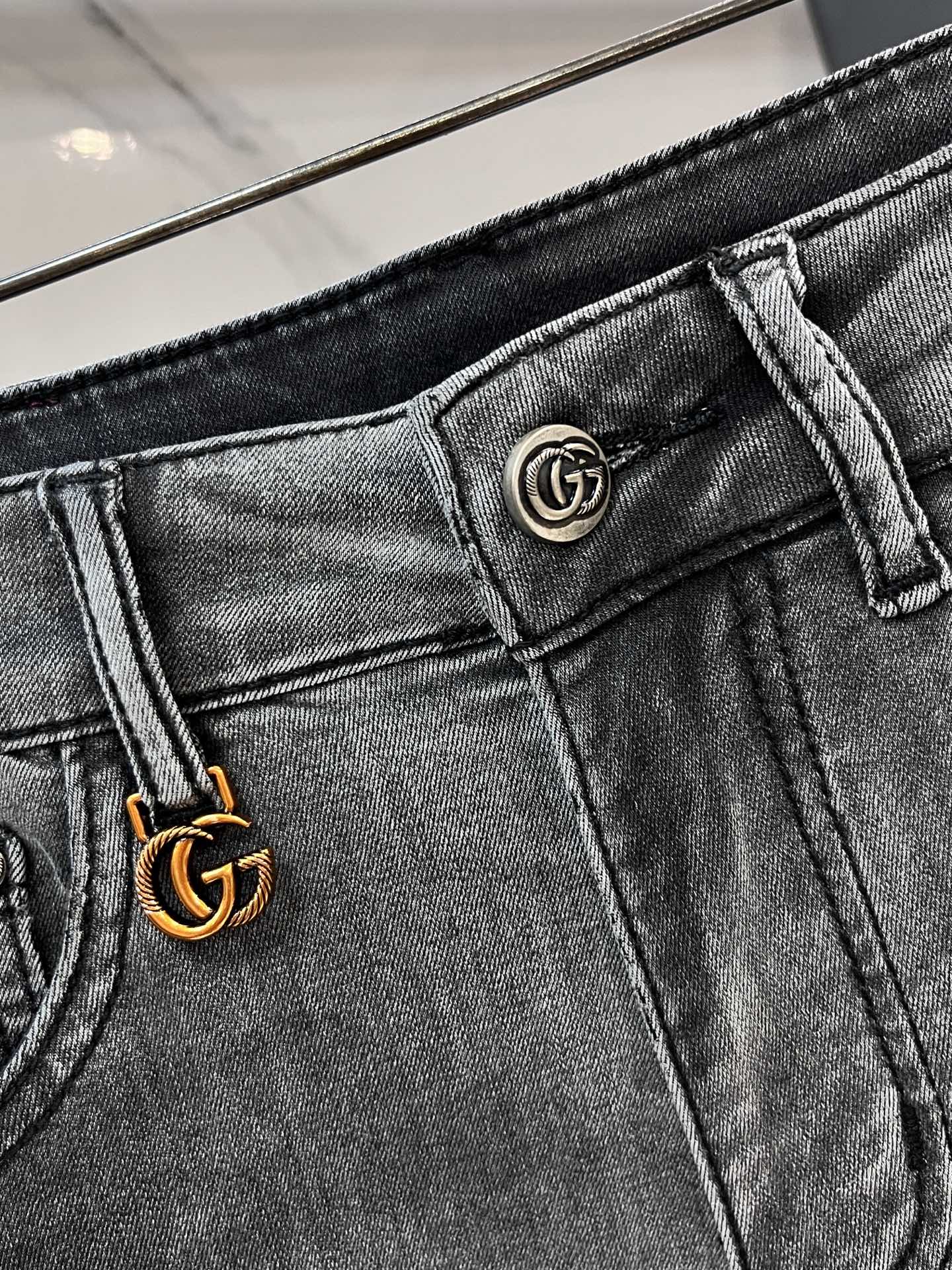 Gucci 2025SS early spring lightweight distressed jeans. Imported stretch denim, comfortable & breathable. Metal hardware, excellent fit. Sizes 28-38.