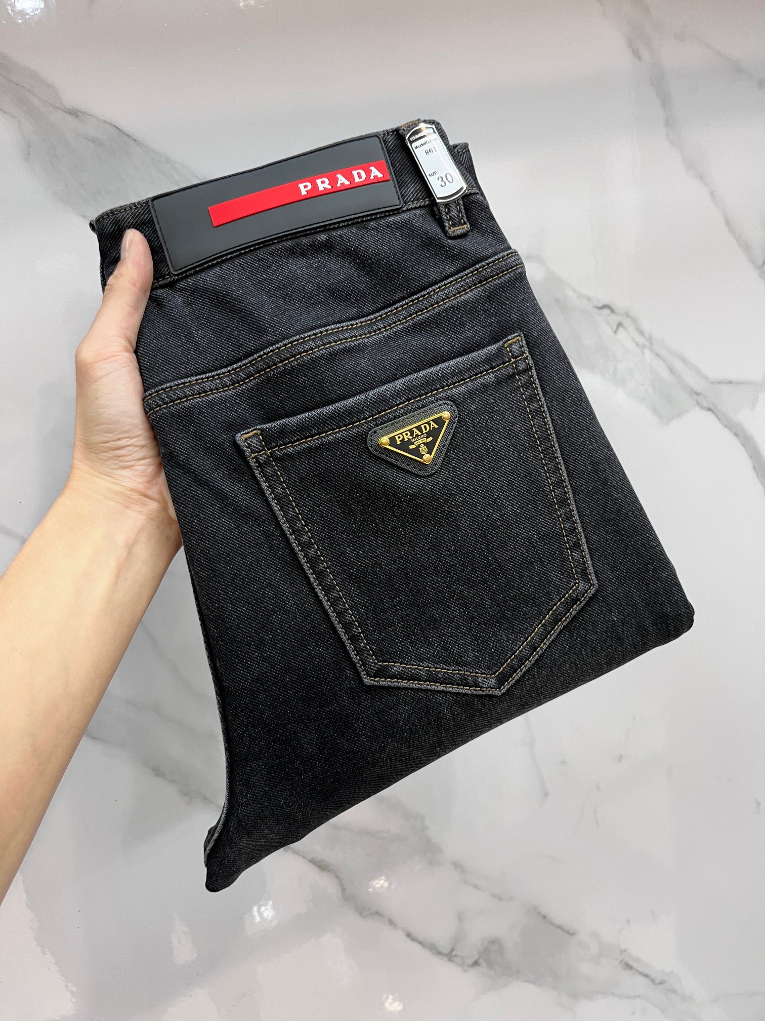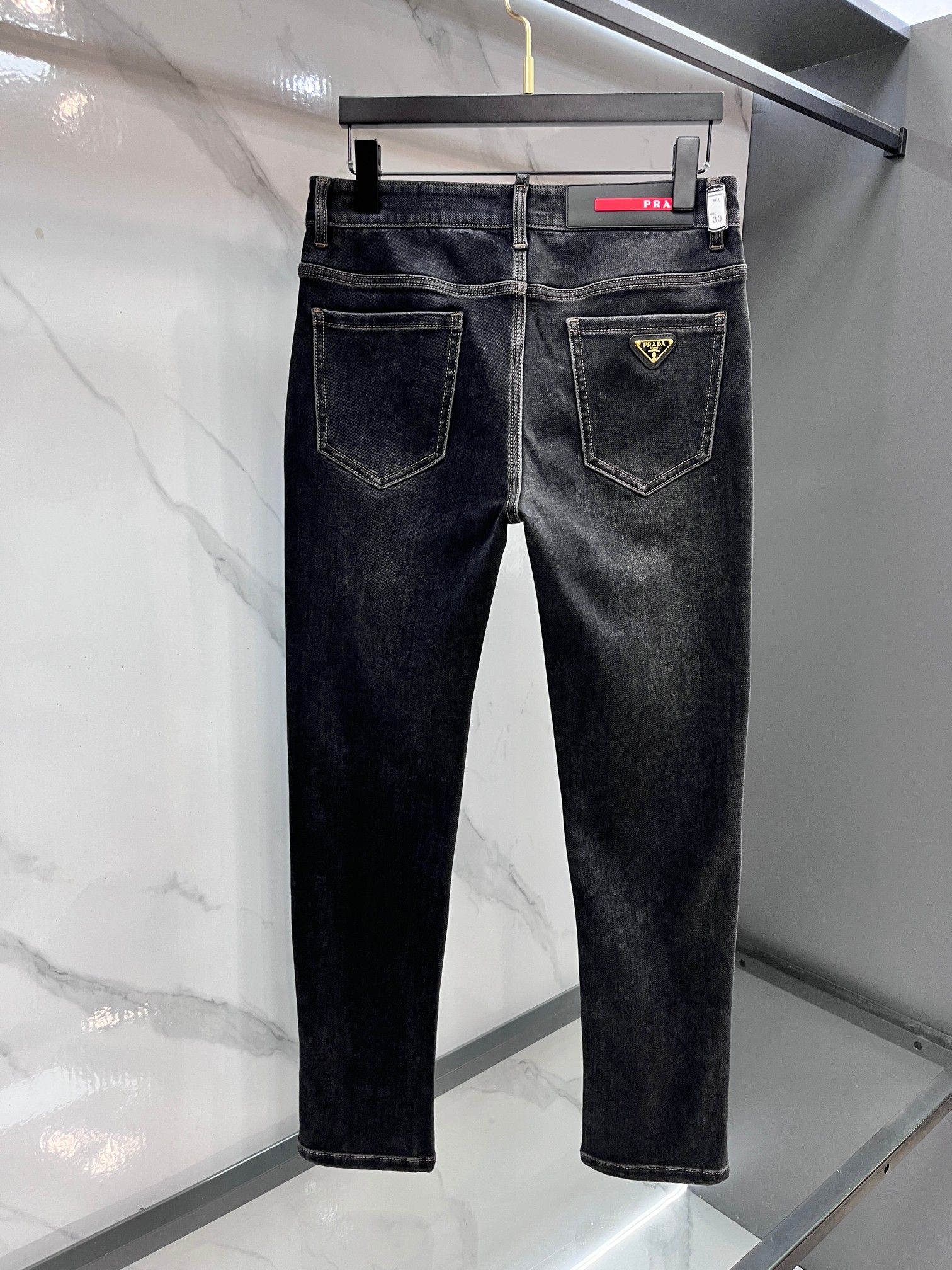 Prada high-end custom 2025 early autumn jeans. Latest style, counter release. Original quality, imported elastic denim. Fine craftsmanship, excellent fit. Sizes 29-38.