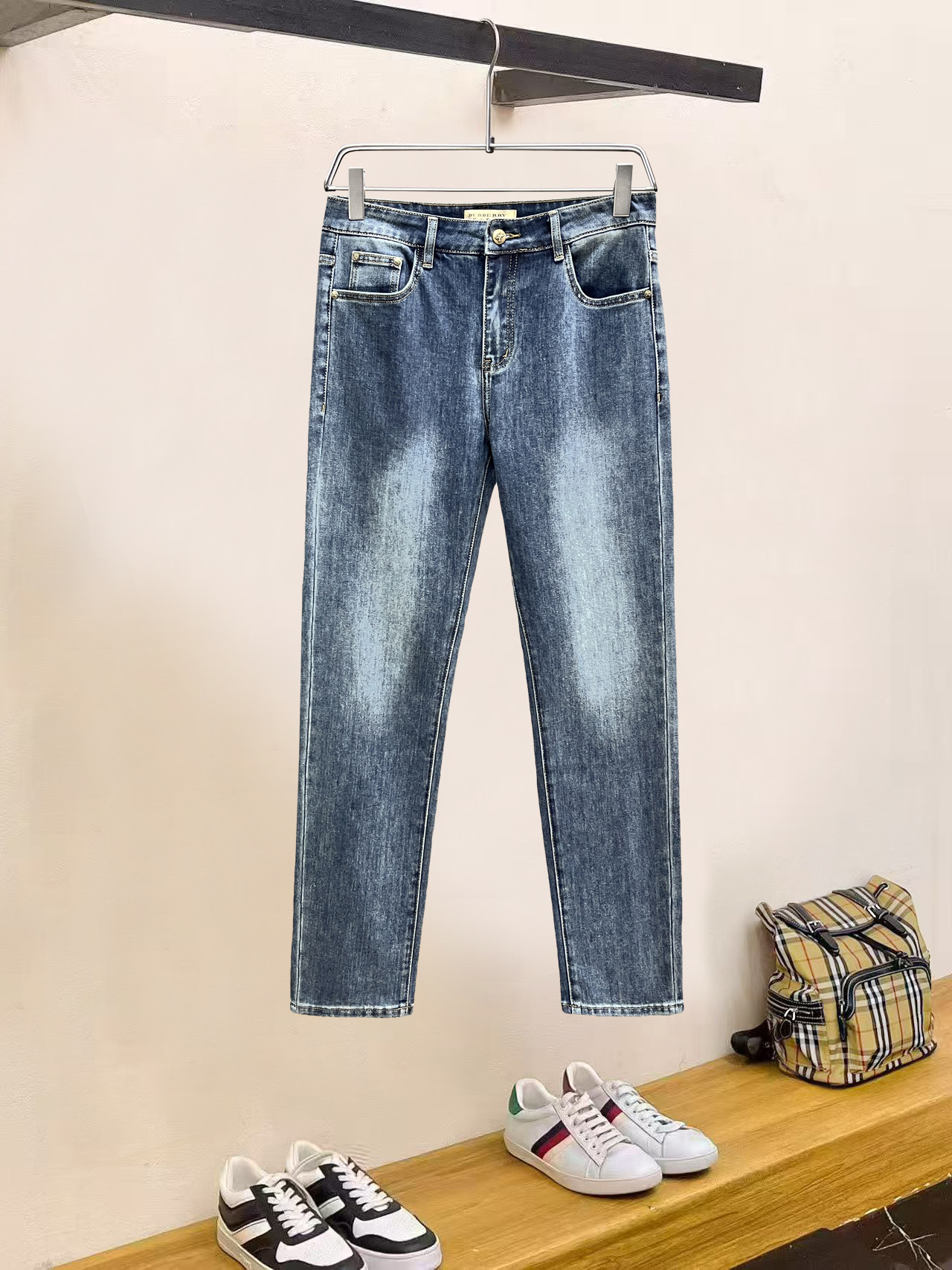 Burberry high-quality 2025 new jeans. Imported cotton, comfortable fit, stylish design. Sizes 29-38. Versatile essential.