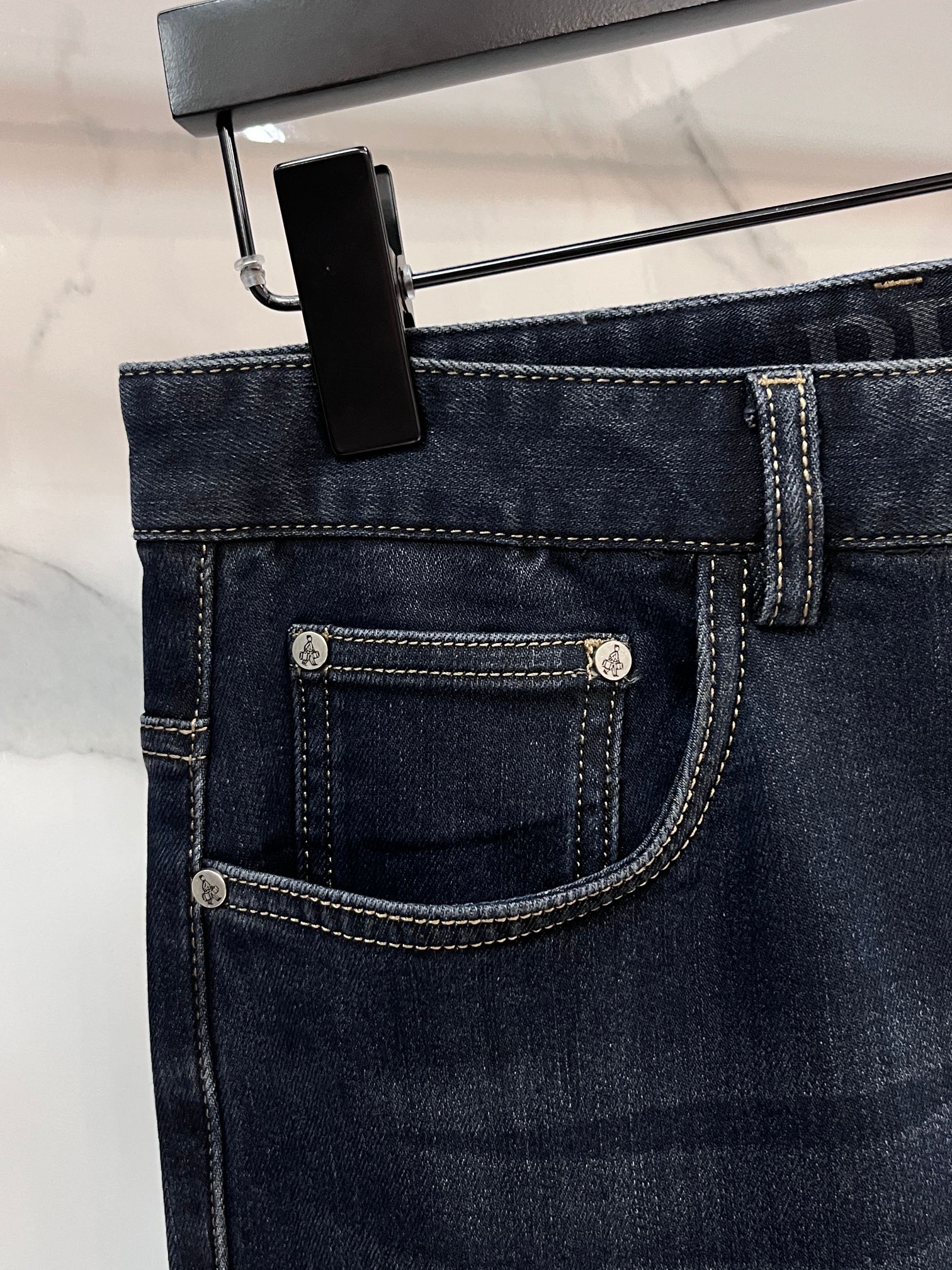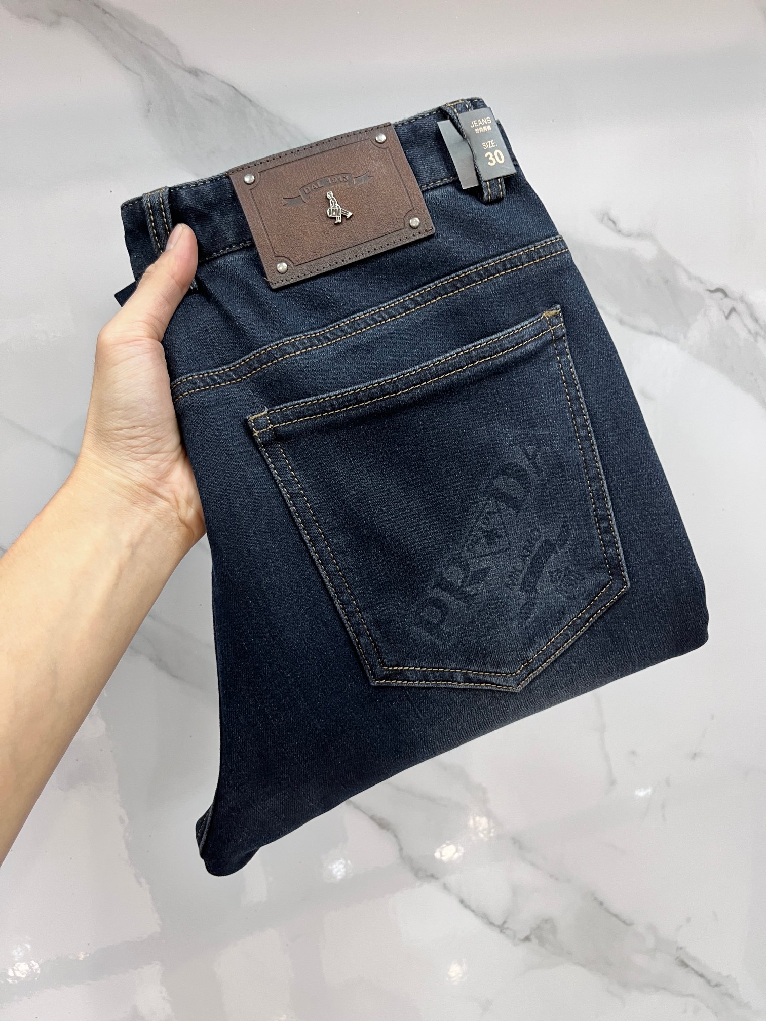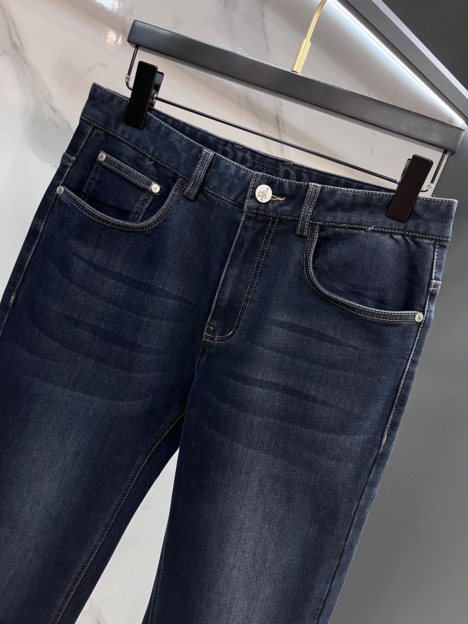 LV Thin Denim Jeans. 2025 latest style. 98% cotton, 2% spandex. Solid, slightly stretchy, comfortable. Simple design, hidden zipper, embossed pockets. Excellent fit.