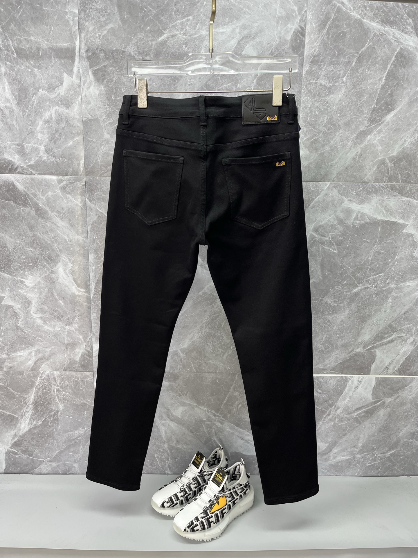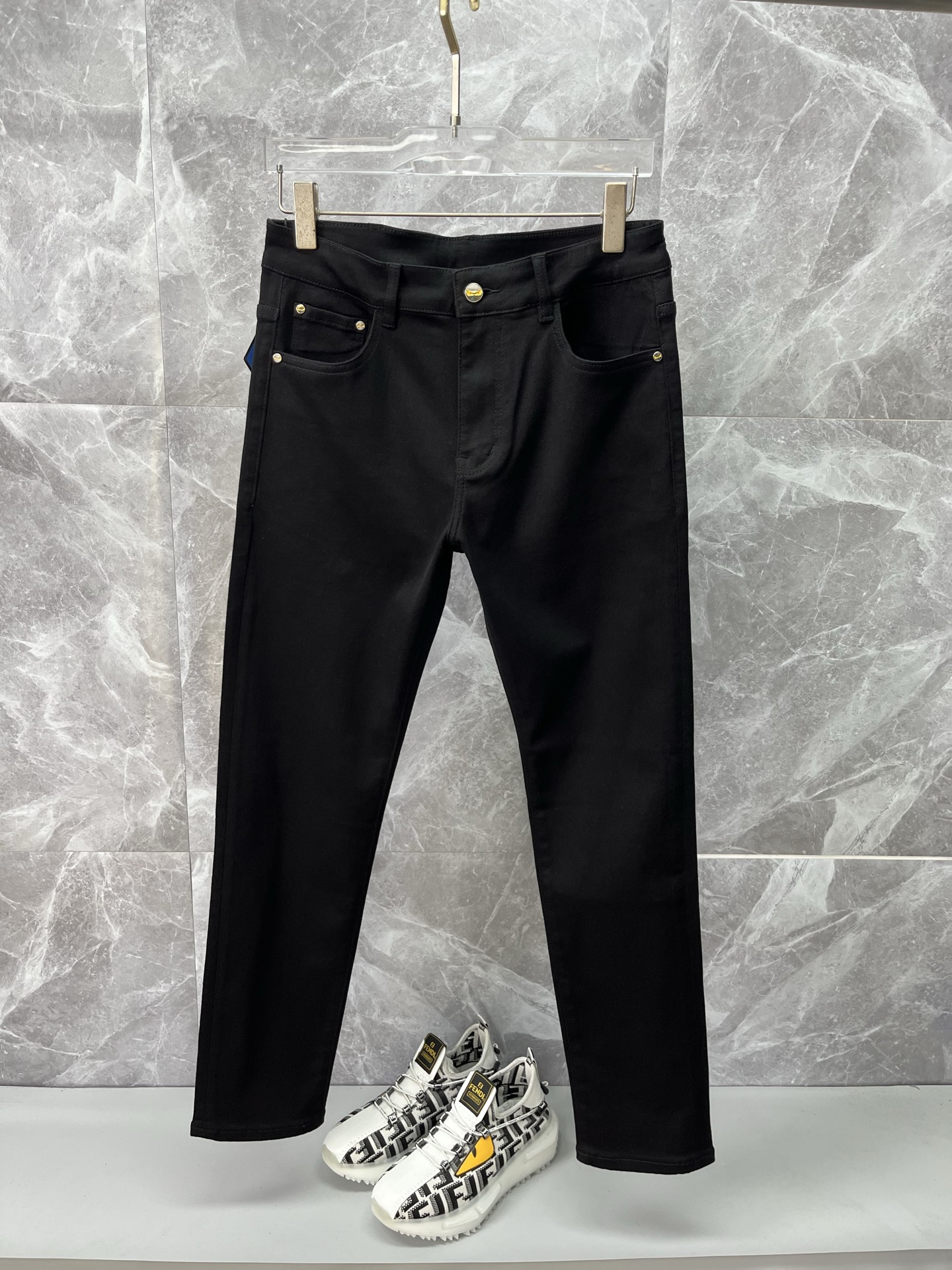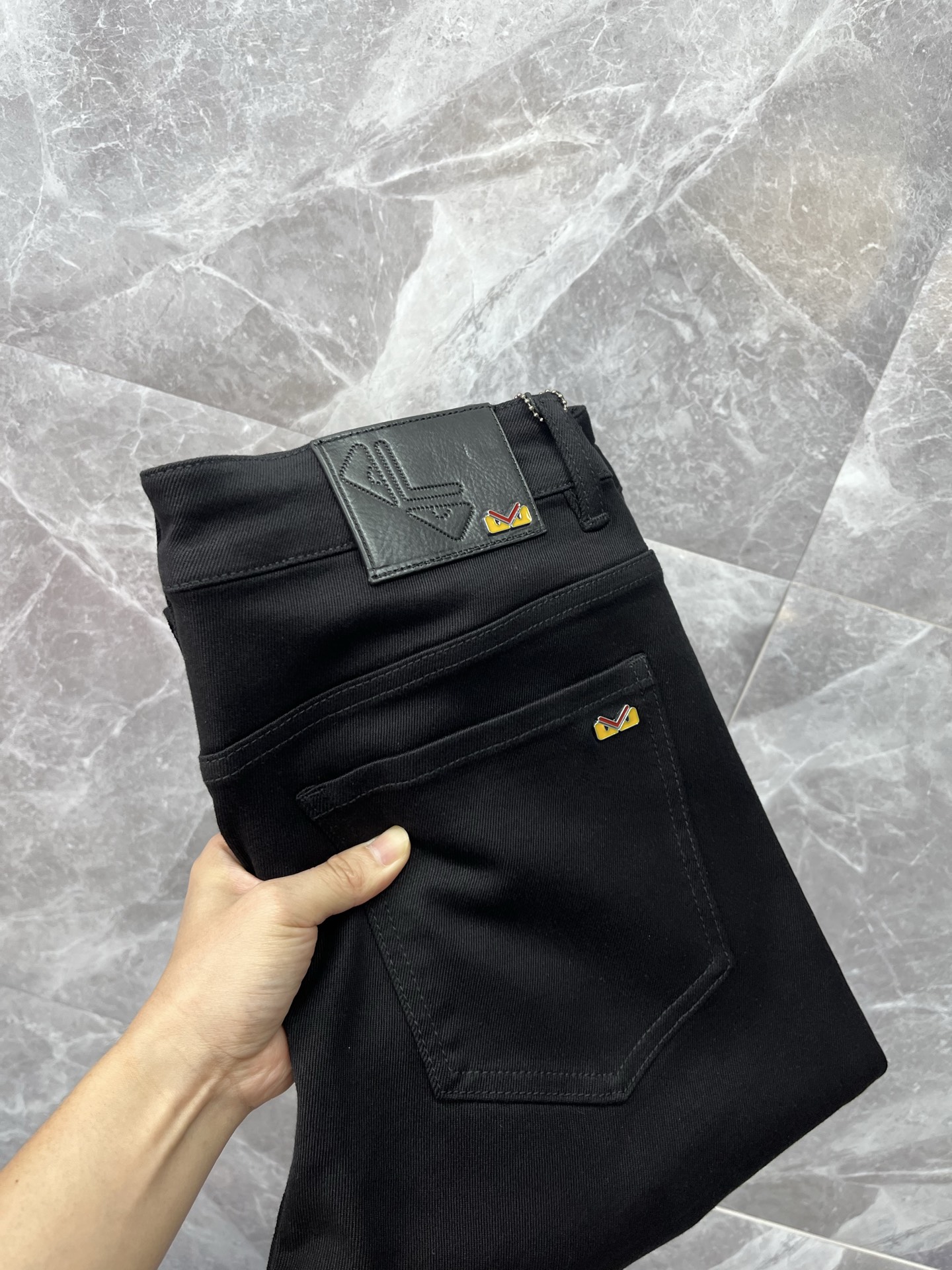 FENDI men's autumn-winter jeans. Imported denim, eco-wash, soft, durable. Slim straight cut, stretchy. Sizes 28-38. Next-day shipping.