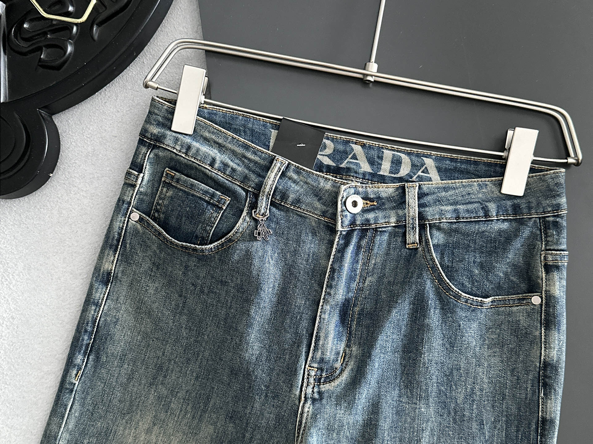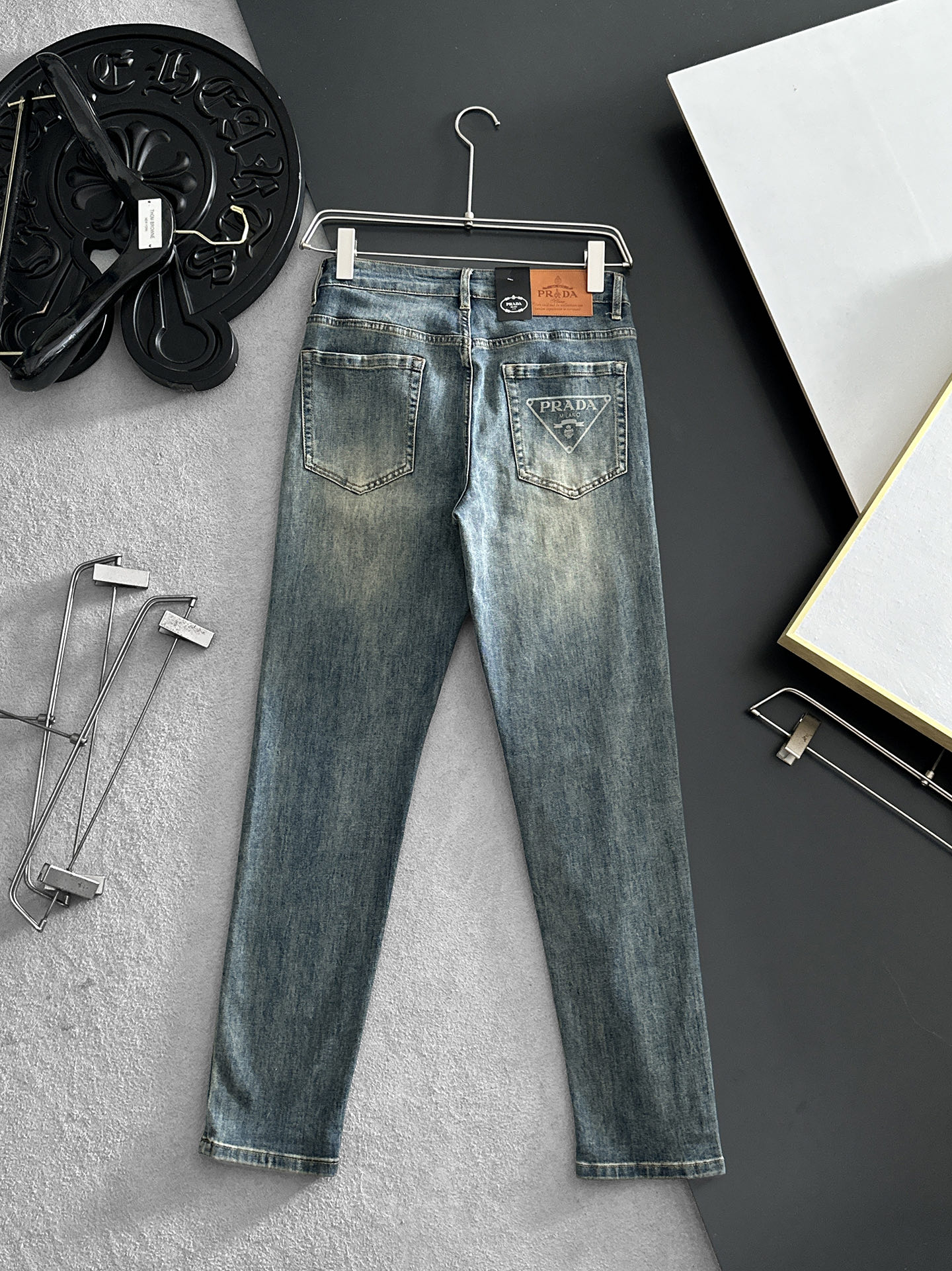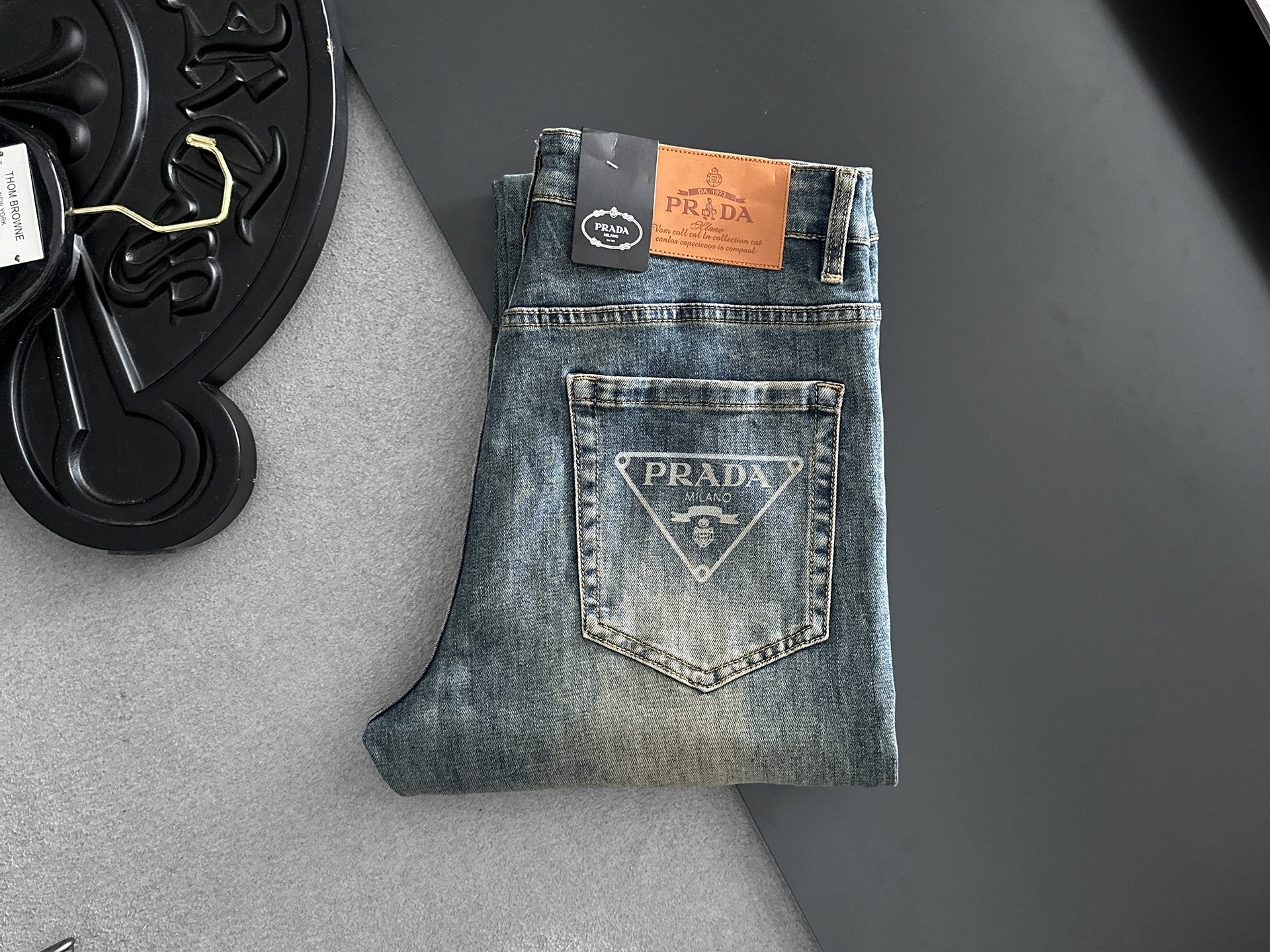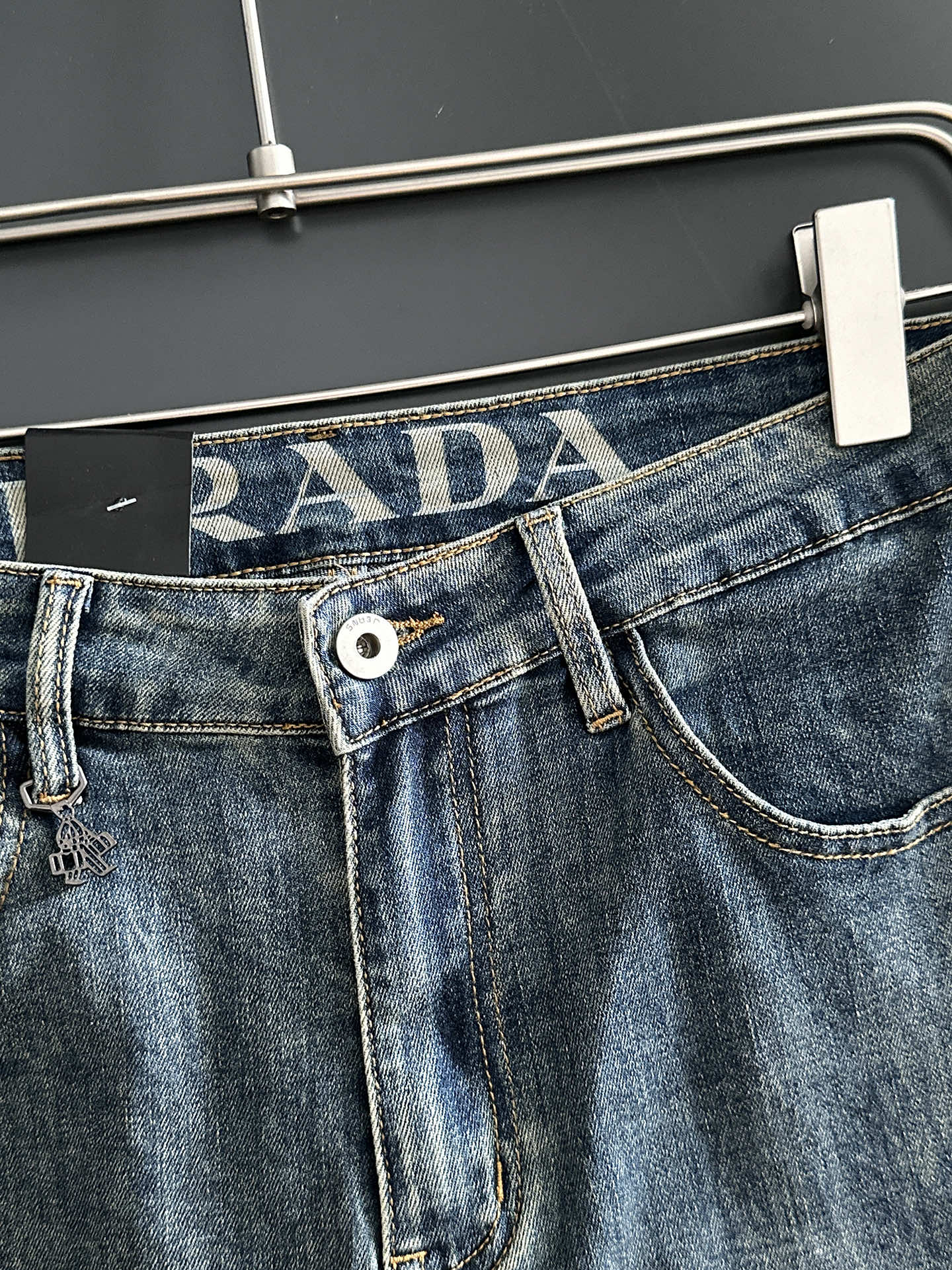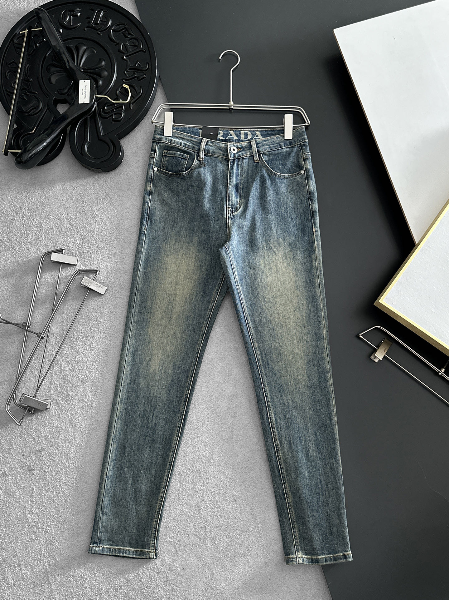 PRADA 2025 men's jeans. Stretchy denim, premium wash, leather label. Sizes 28-38. Next-day shipping.