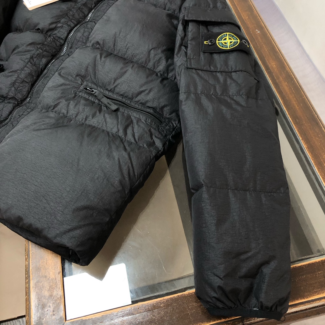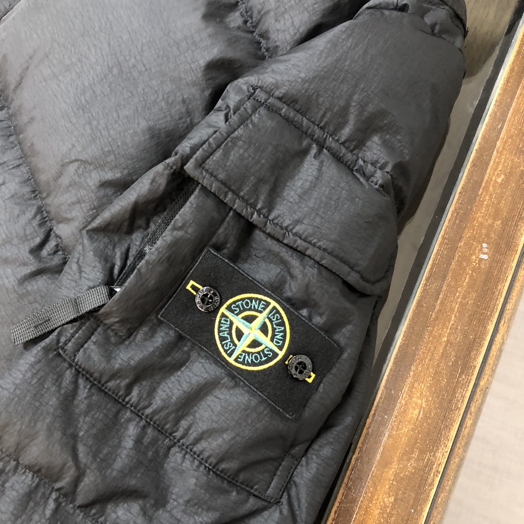 New Stone Island down jacket. Wrinkled nylon, glossy, 90% down fill. Excellent warmth. Original accessories. Colors: Gray, Black. Sizes: M-L-XL-2XL.
