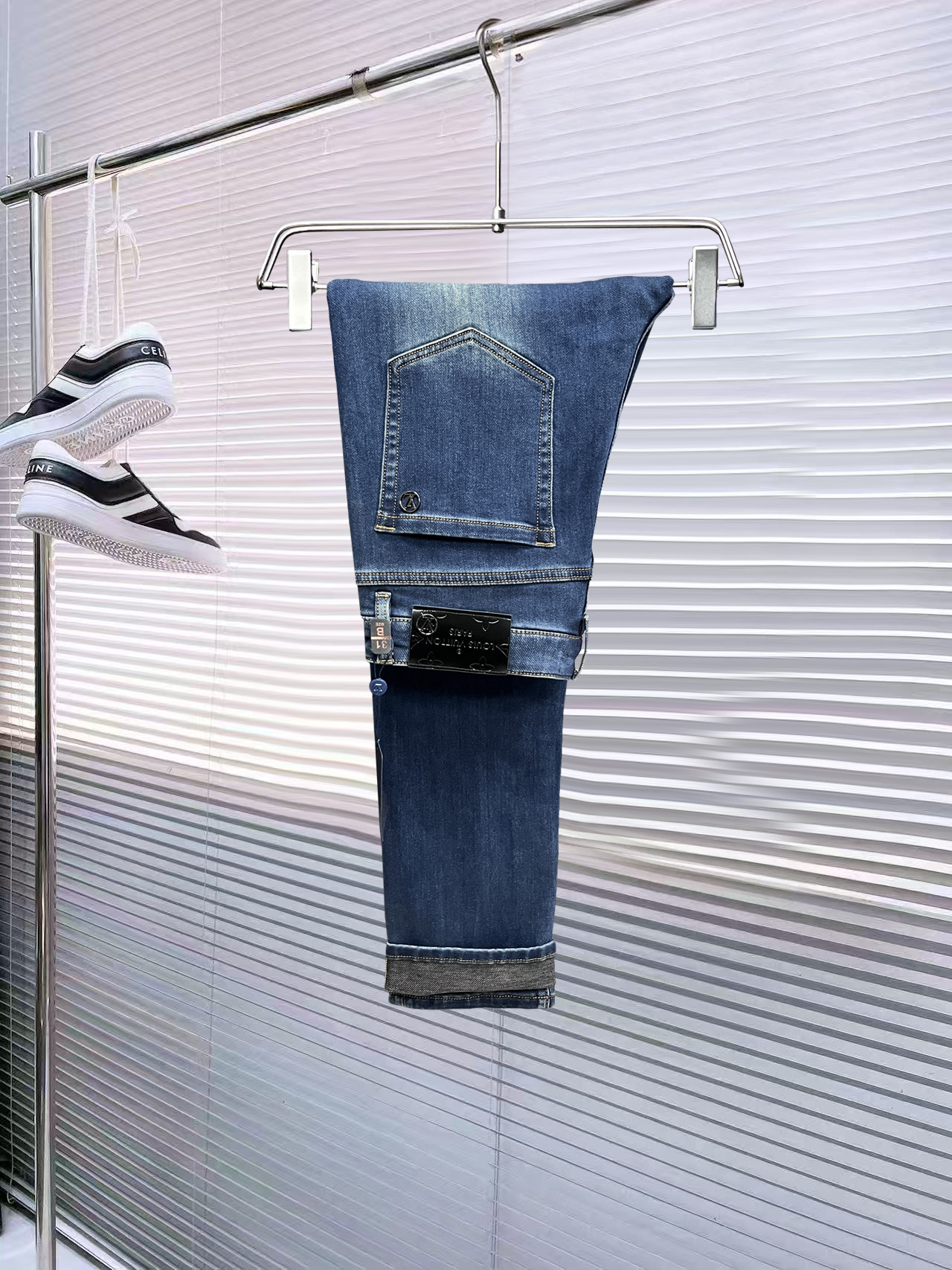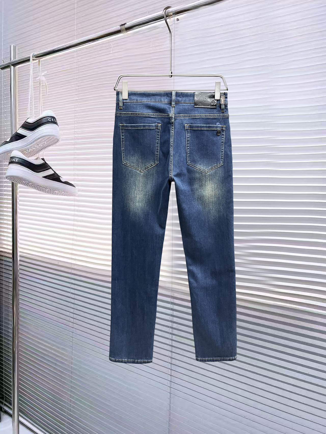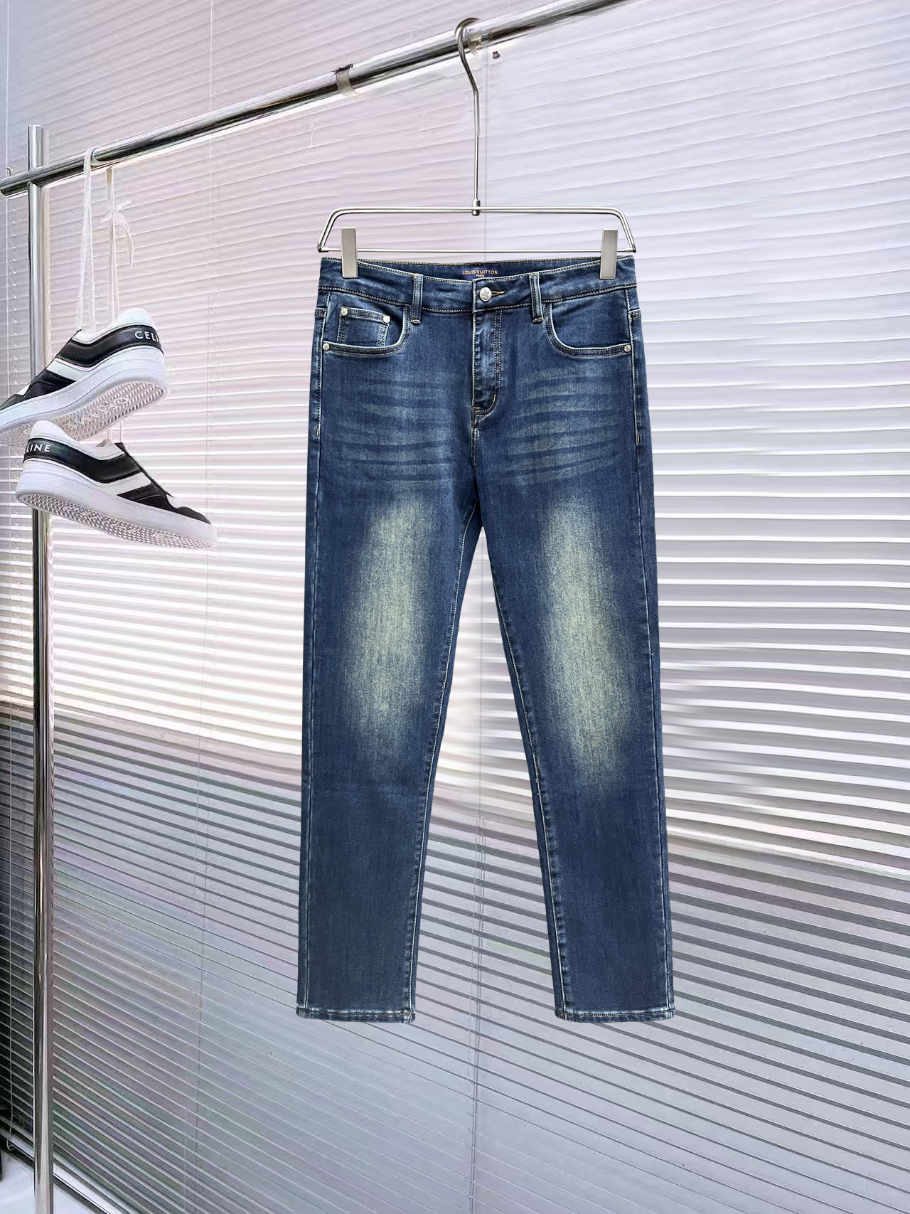 LV Thin Denim Jeans. 2025 latest style. 98% cotton, 2% spandex. Solid, slightly stretchy, comfortable. Simple design, hidden zipper, embossed pockets. Excellent fit.