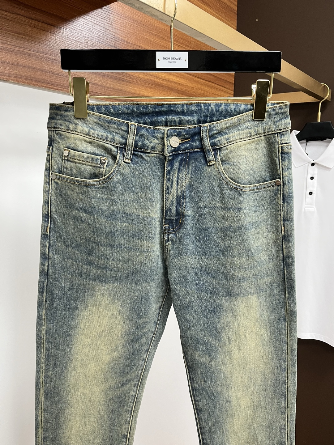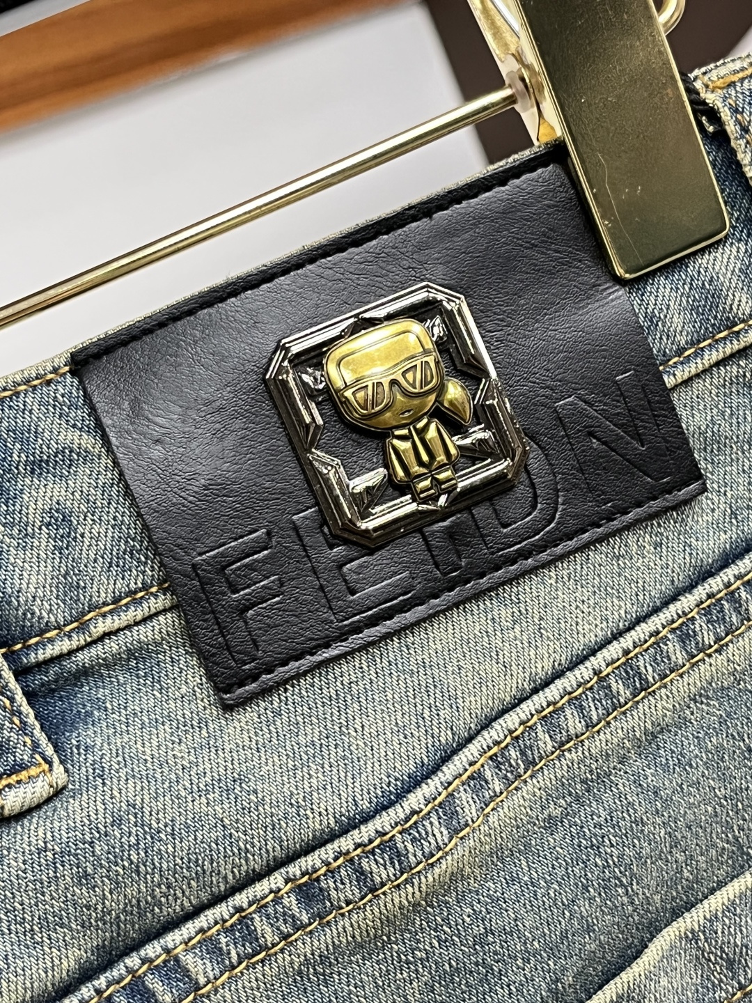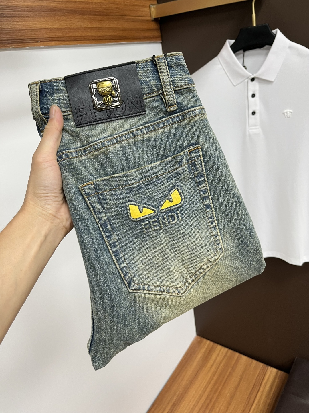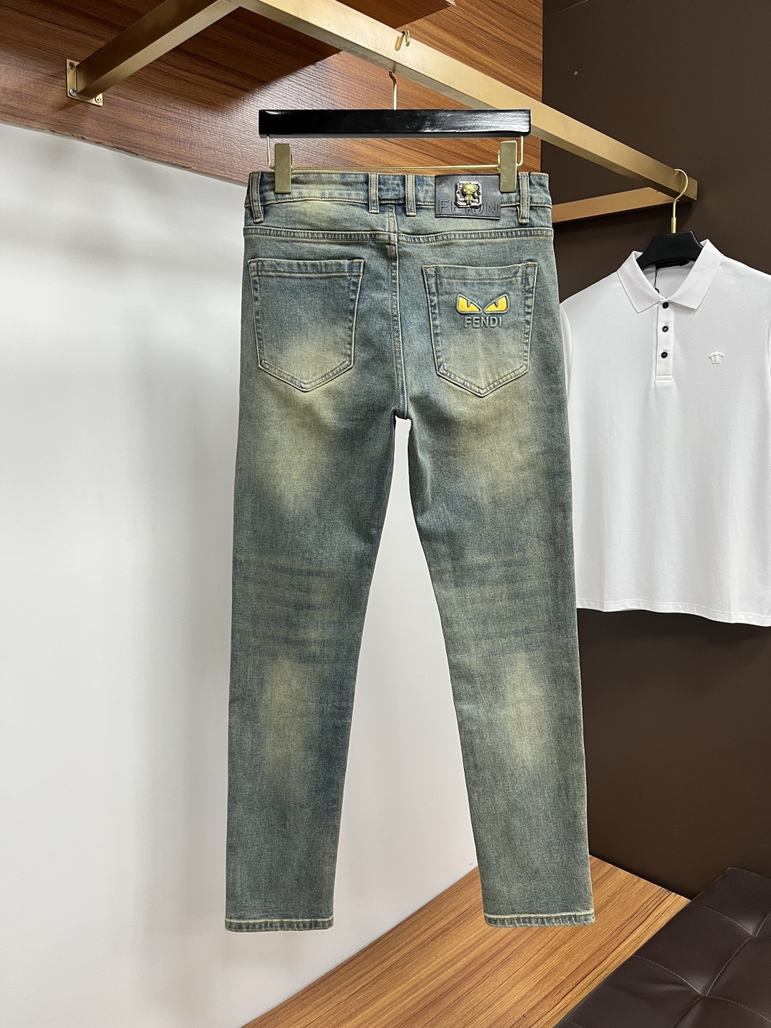 Fendi 2025 Fall Men's Business Casual Jeans. High-quality, breathable fabric. Versatile for office or weekend wear. Slim fit, sizes 29-40.