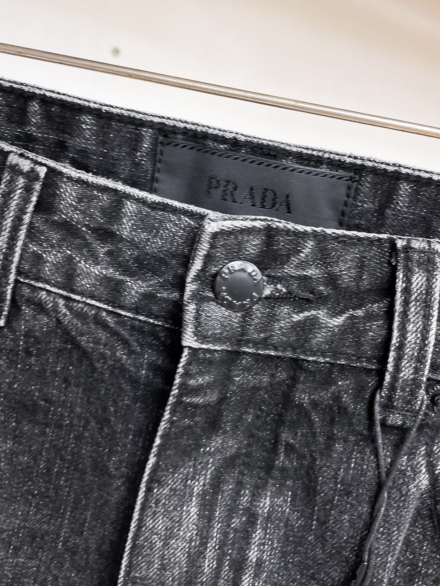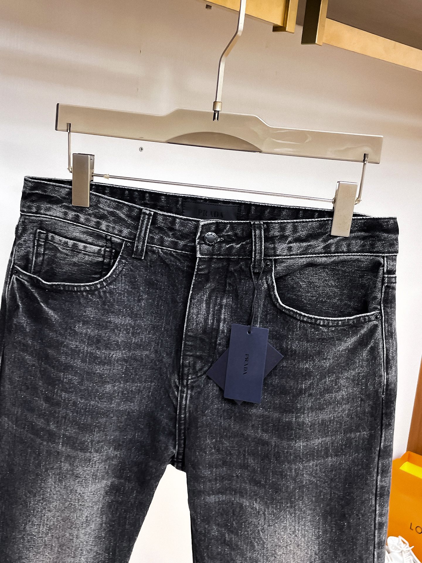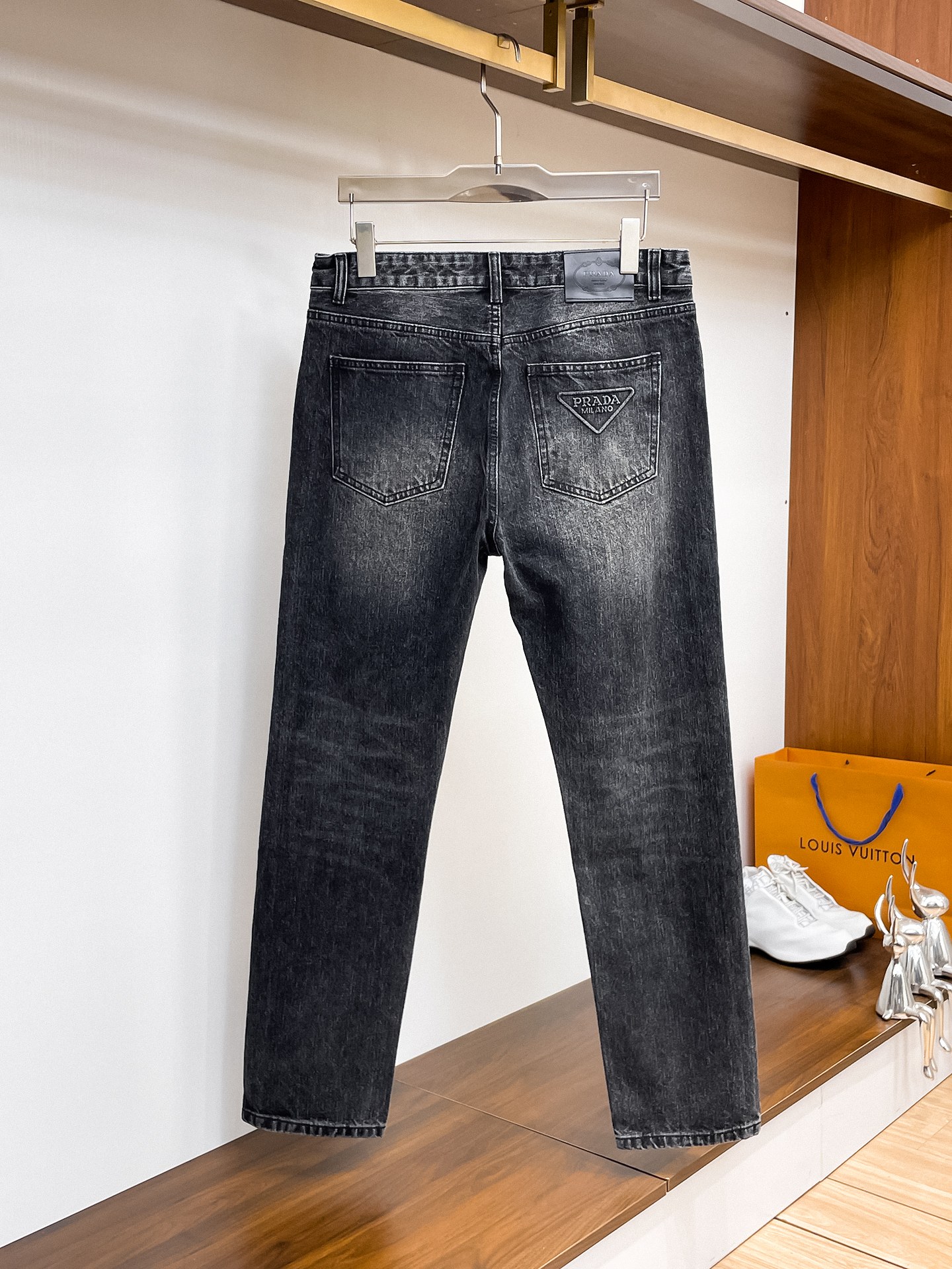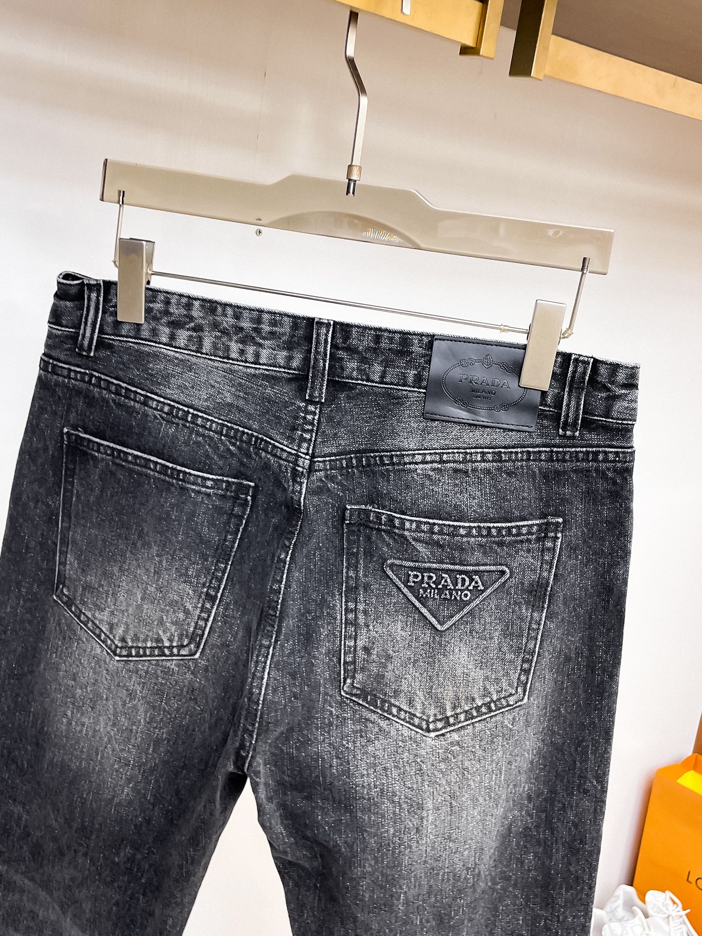 Prada autumn-winter new washed jeans. High version, custom hardware logo, embroidery. Soft denim, comfortable fit. Sizes S-XL.