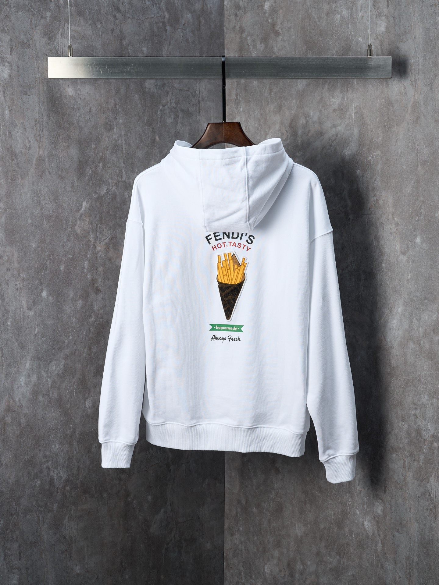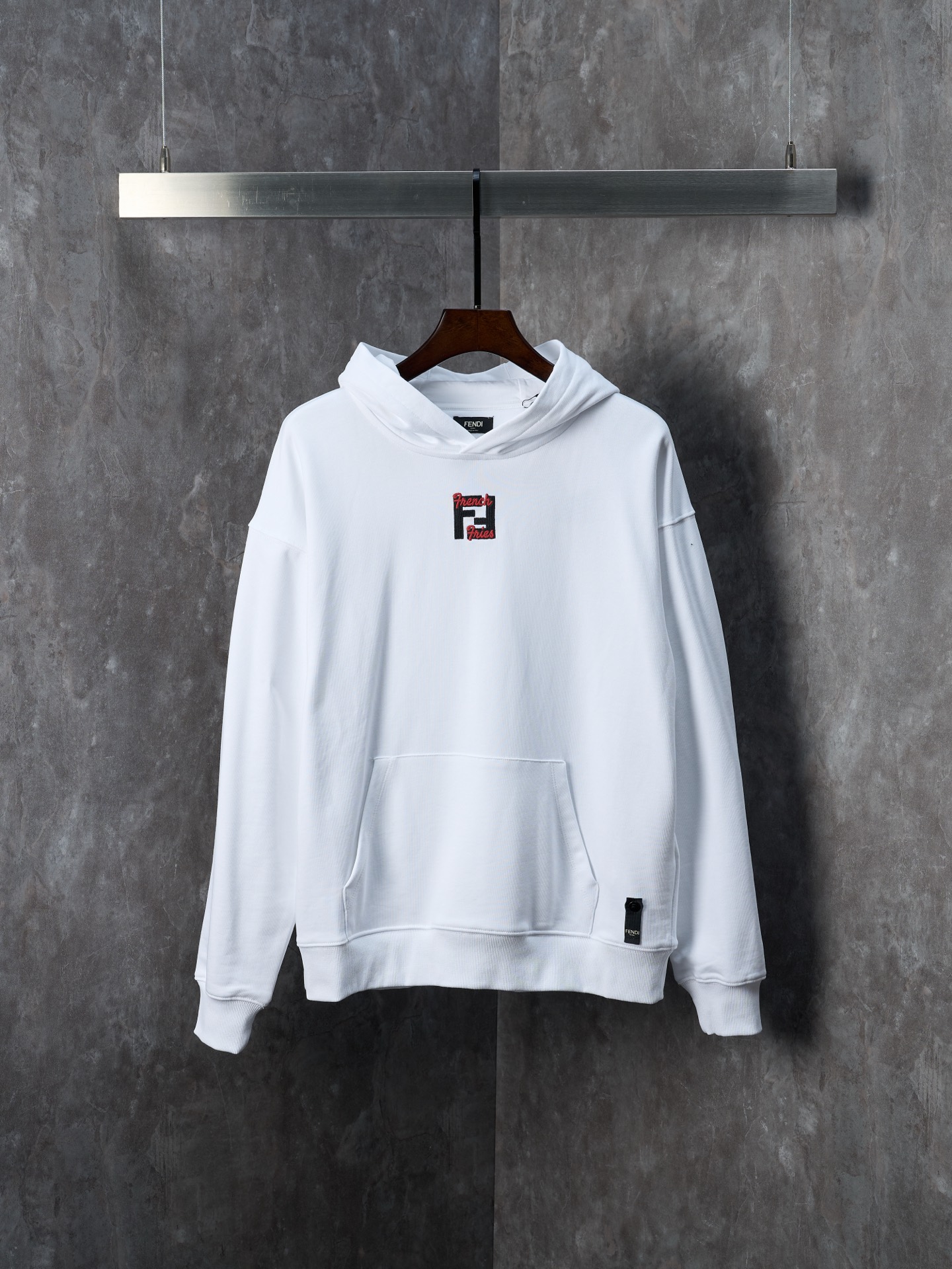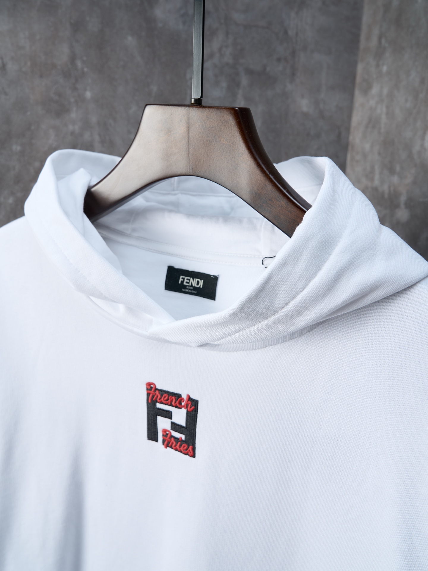 Physical hanging shot] FENDI/Fendi FF fries embroidered cotton hooded sweatshirt hoodie