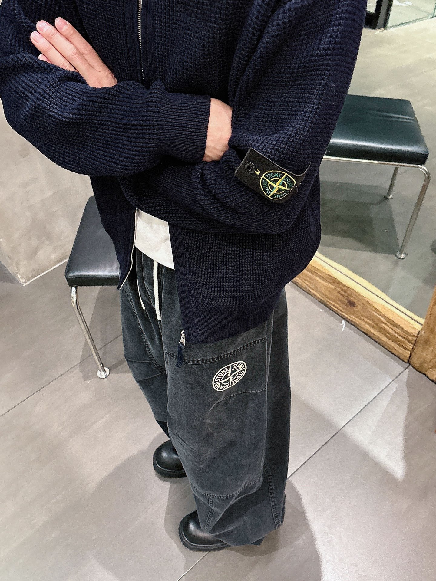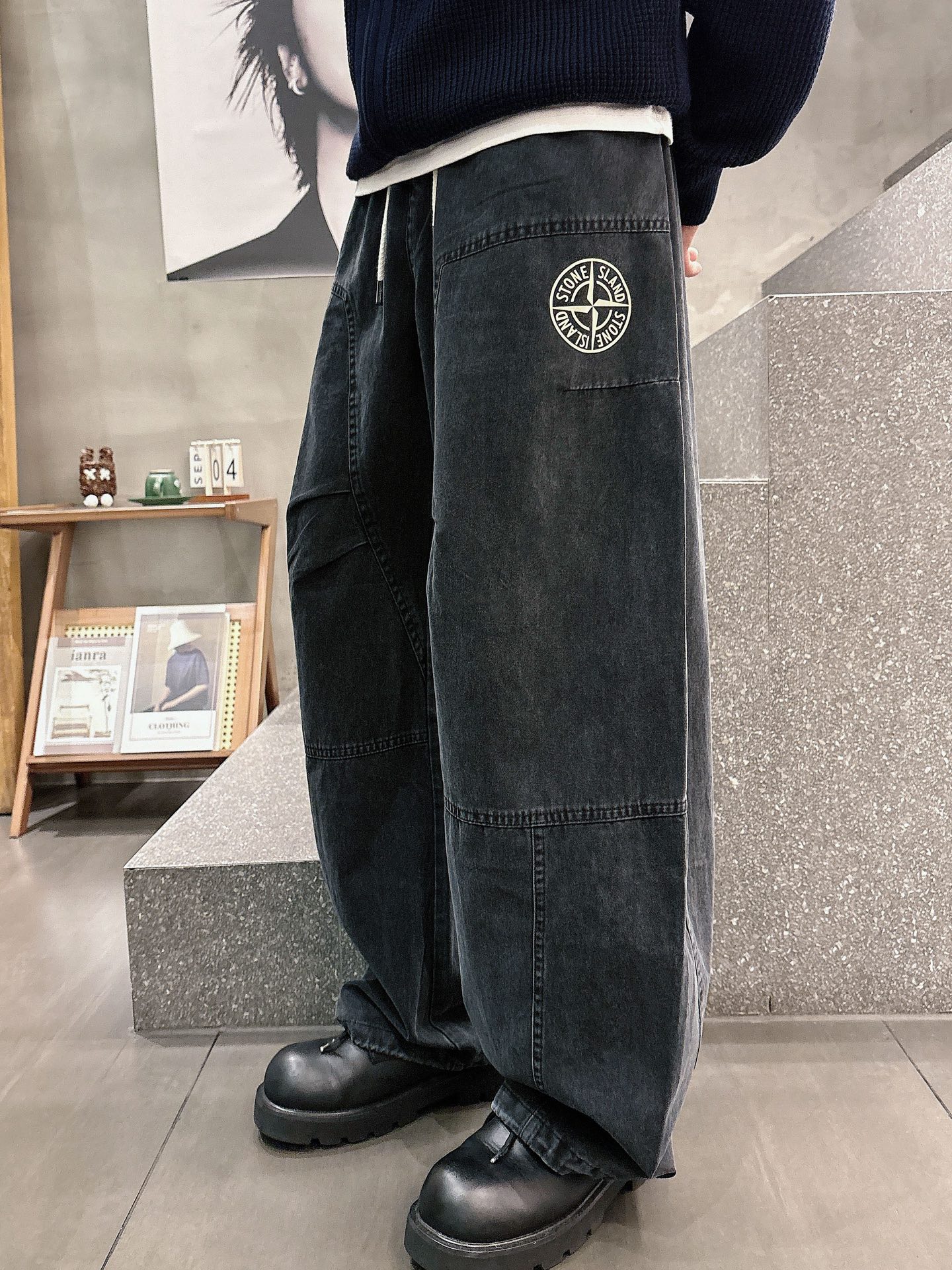 Stone Island CD straight-leg cotton trousers for autumn. Features cargo pockets, flocked logos, quality hardware. Unisex sizes M-XXXL.