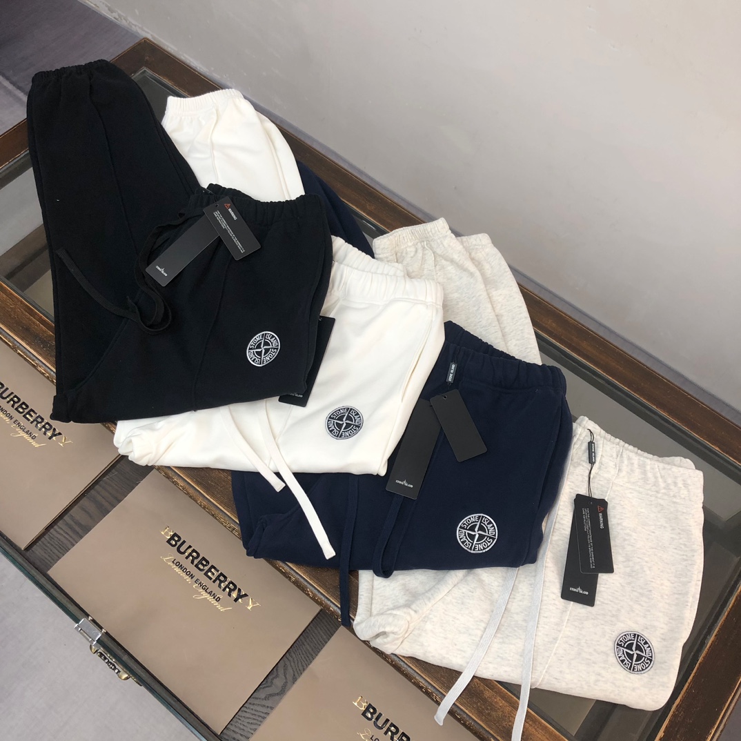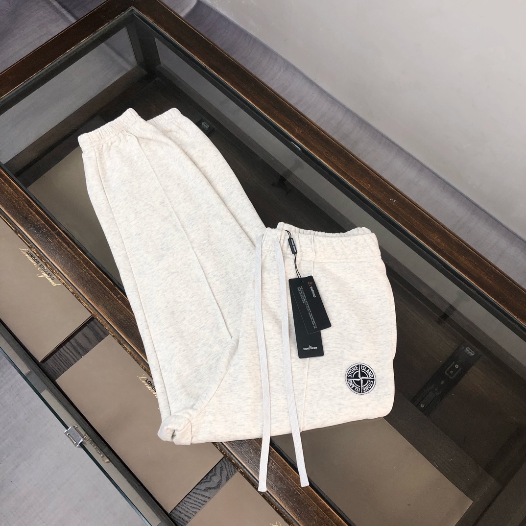 Stone Island 2025 early autumn couples hoodie & joggers set. 3D cut, custom fabric, breathable. Embroidered compass logo. Colors: black, white, blue, gray. Sizes: S-XXL.